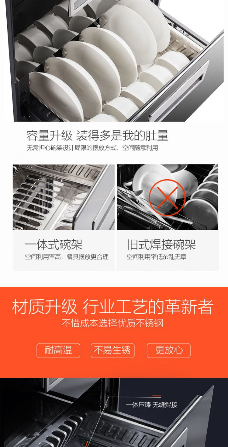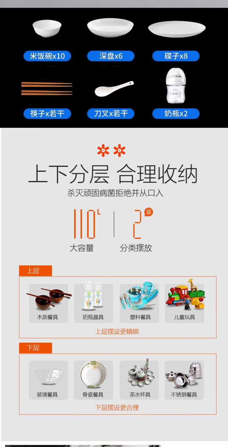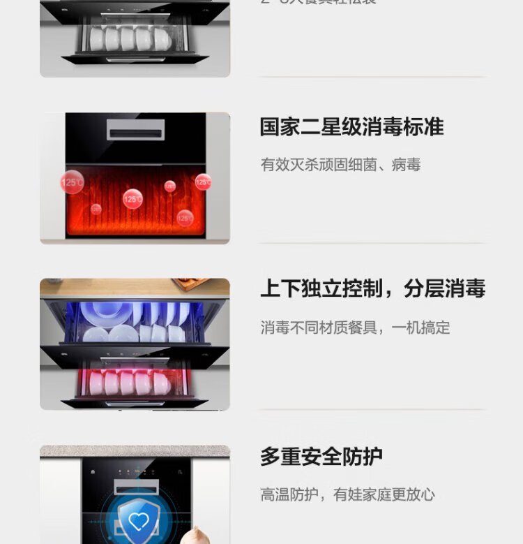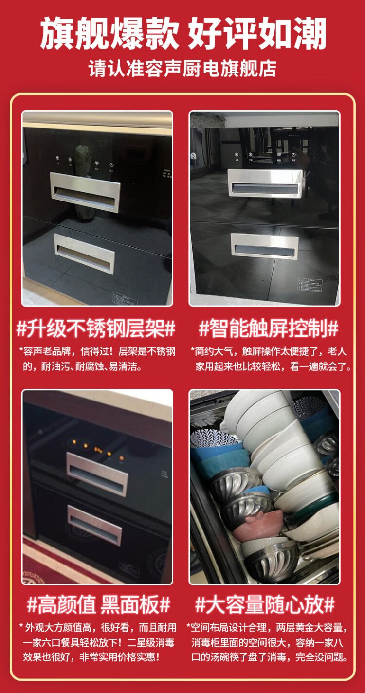 Rongsheng Disinfection Cabinet Embedded Home Kitchen Disinfection Cupboard High Temperature UV Disinfection Cabinet 110L Large Capacity National Subsidy RX02F(A)