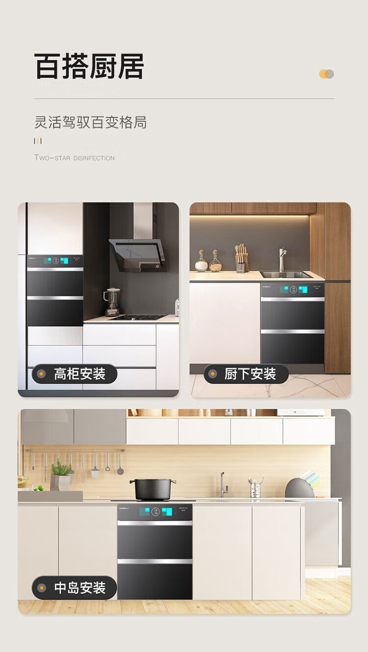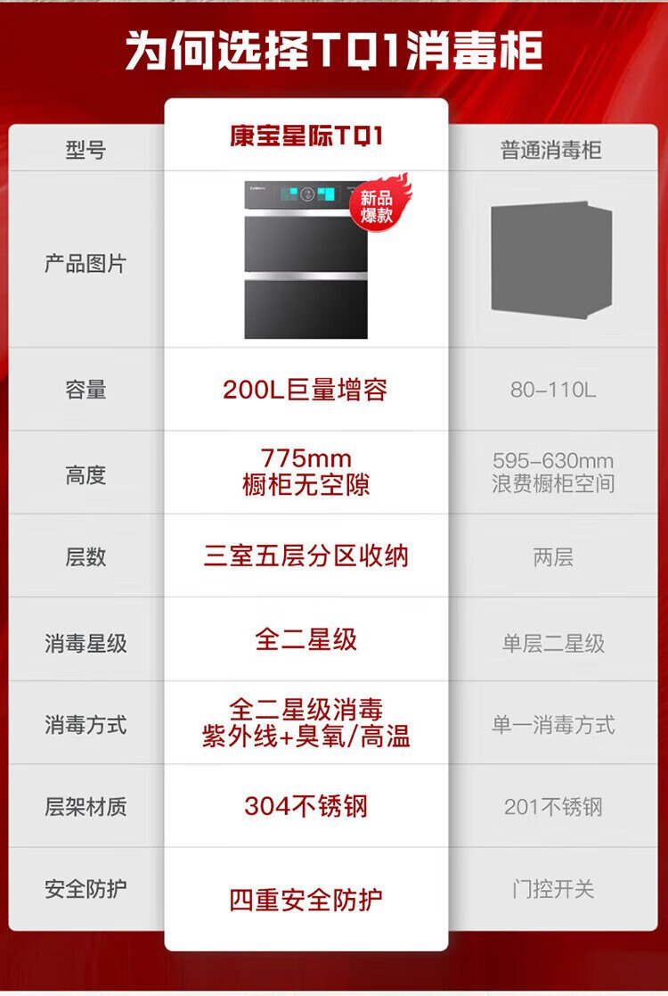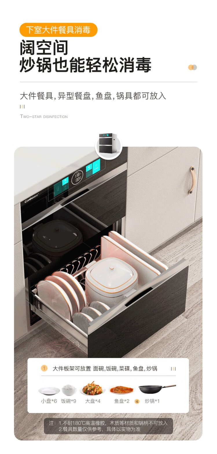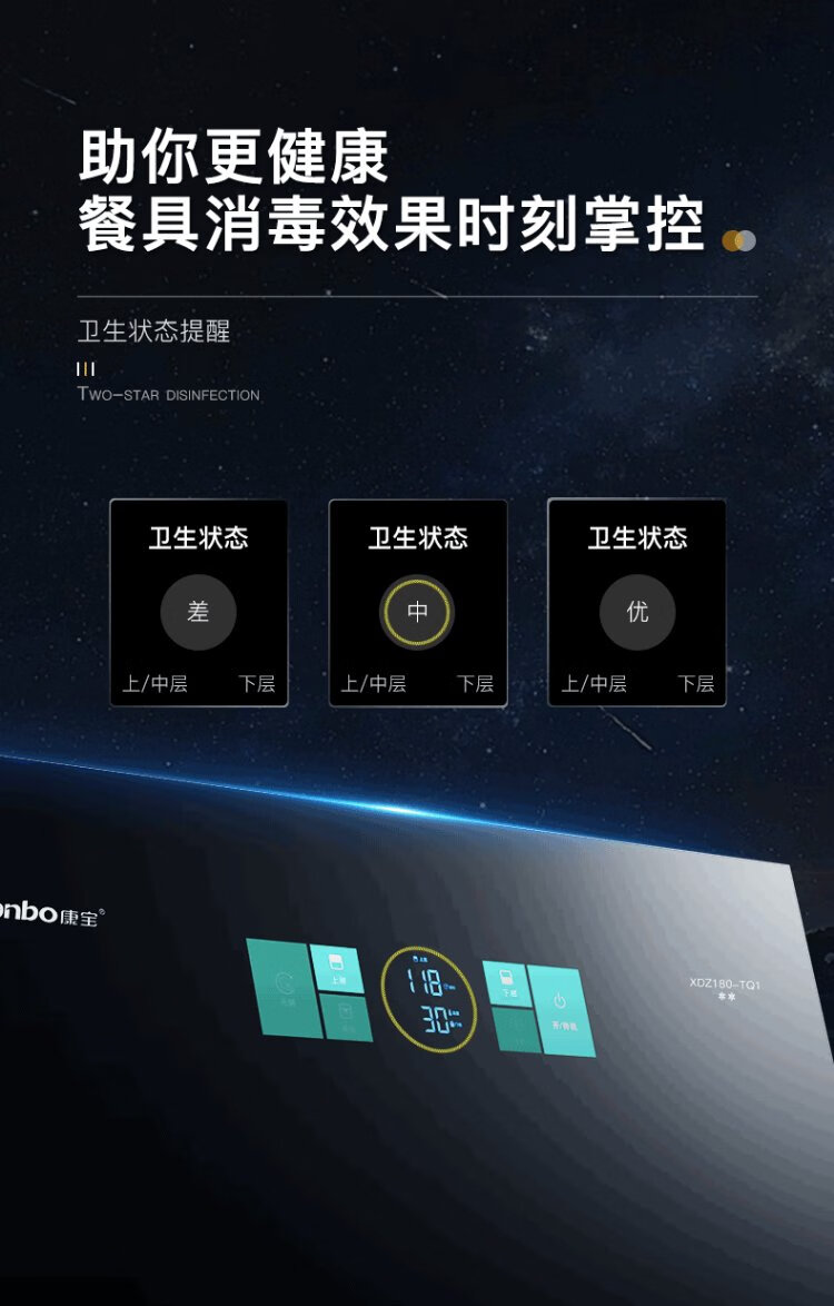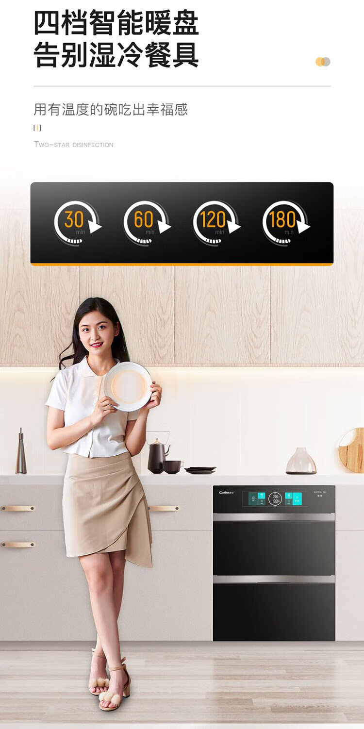Canbo 304 stainless steel 200L five-layer disinfection cabinet embedded household ultraviolet tableware two-star massive disinfection cupboard national subsidy XDZ200-TQ1 Blue Whale