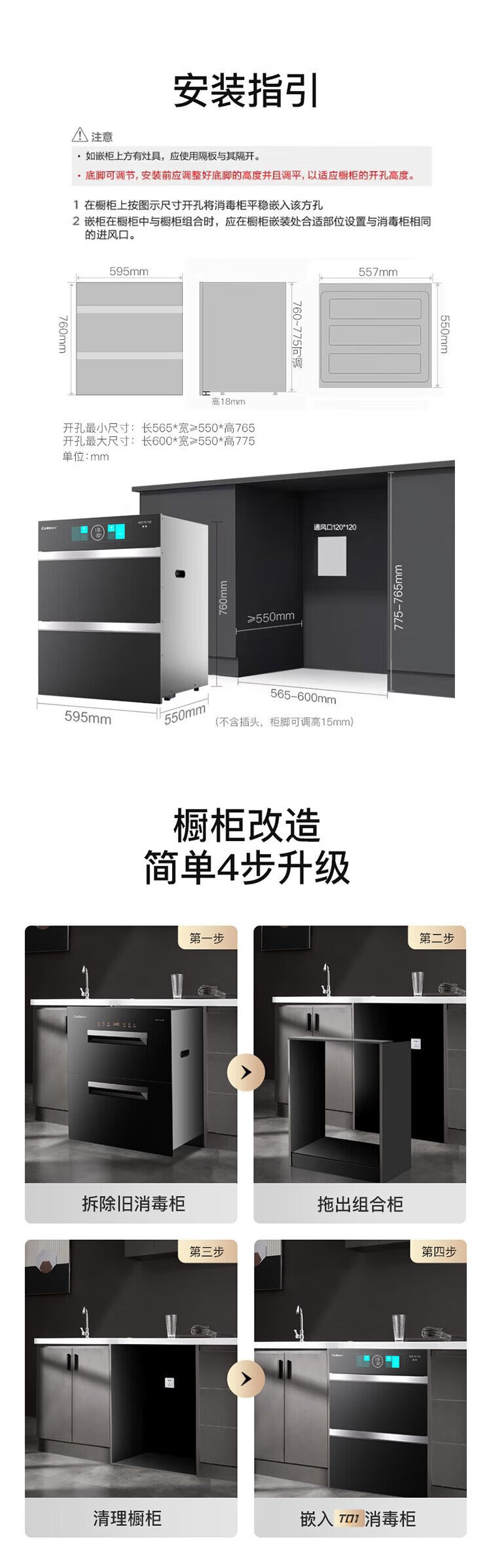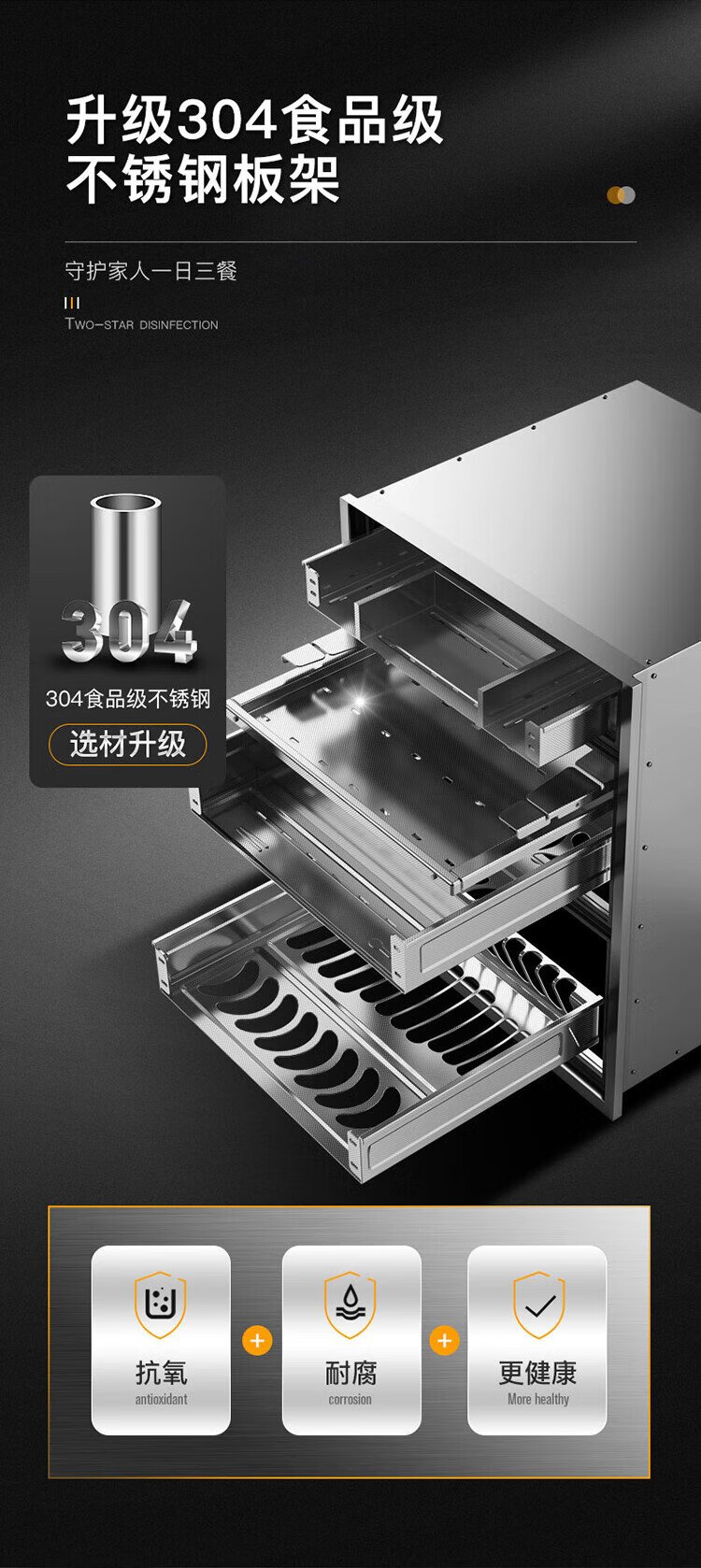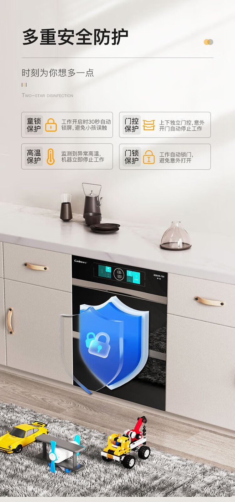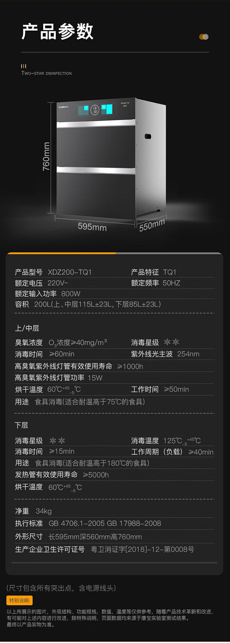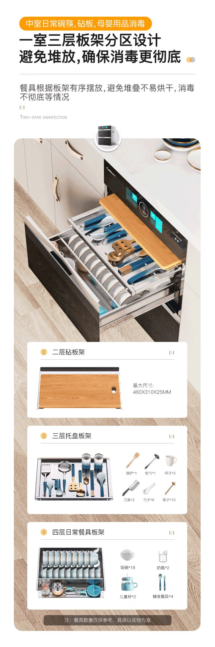 Canbo 304 stainless steel 200L five-layer disinfection cabinet embedded household ultraviolet tableware two-star massive disinfection cupboard national subsidy XDZ200-TQ1 Blue Whale