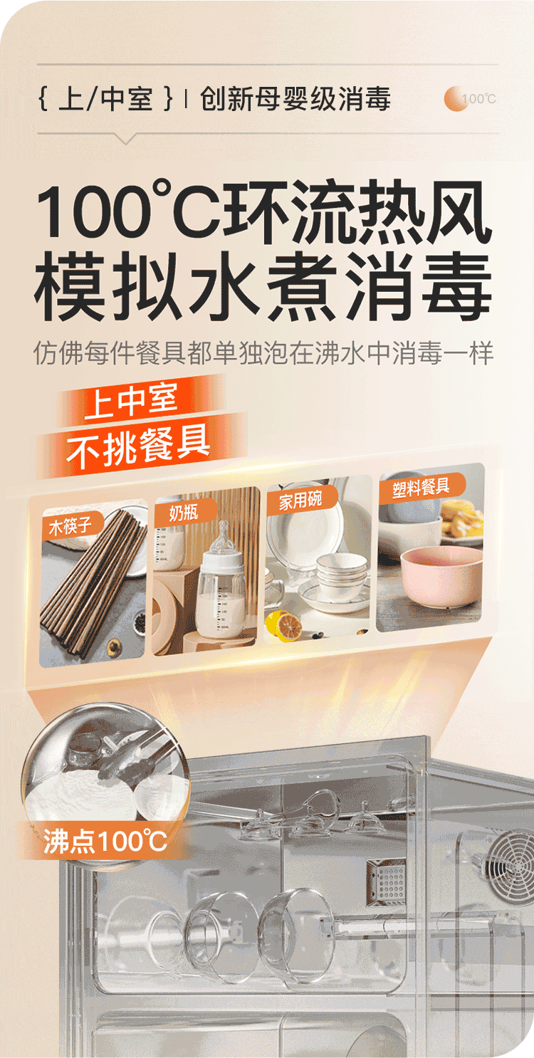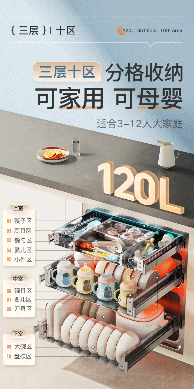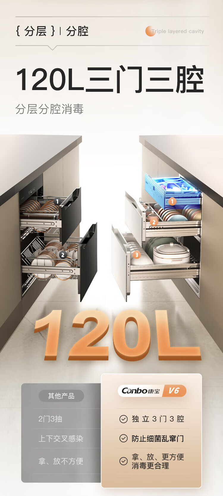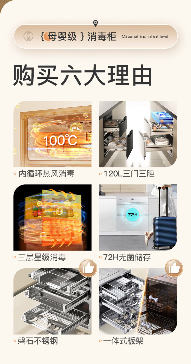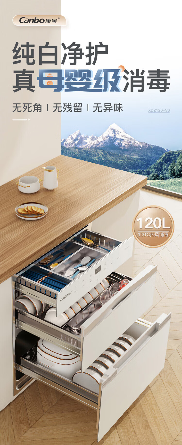 Canbo 120L Panshi PRO three-layer stainless steel disinfection cabinet embedded household mother and baby two-star hot air massive disinfection cupboard national subsidy XDZ120-V6 white