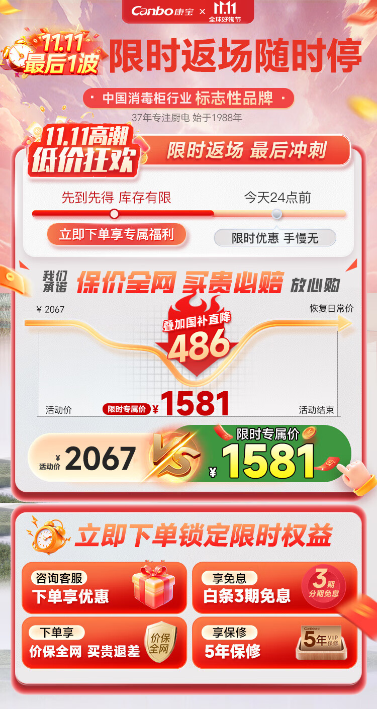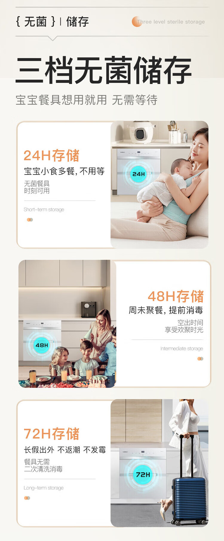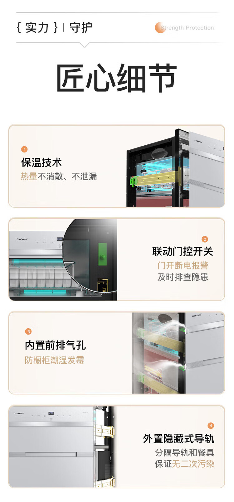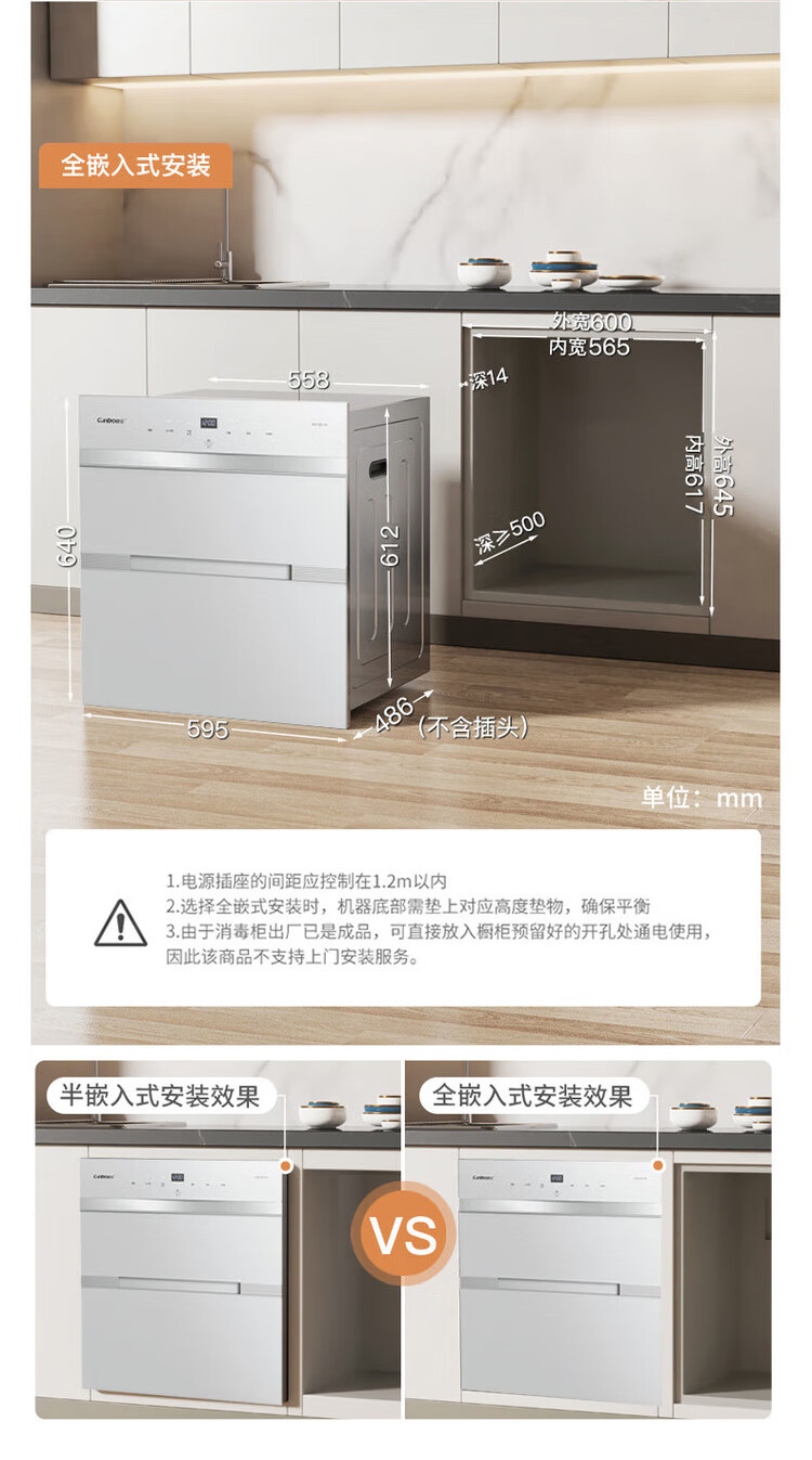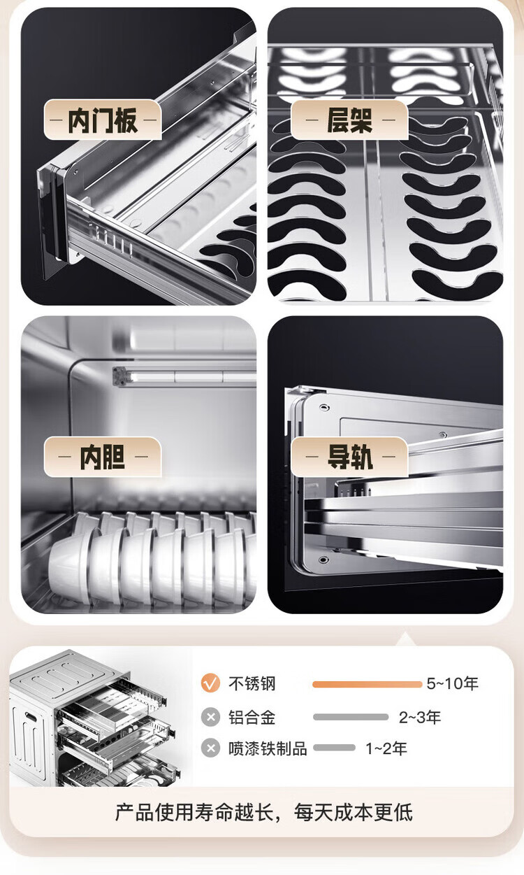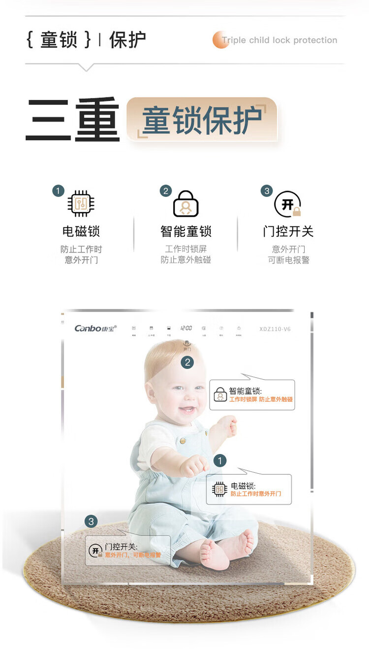 Canbo 120L Panshi PRO three-layer stainless steel disinfection cabinet embedded household mother and baby two-star hot air massive disinfection cupboard national subsidy XDZ120-V6 white