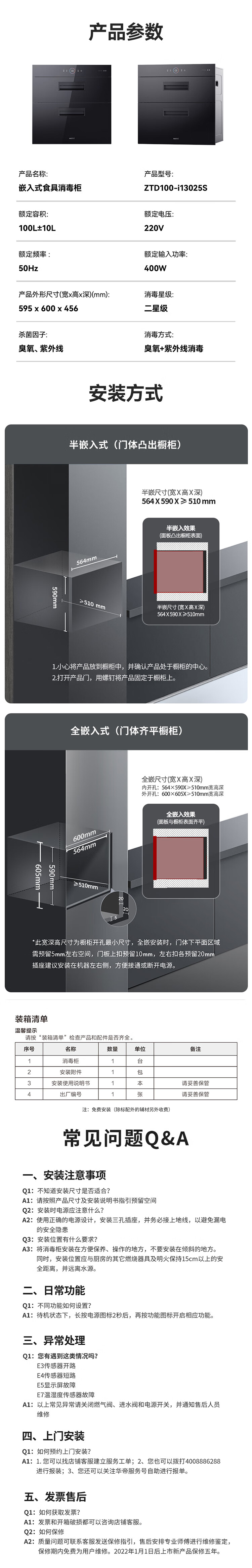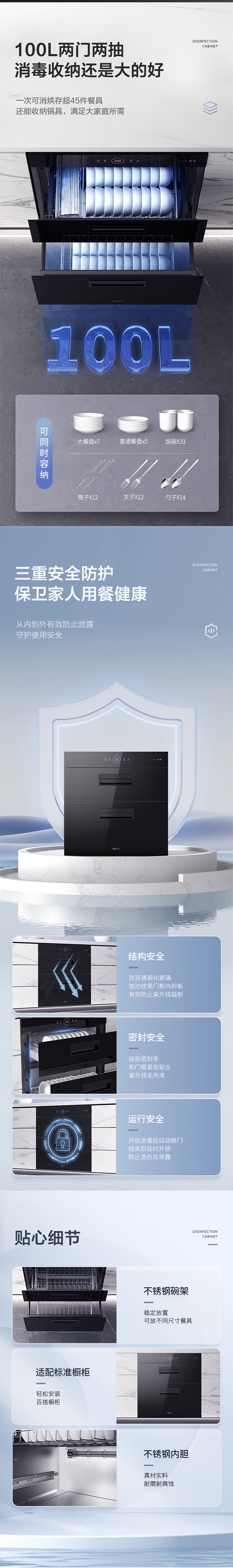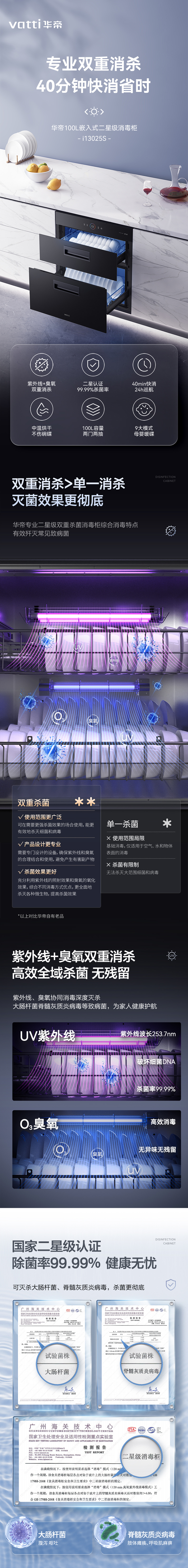 VATTI disinfection cabinet 100 liters large capacity built-in disinfection cupboard for home use UV rapid disinfection of dishes and chopsticks two-star disinfection trade-in i13025S