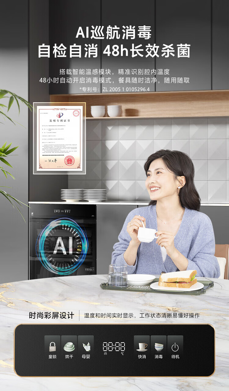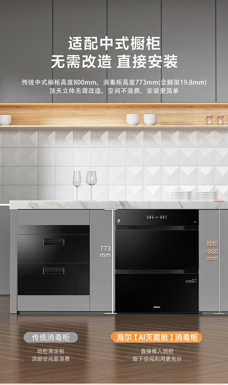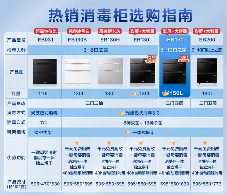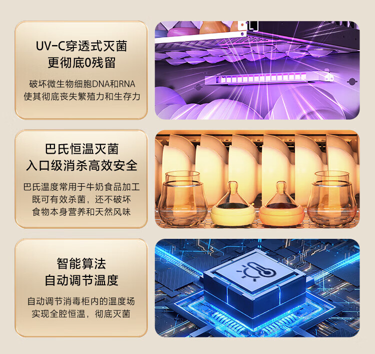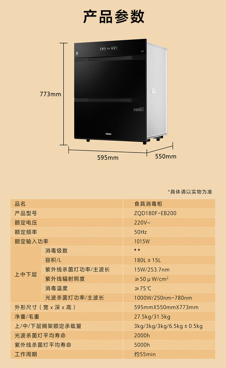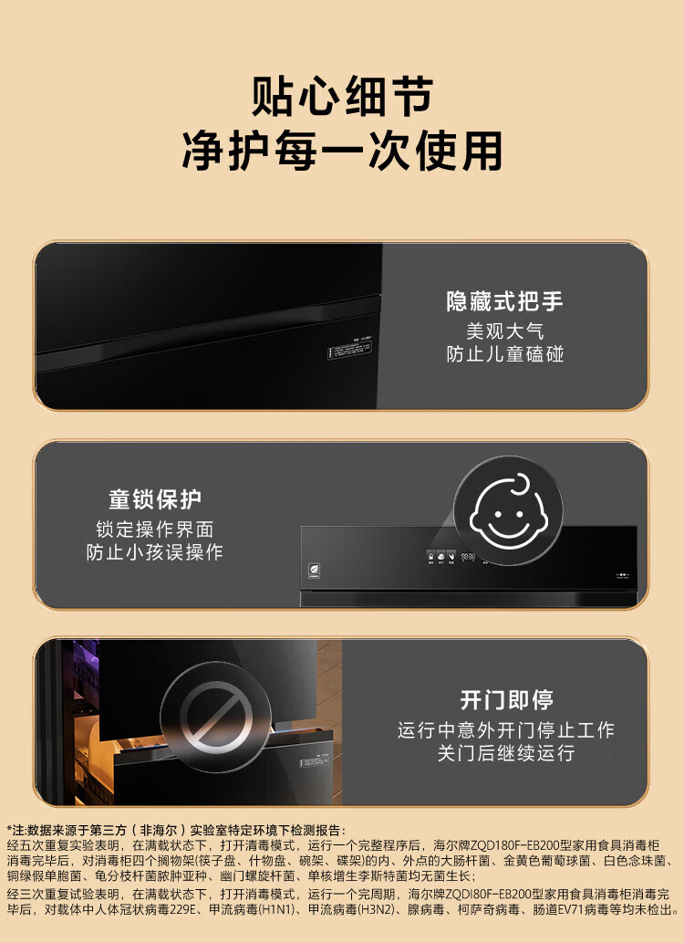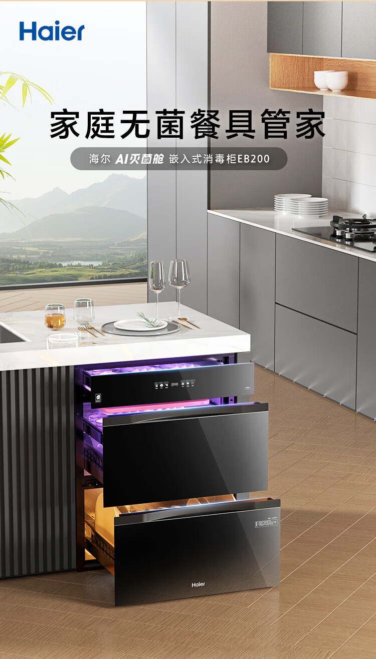 Haier 180L ultra-large capacity sterilization cabinet built-in sterilization chamber series three-exhaust five-layer large capacity household maternal and infant sterilization cabinet UV + light wave Pasteurization EB200