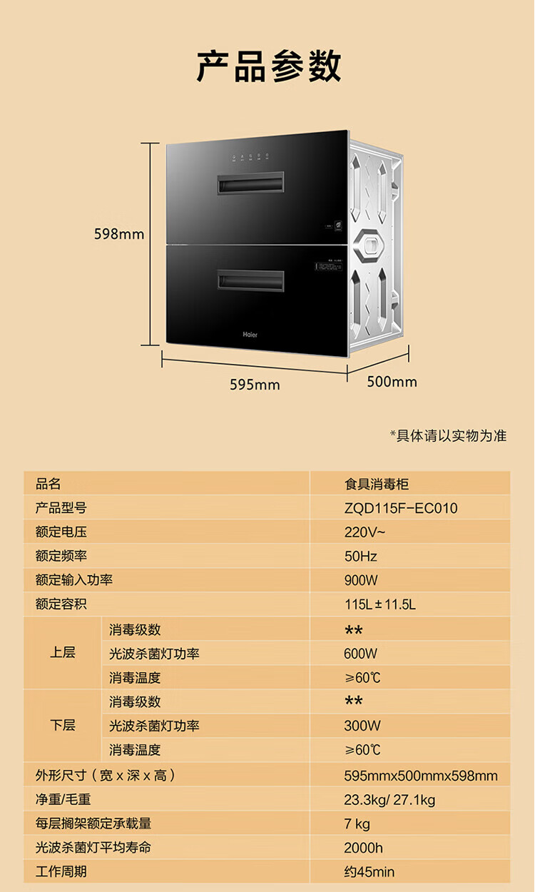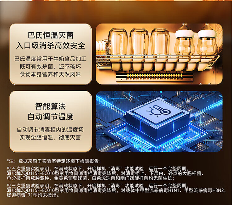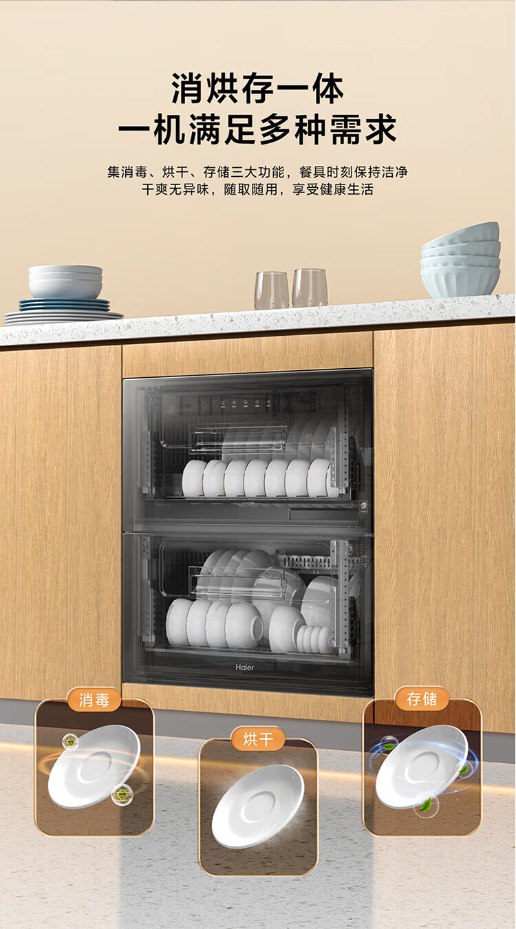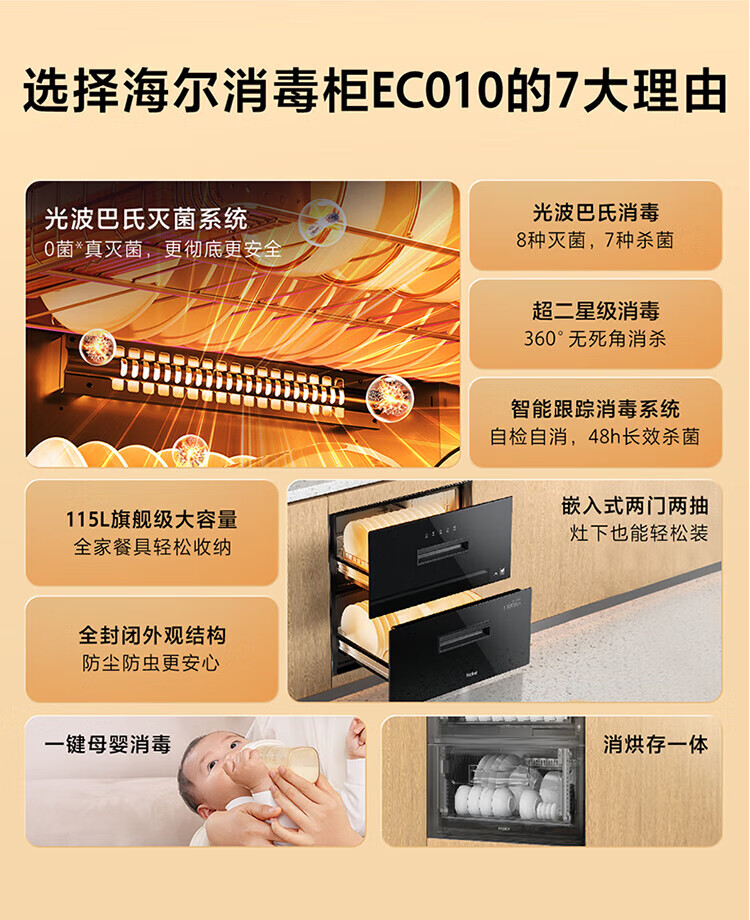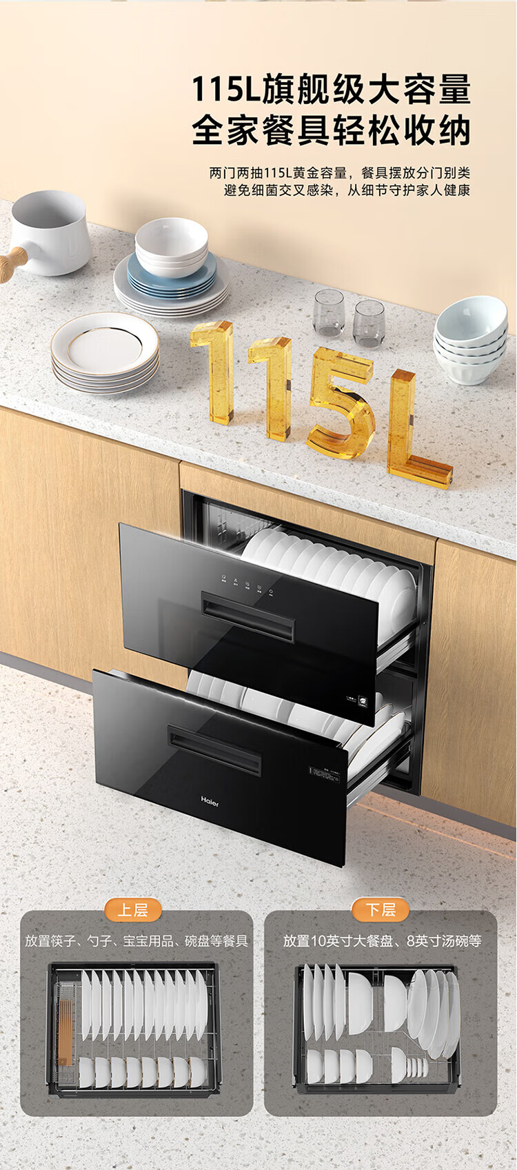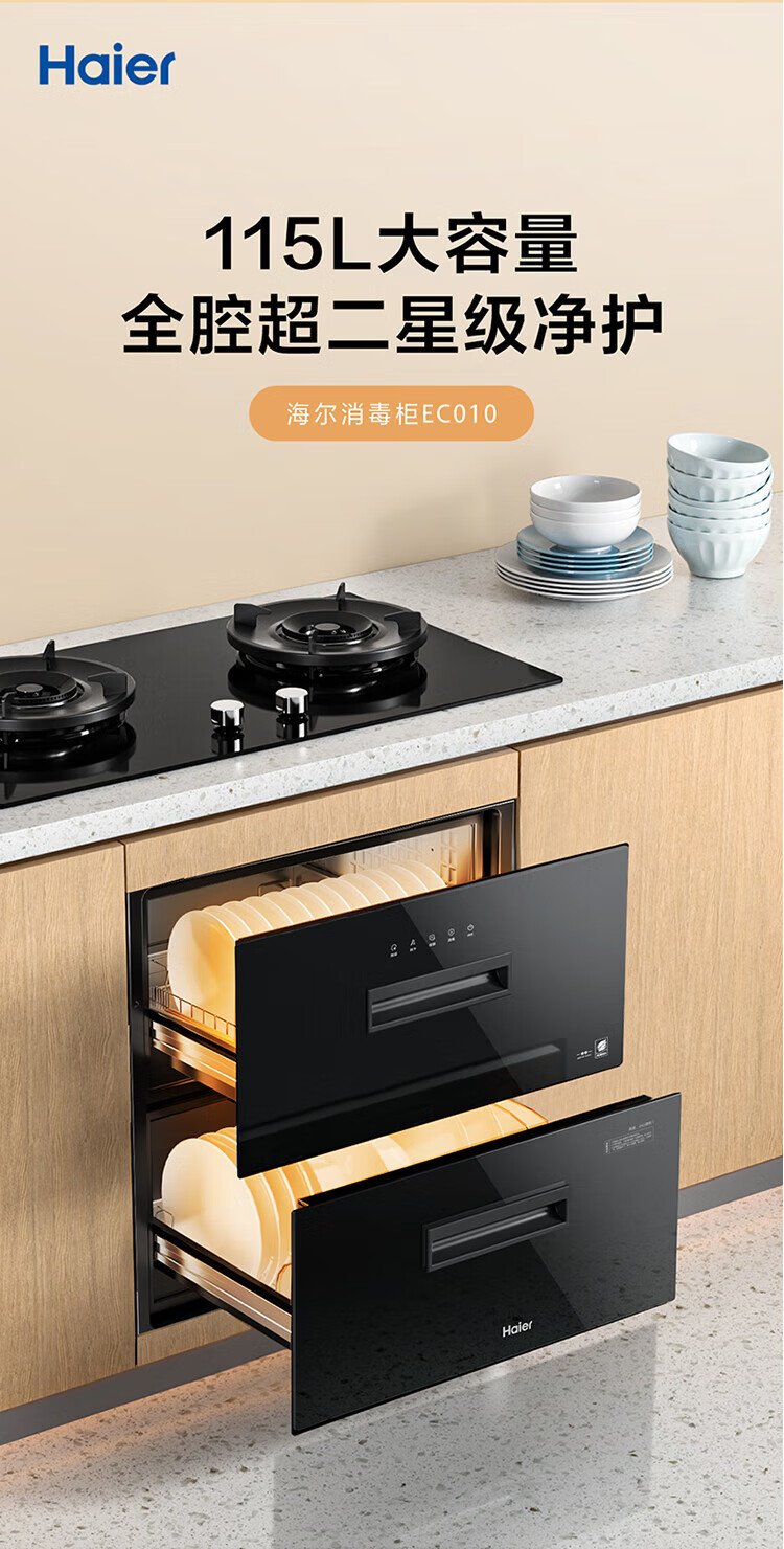Haier 115L disinfection cabinet built-in sterilization chamber series two-layer large capacity disinfection cupboard mother and baby household ultraviolet + light wave pasteurization pure physical disinfection EC010