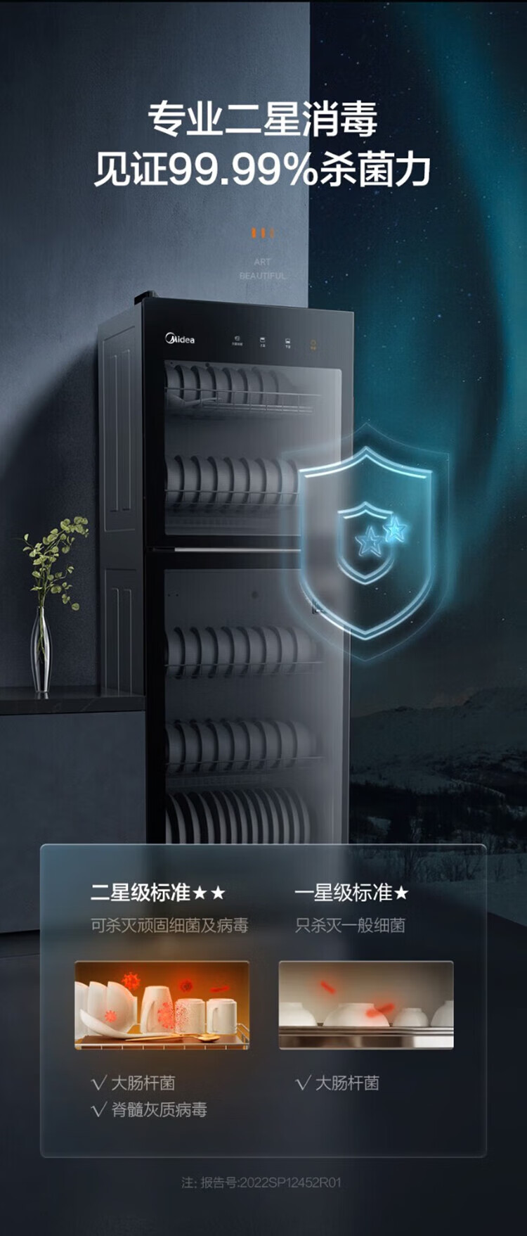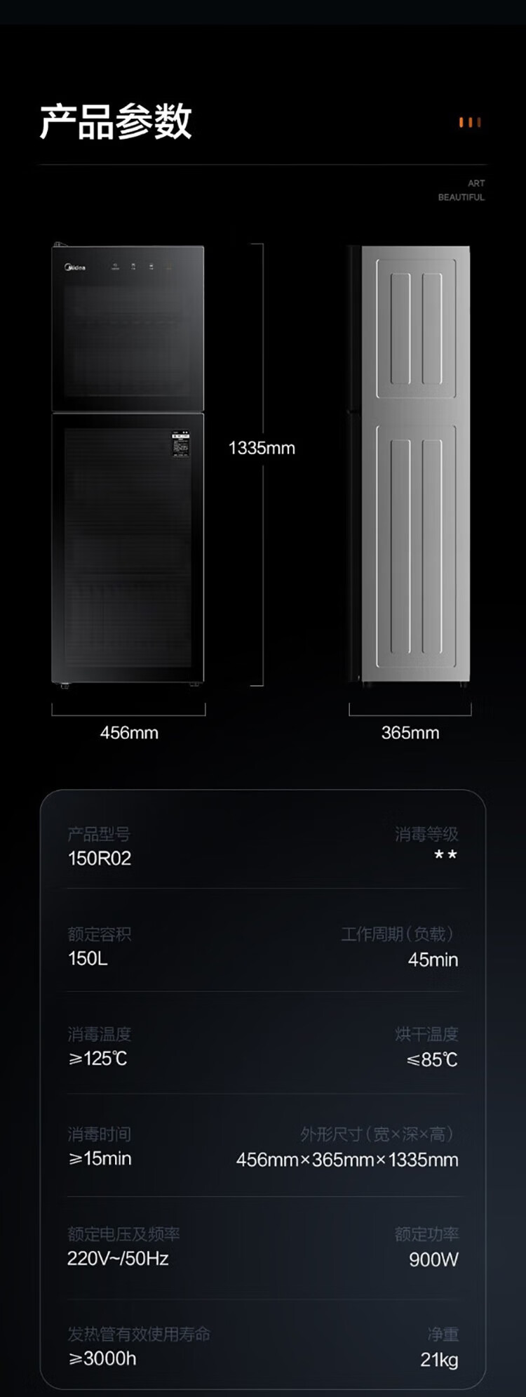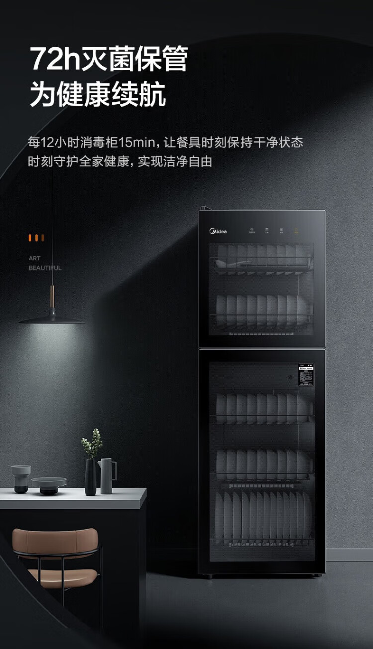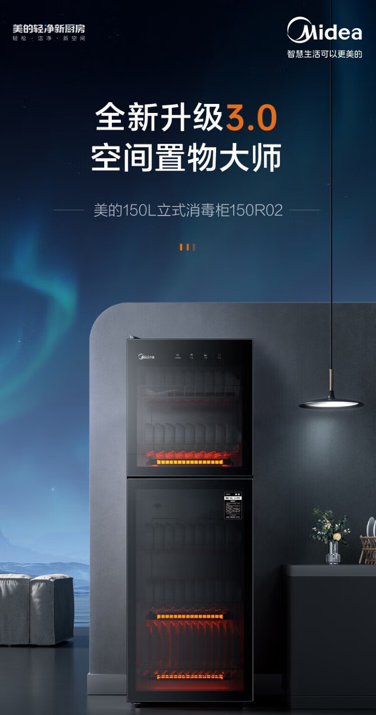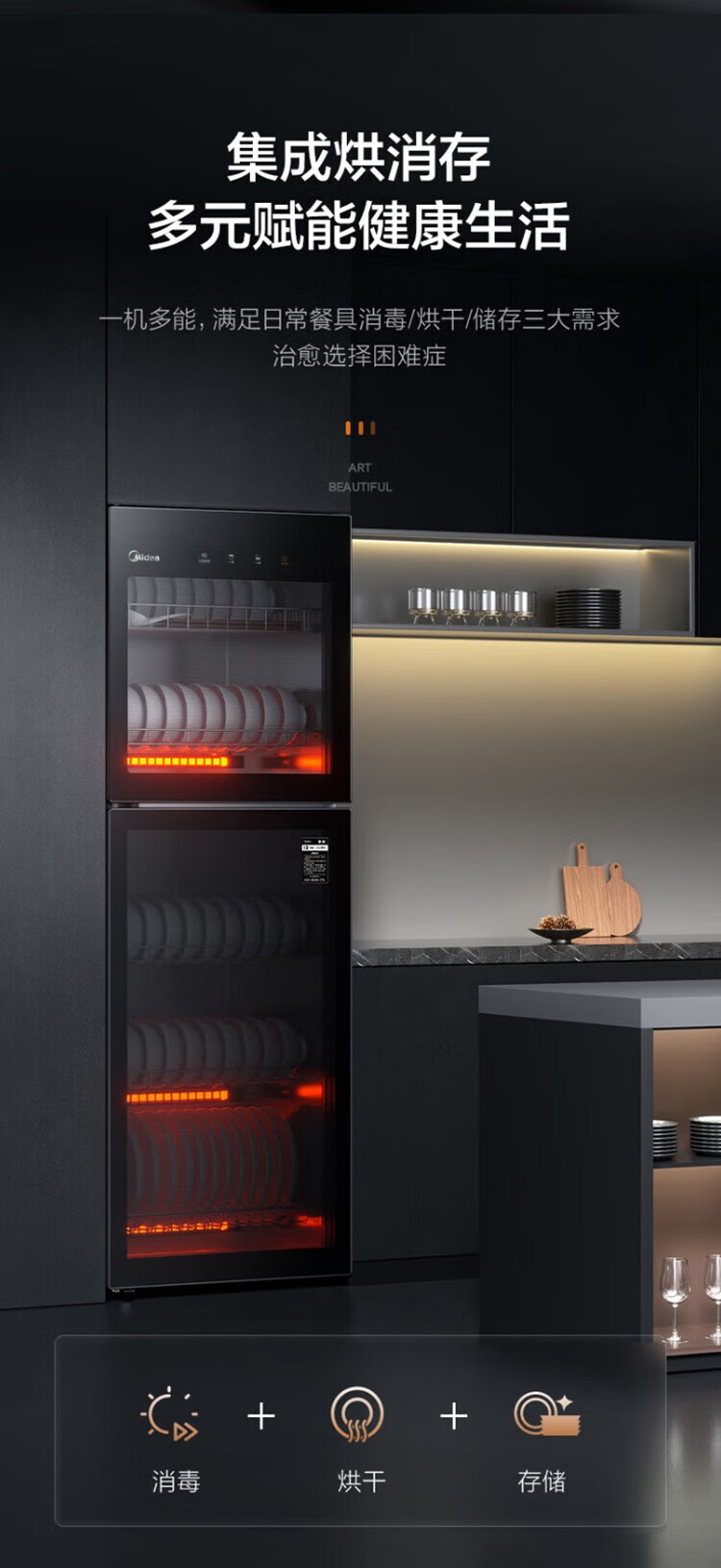 Midea disinfection cabinet 150 liters cabinet commercial two-star disinfection household upper and lower double doors independent control kitchen tableware bottle cabinet disinfection cupboard 150R02