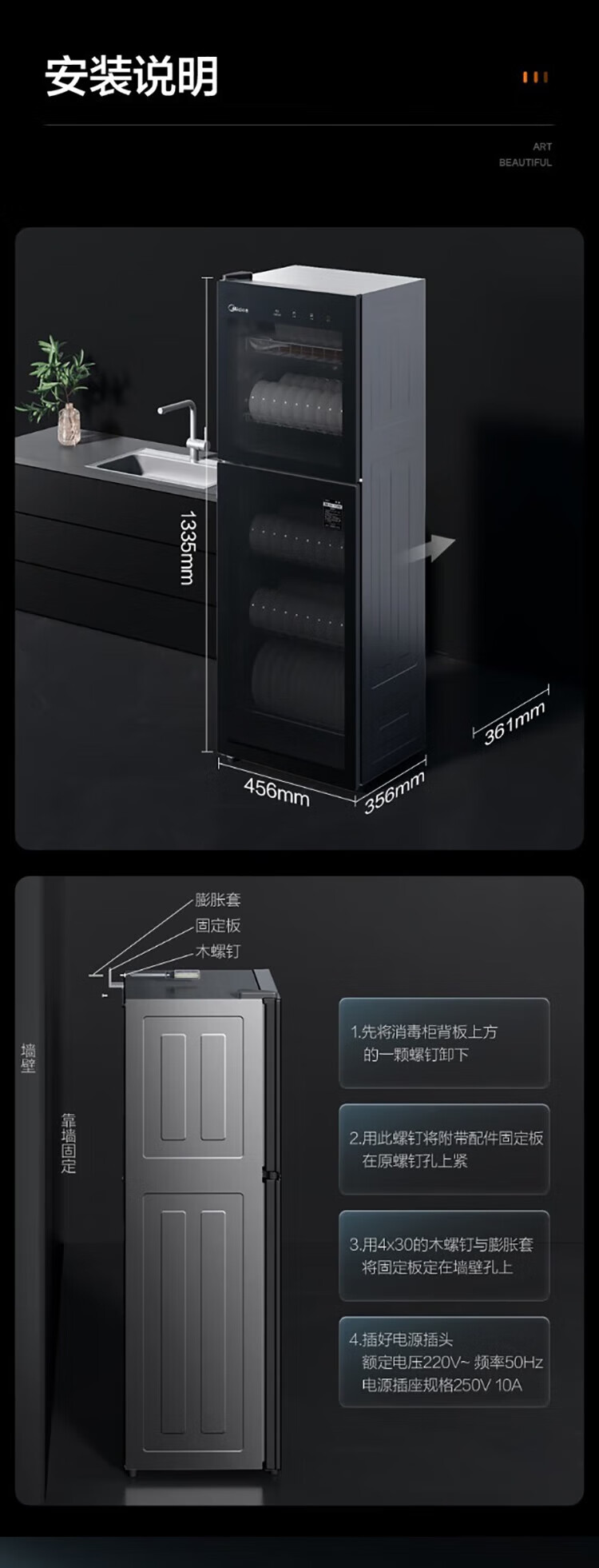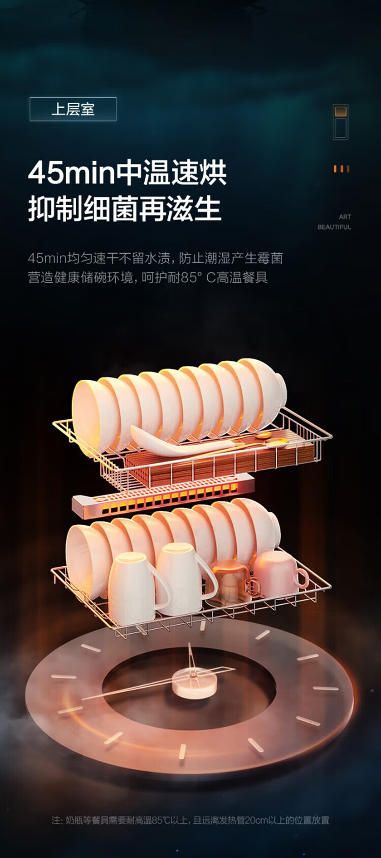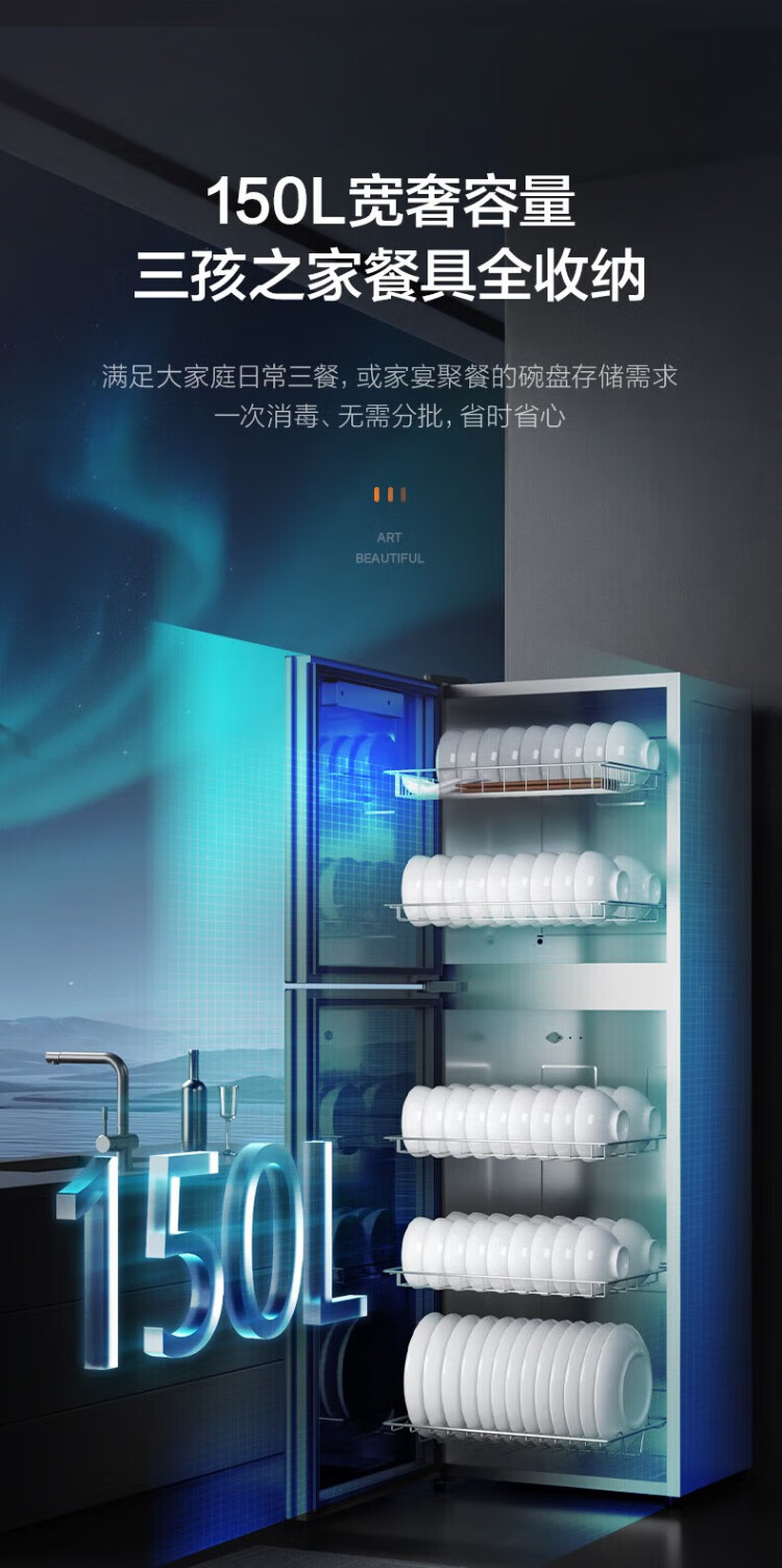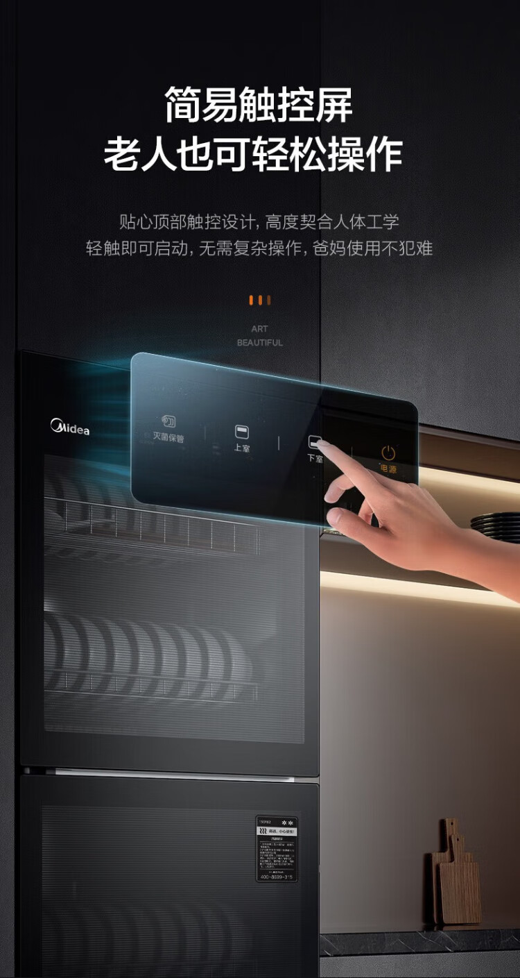 Midea disinfection cabinet 150 liters cabinet commercial two-star disinfection household upper and lower double doors independent control kitchen tableware bottle cabinet disinfection cupboard 150R02
