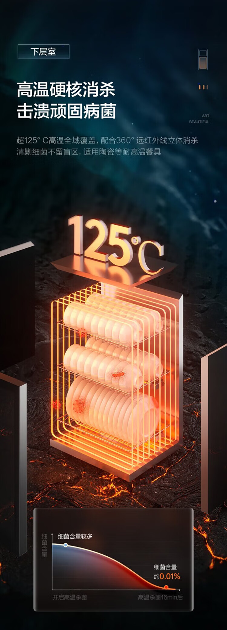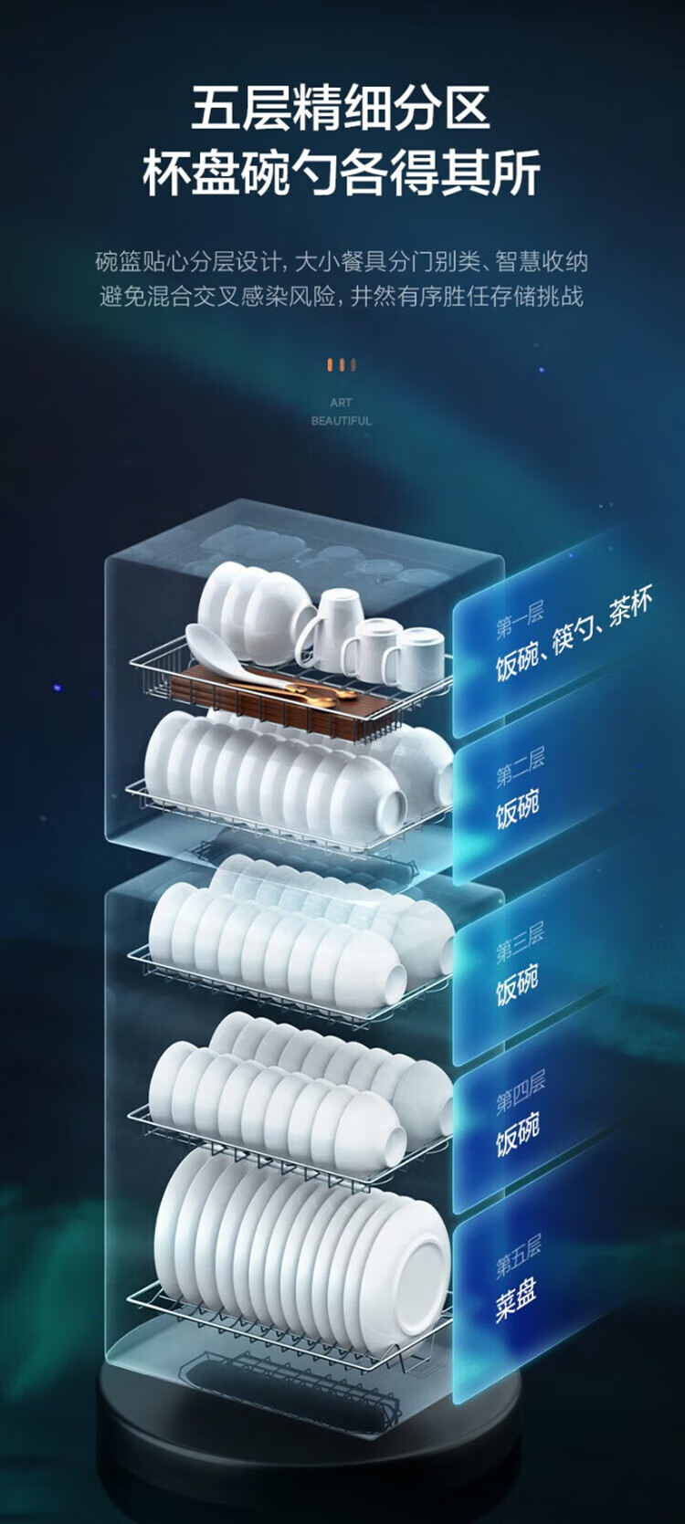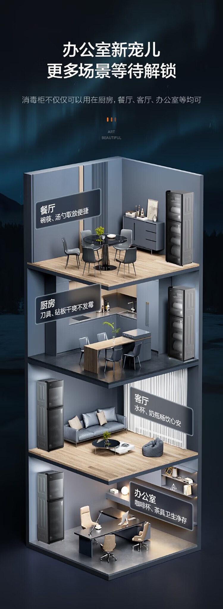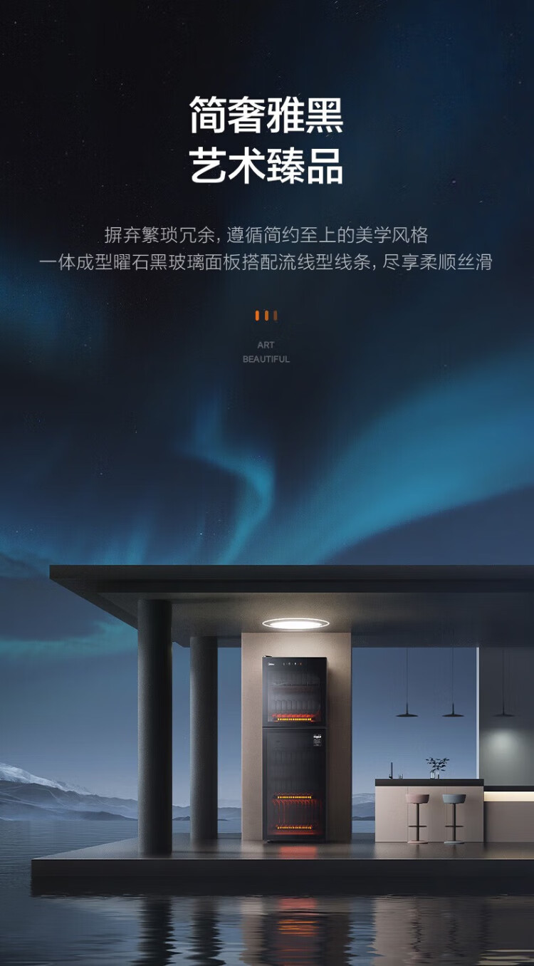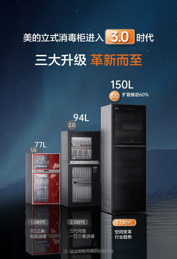 Midea disinfection cabinet 150 liters cabinet commercial two-star disinfection household upper and lower double doors independent control kitchen tableware bottle cabinet disinfection cupboard 150R02
