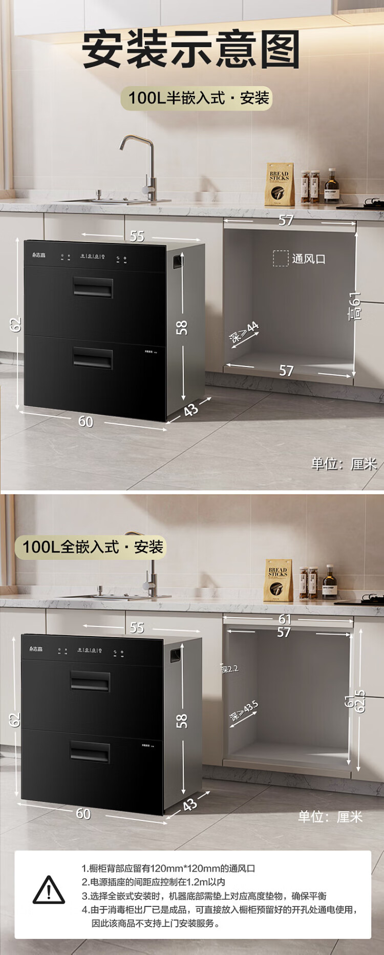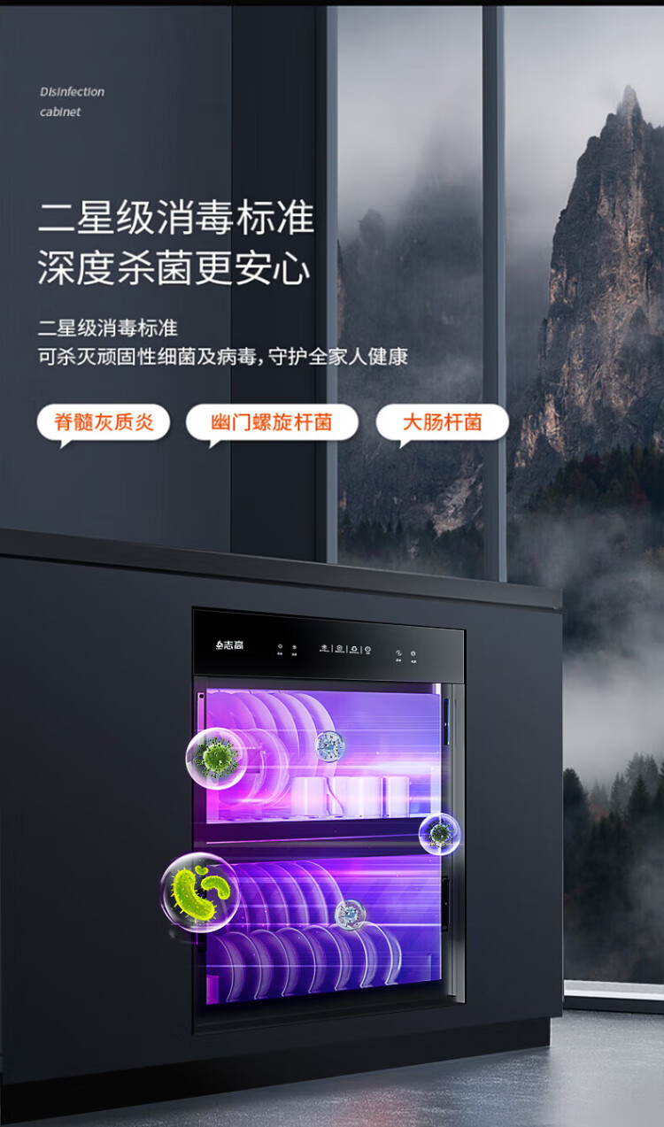CHIGO Guoben Disinfection Cabinet Household Embedded Disinfection Cupboard Household Tableware Disinfection 100L Two-Star F414 National Subsidy 15% Off