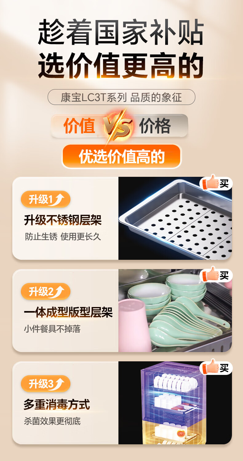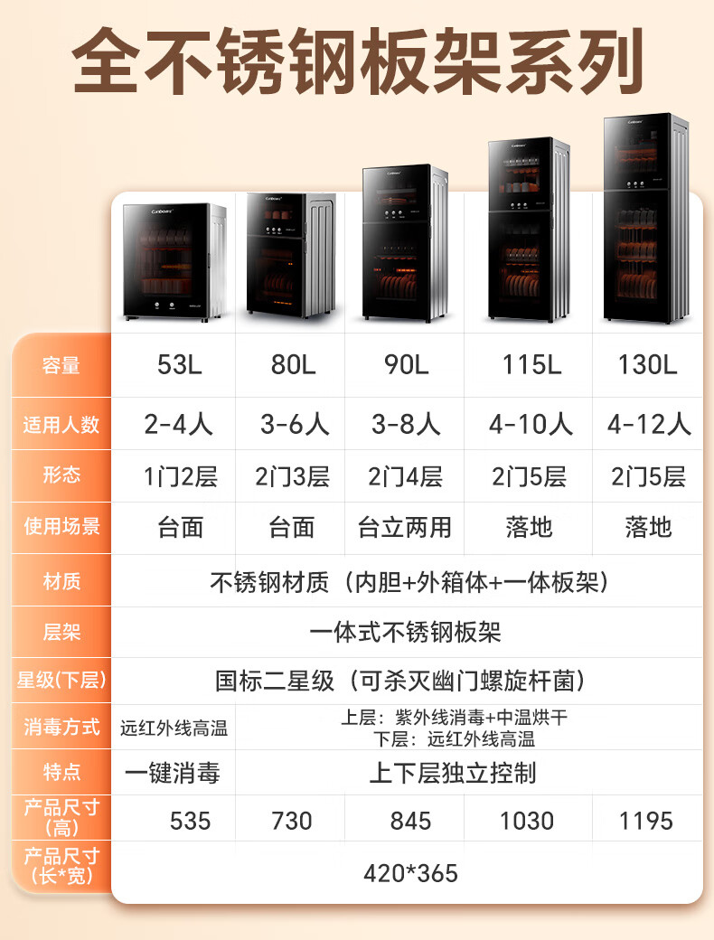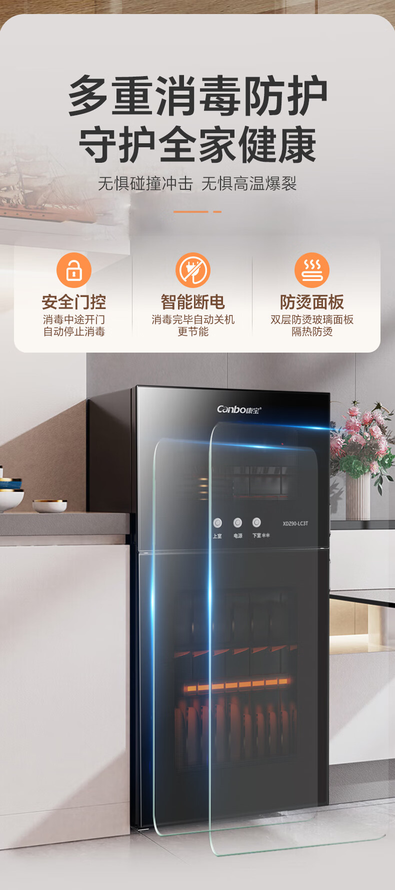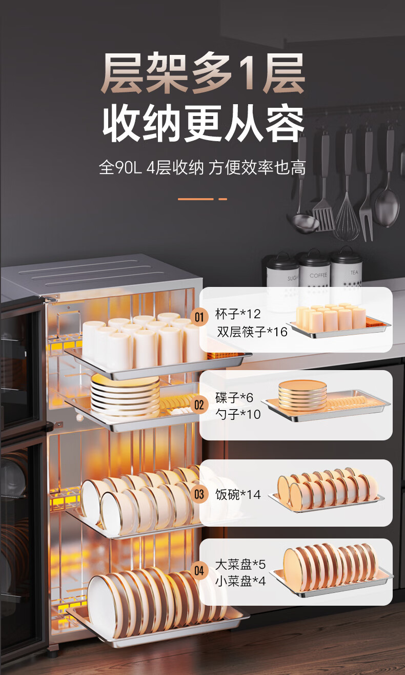 Canbo Disinfection Cabinet Household Vertical Disinfection Cupboard UV Desktop Cupboard Small Kitchen Storage Tableware Teacup Drying Machine XDZ90-LC3T National Subsidy