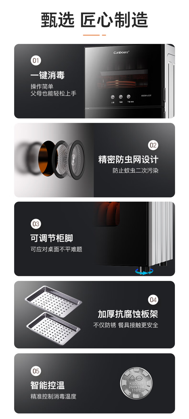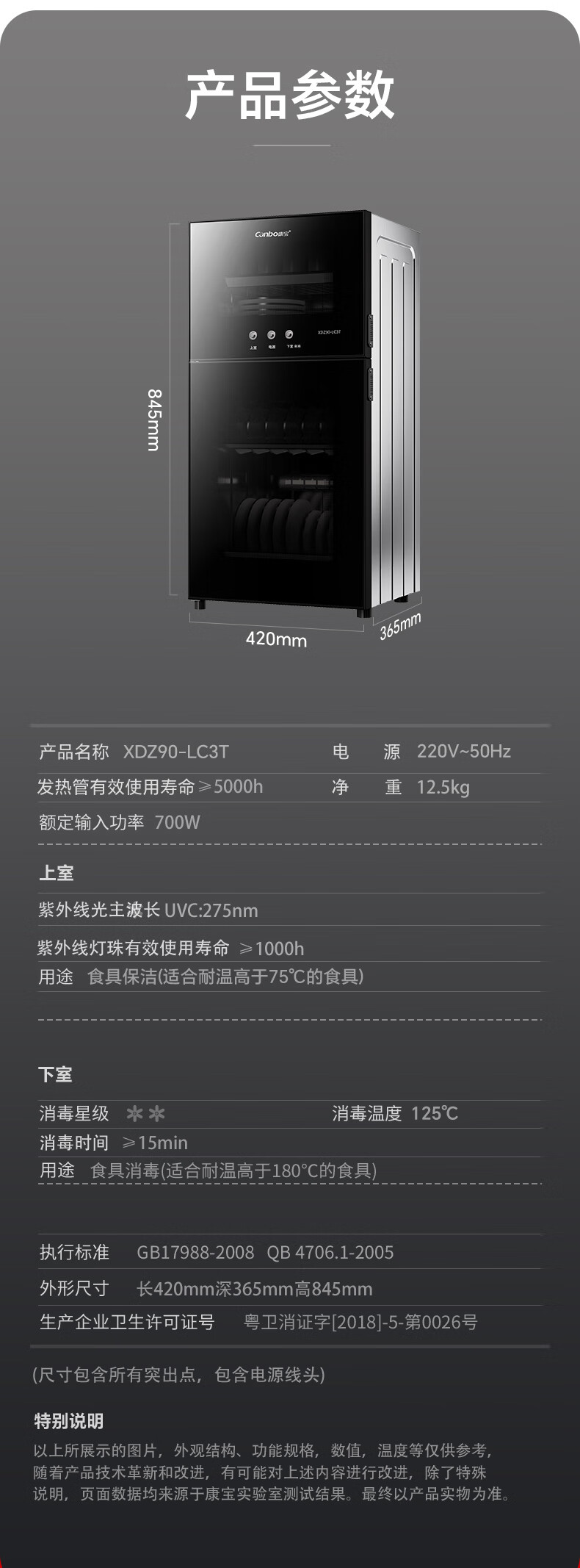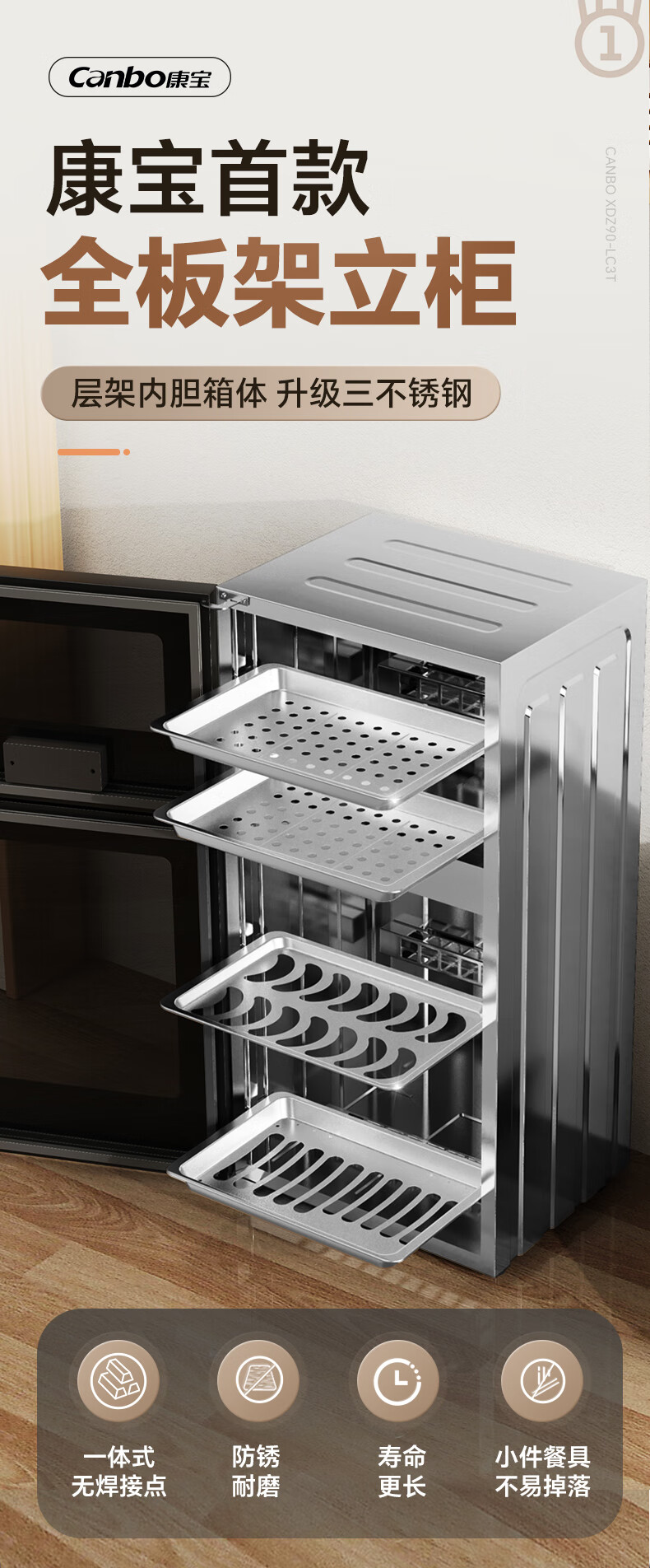 Canbo Disinfection Cabinet Household Vertical Disinfection Cupboard UV Desktop Cupboard Small Kitchen Storage Tableware Teacup Drying Machine XDZ90-LC3T National Subsidy