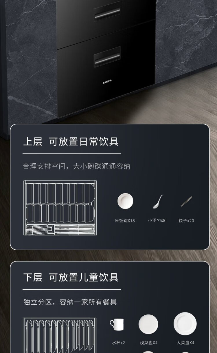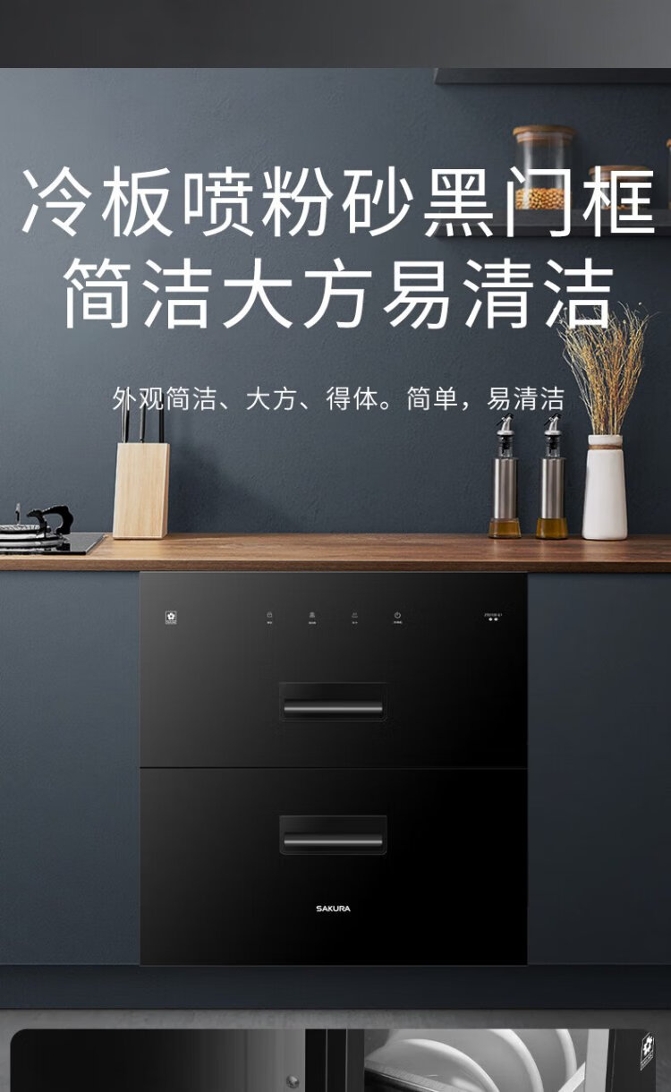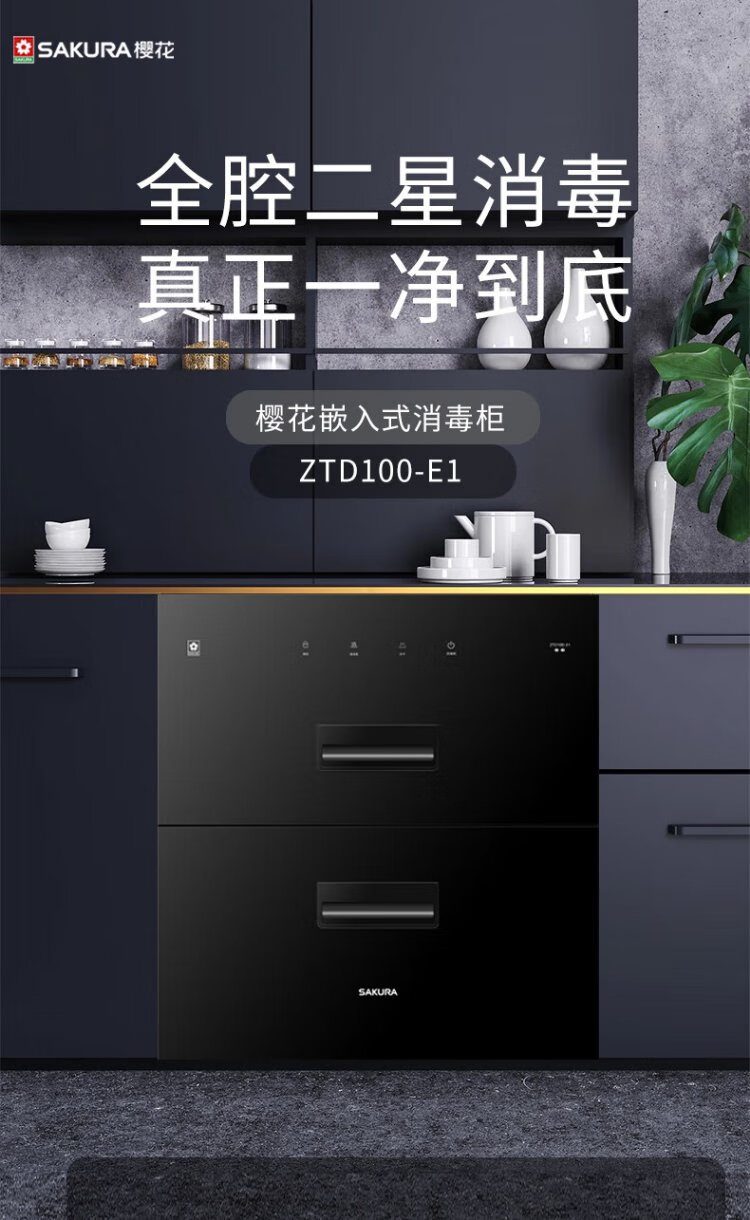 SAKURA national subsidy up to 15% built-in disinfection cabinet 100L large capacity kitchen tableware cupboard household maternal and infant double-layer disinfection cabinet two-star ZTD100-E1