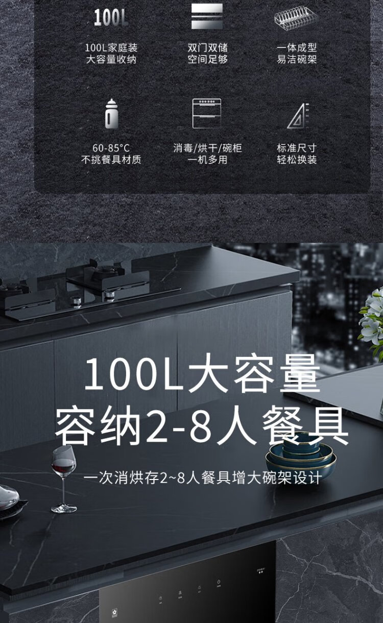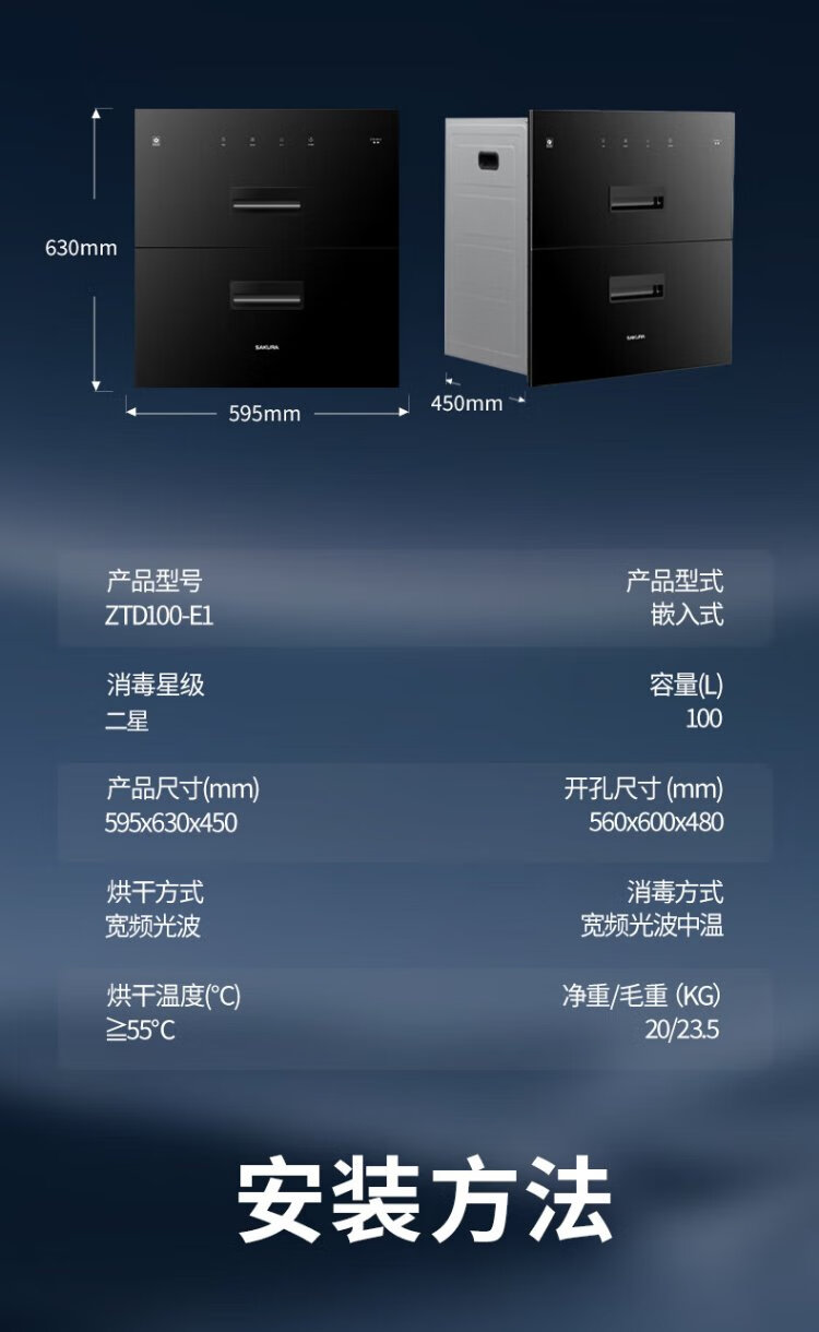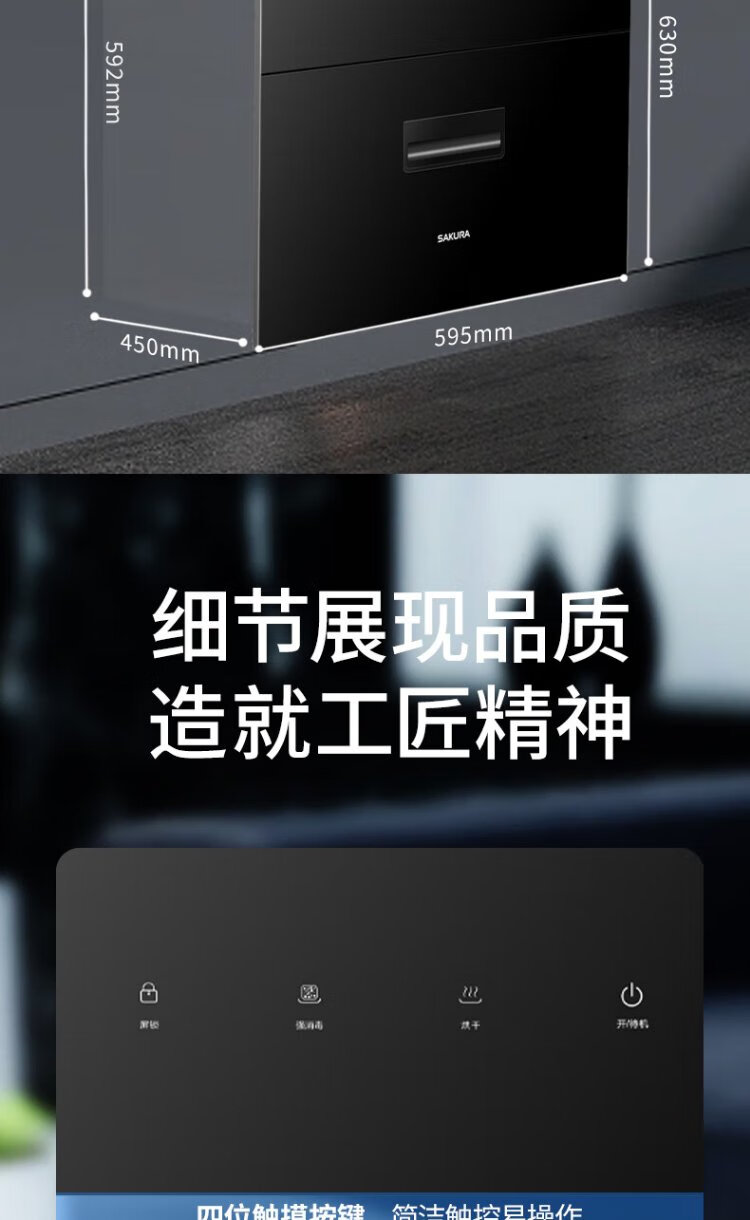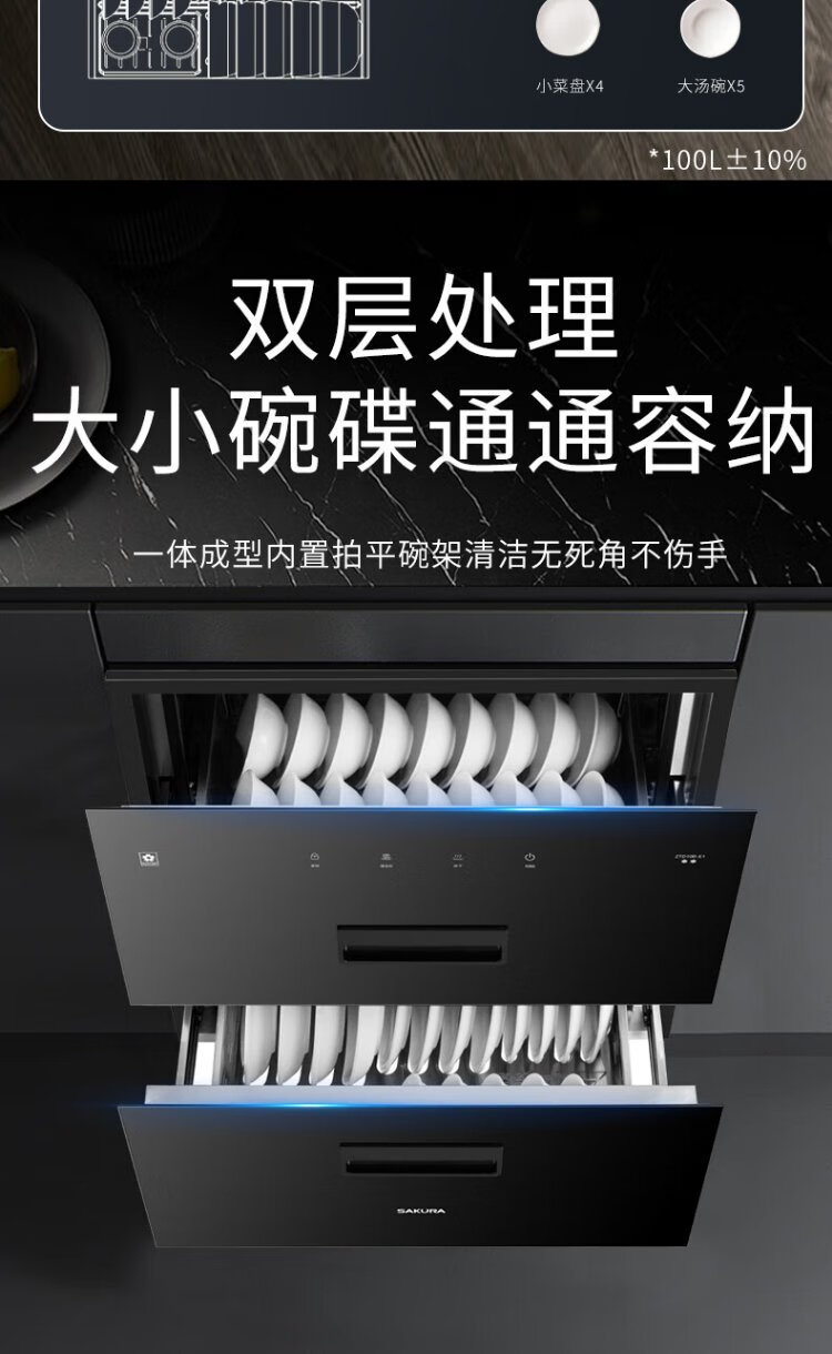 SAKURA national subsidy up to 15% built-in disinfection cabinet 100L large capacity kitchen tableware cupboard household maternal and infant double-layer disinfection cabinet two-star ZTD100-E1