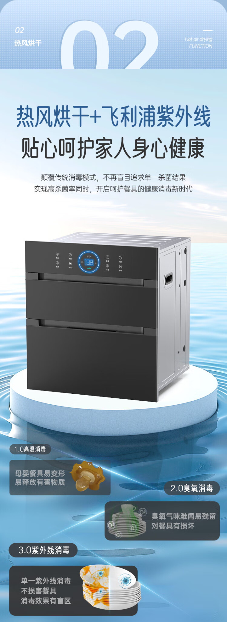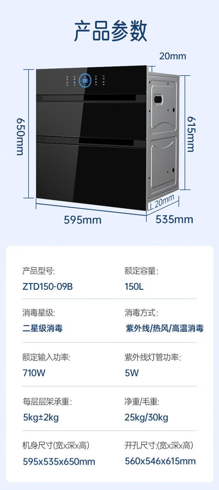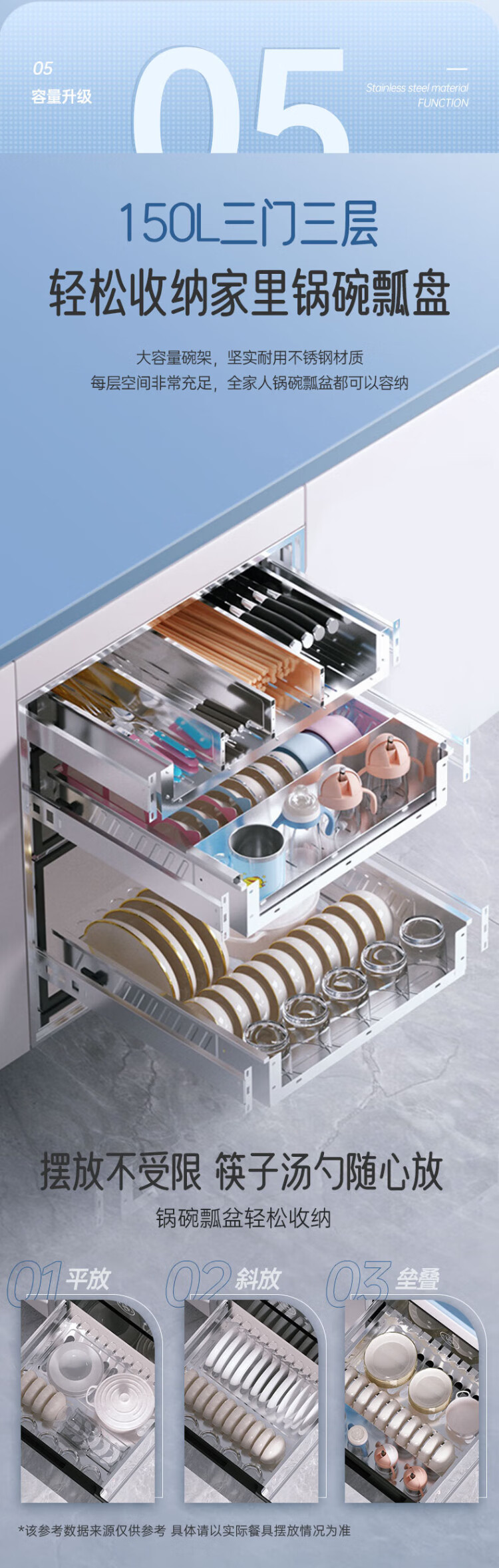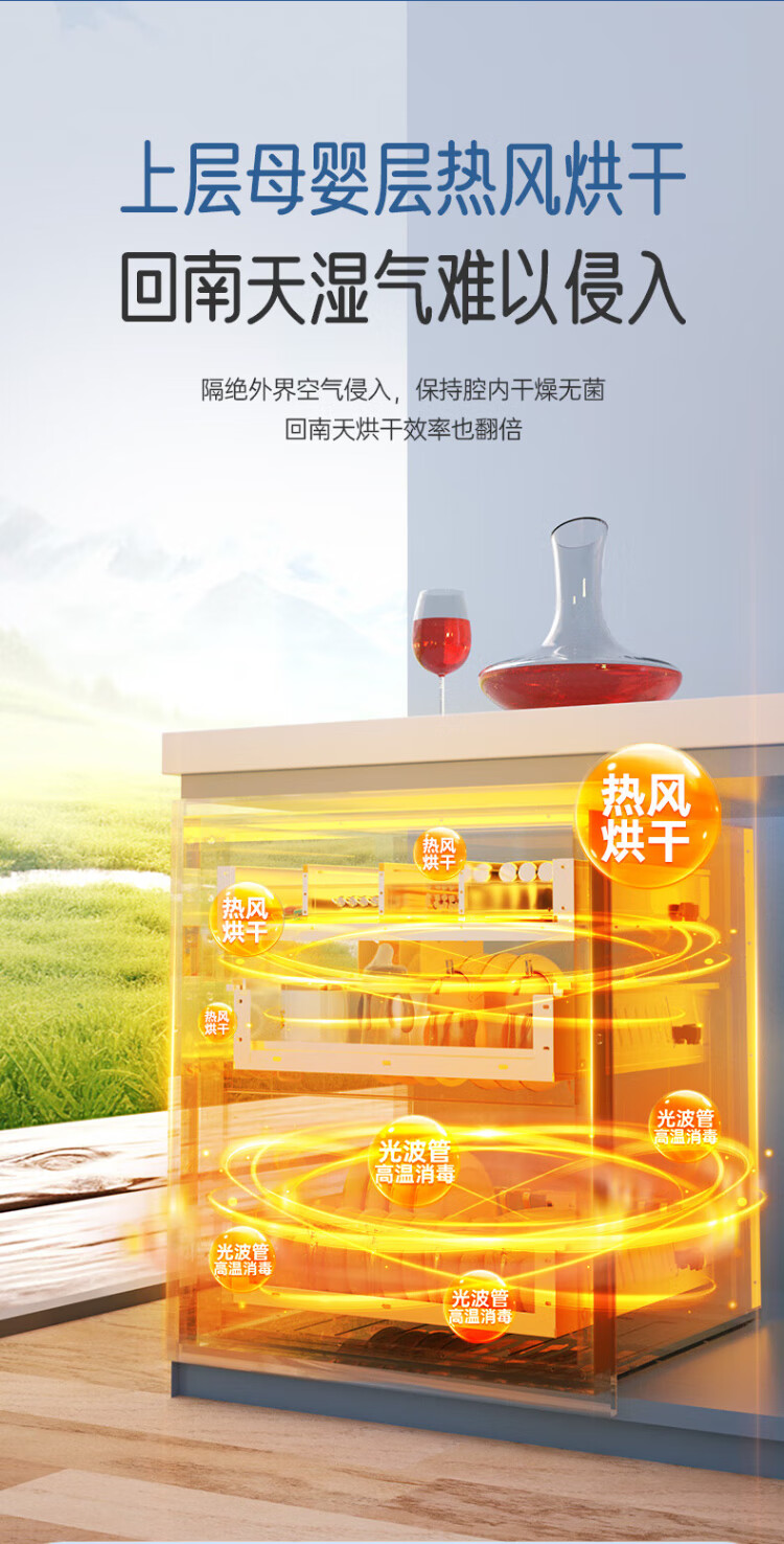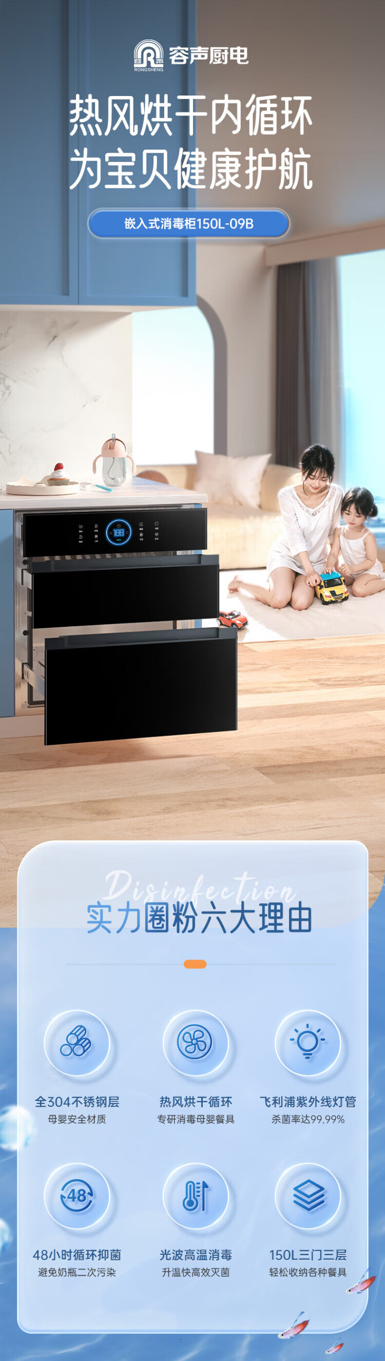 Rongsheng Disinfection Cabinet Household Embedded Purple Royal Hot Air Circulation Disinfection Cupboard Large Capacity Two-Star Kitchen Tableware 304 Stainless Steel National Subsidy ZTD150-09B
