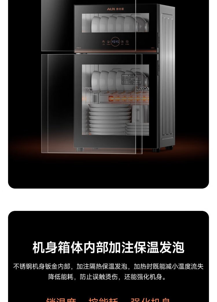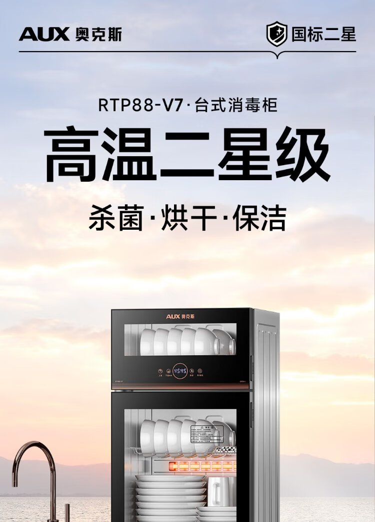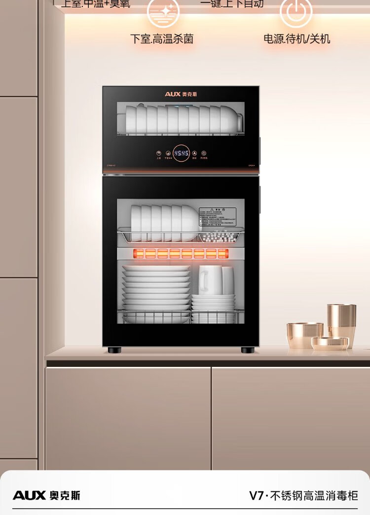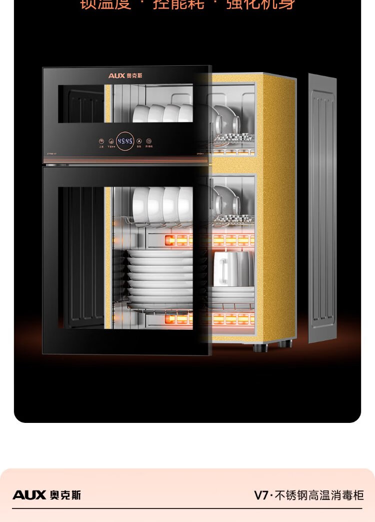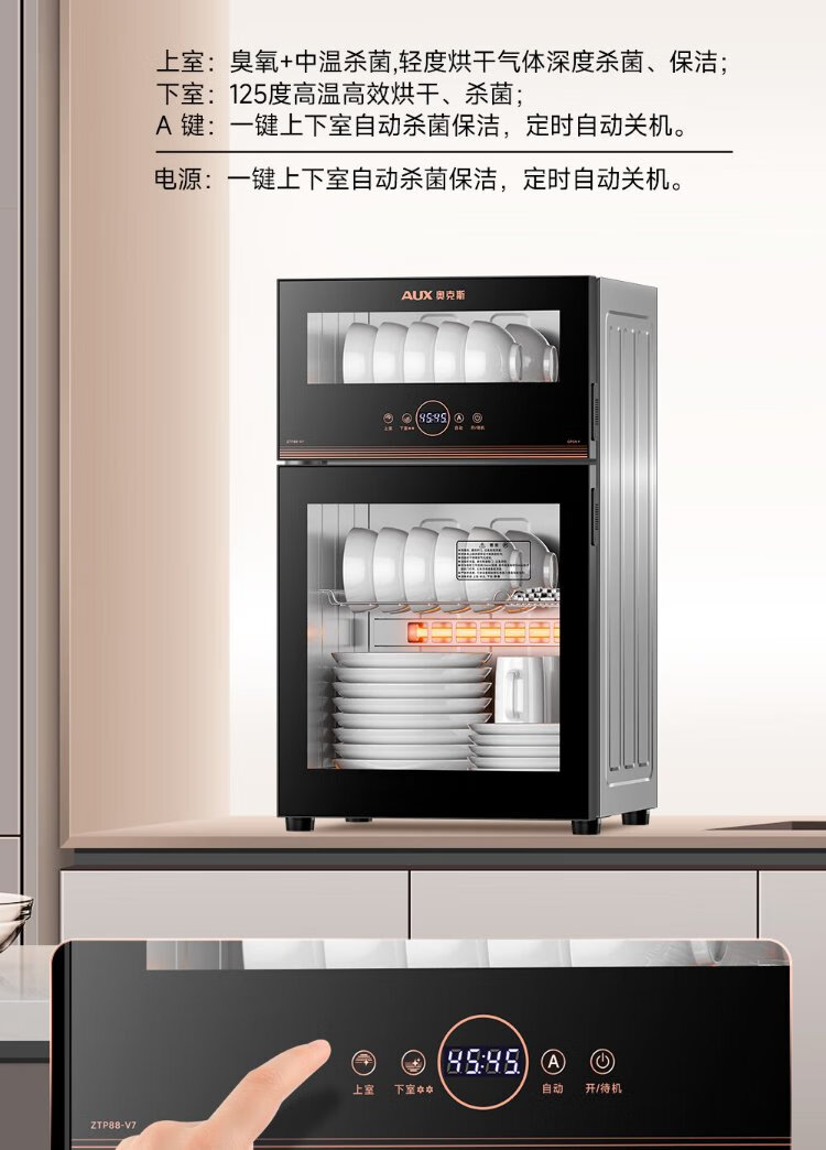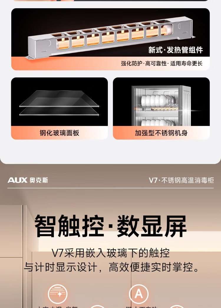 AUX Disinfection Cabinet Household Vertical Disinfection Cupboard Two-Star Touch Control Drain-Free Disinfection Cabinet Tableware Large Capacity High Temperature Disinfection Cupboard National Subsidy ZTP88-V7