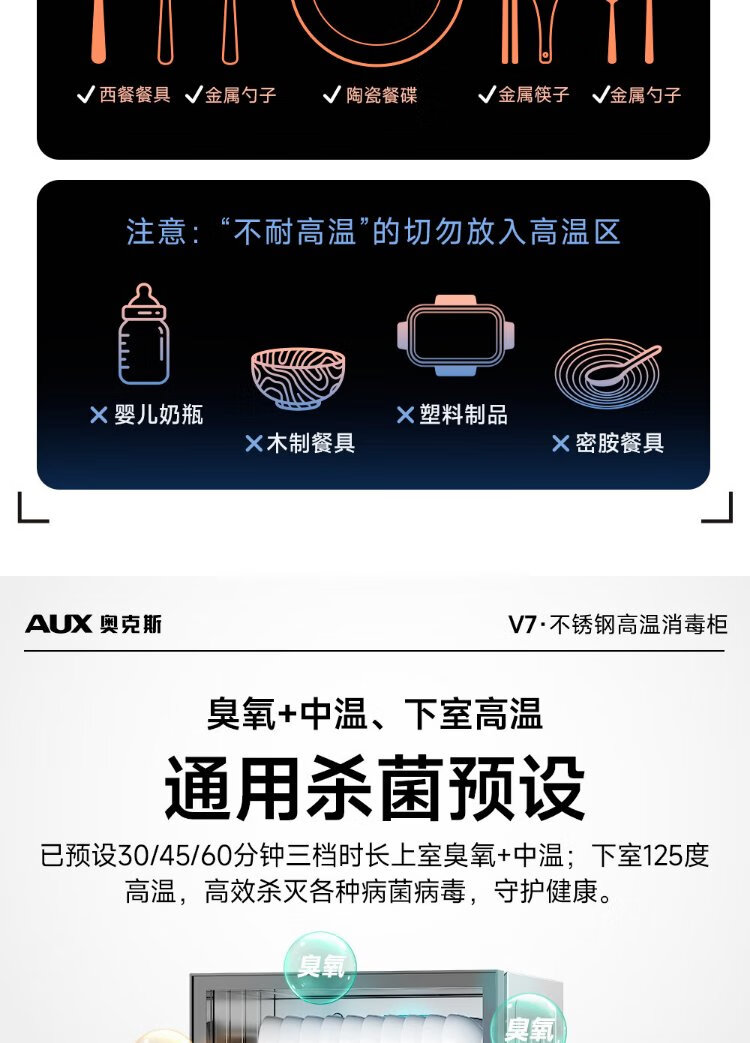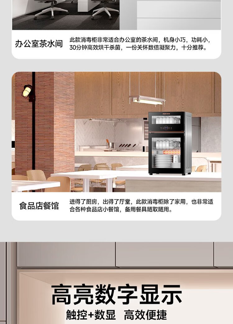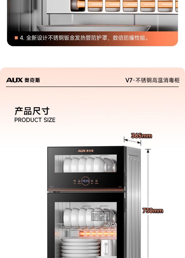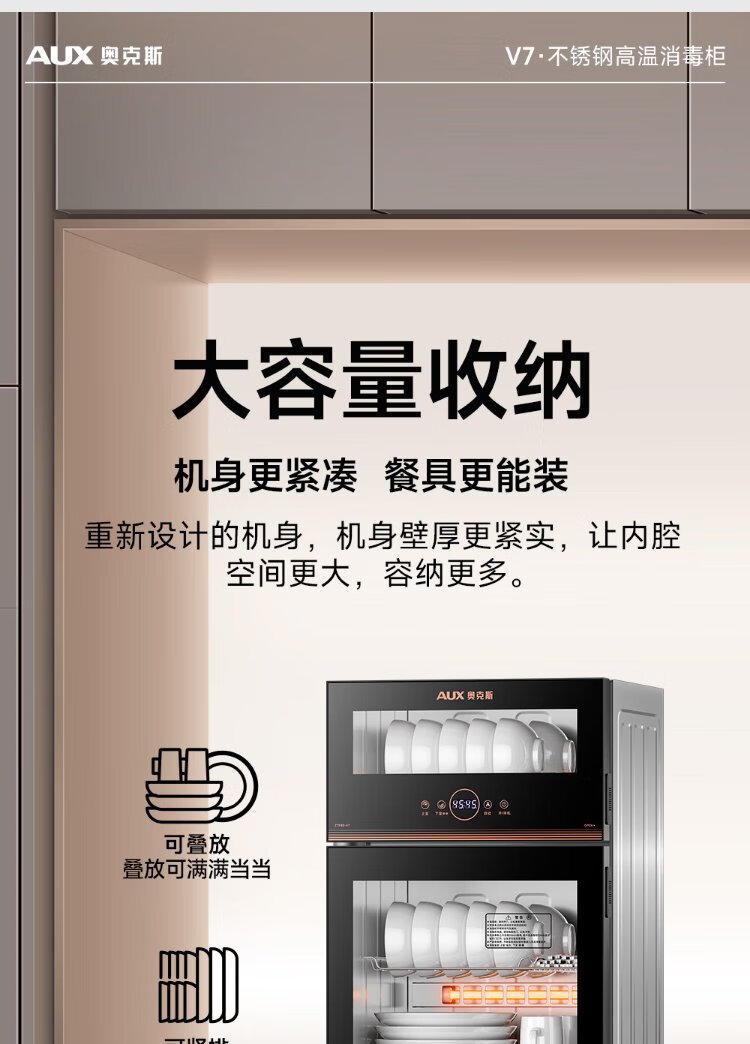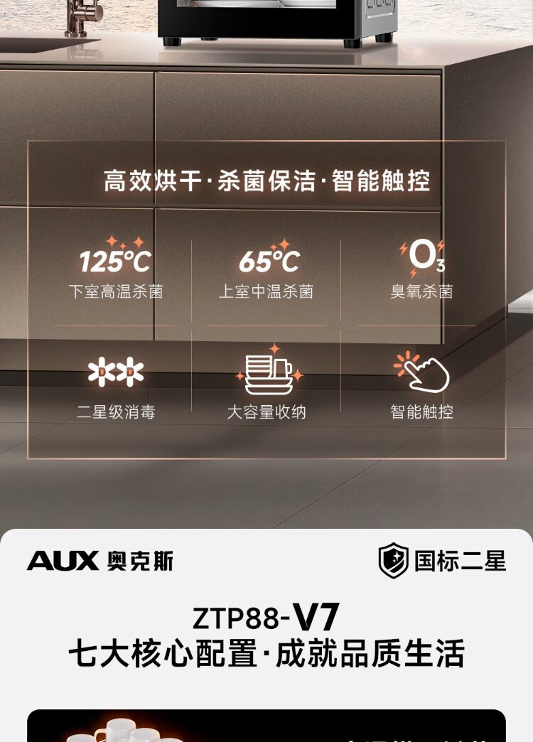 AUX Disinfection Cabinet Household Vertical Disinfection Cupboard Two-Star Touch Control Drain-Free Disinfection Cabinet Tableware Large Capacity High Temperature Disinfection Cupboard National Subsidy ZTP88-V7