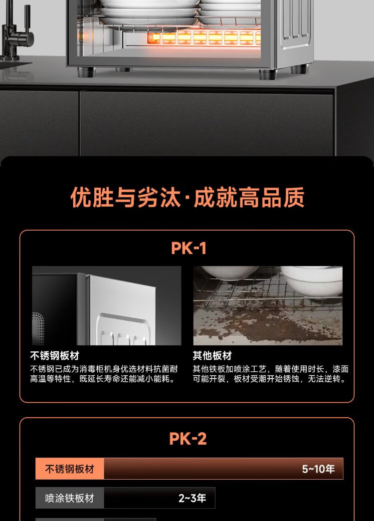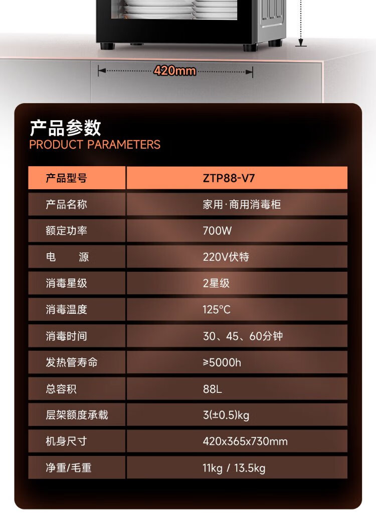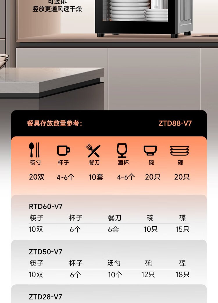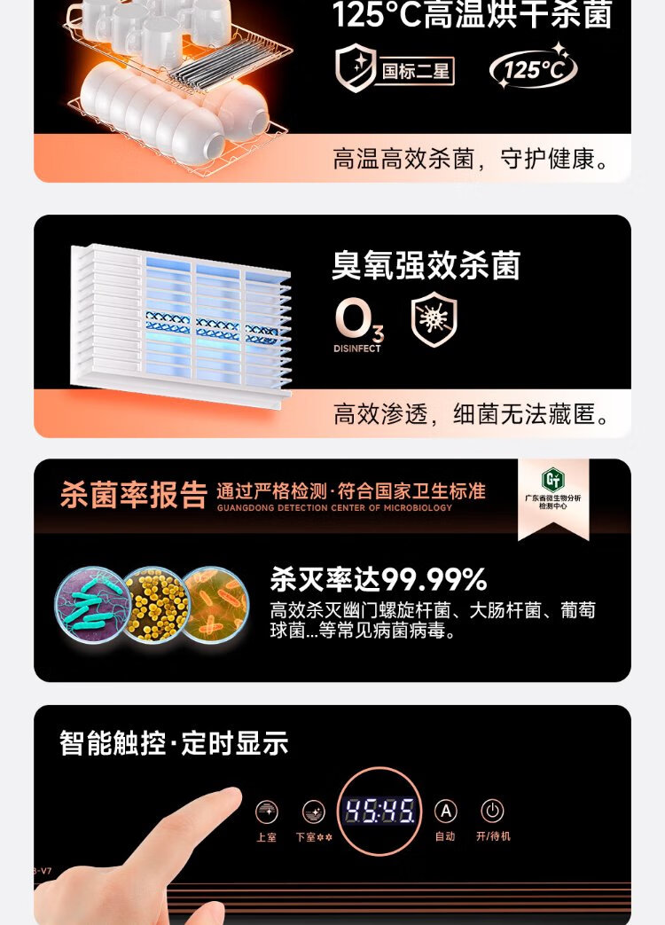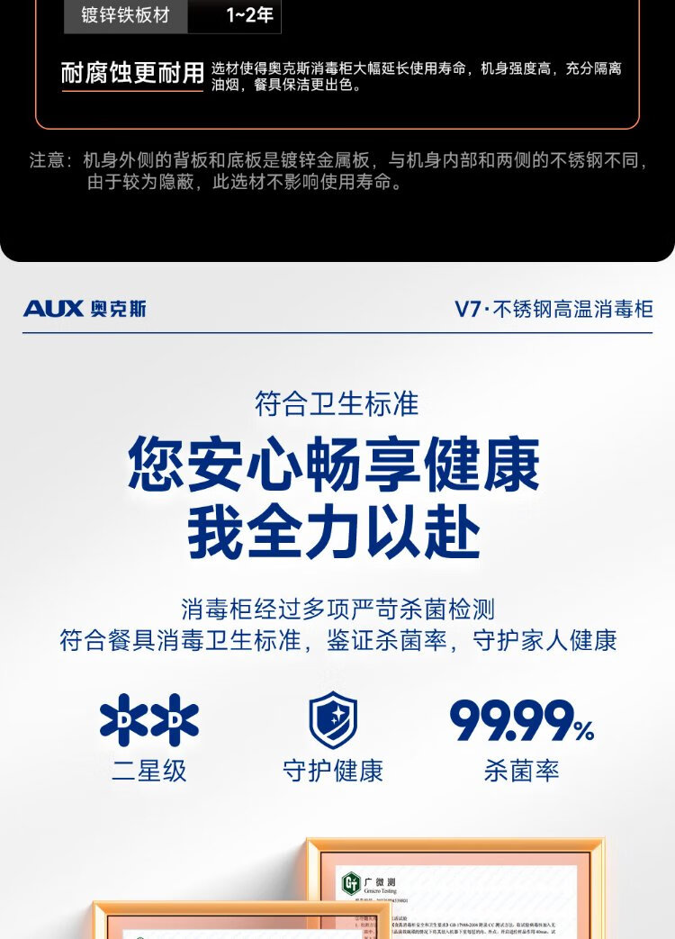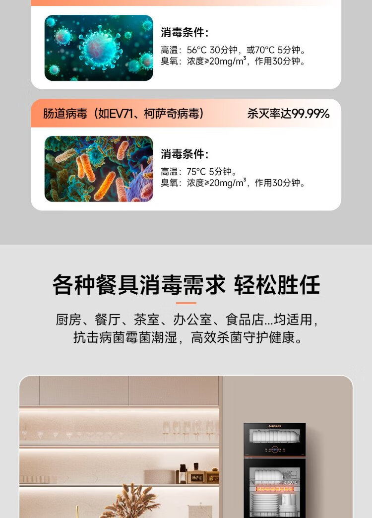 AUX Disinfection Cabinet Household Vertical Disinfection Cupboard Two-Star Touch Control Drain-Free Disinfection Cabinet Tableware Large Capacity High Temperature Disinfection Cupboard National Subsidy ZTP88-V7