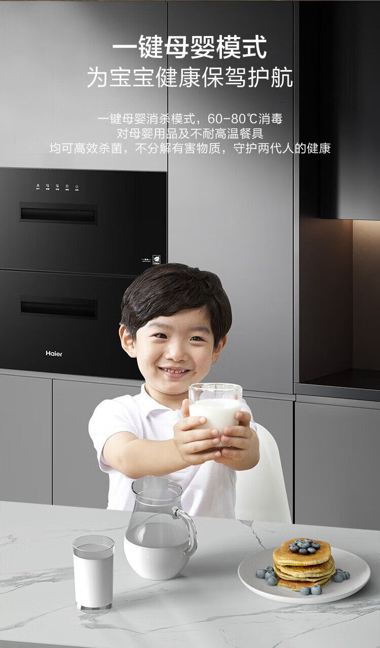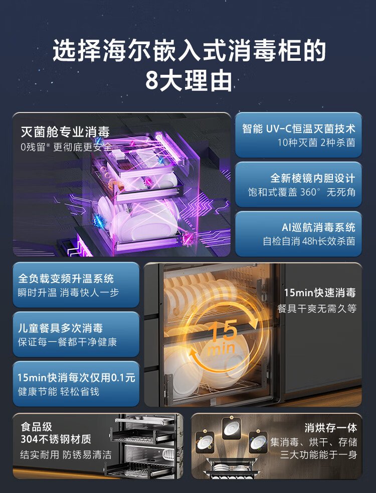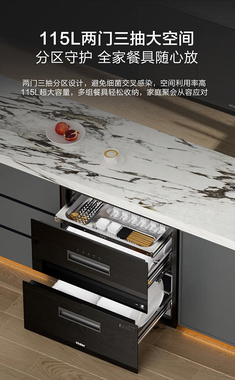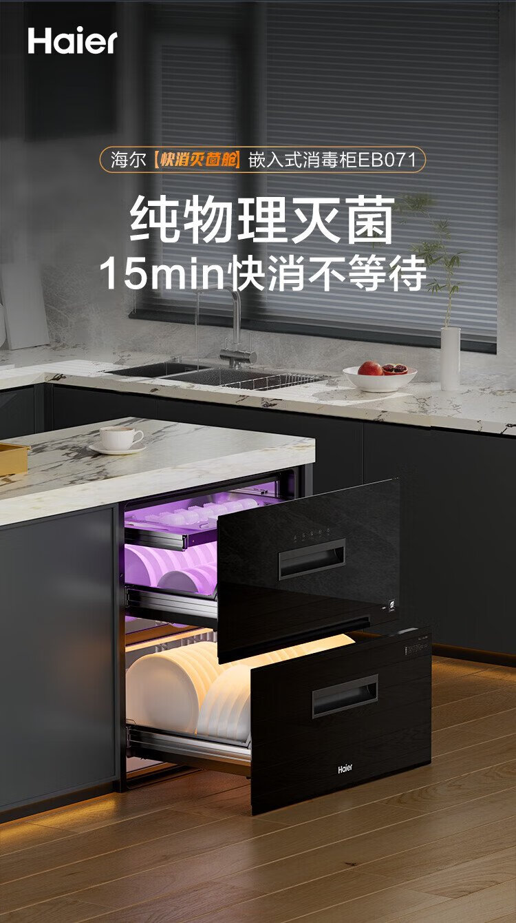 Haier 115L sterilizer cabinet embedded sterilization cabin series three-layer household sterilization cupboard UV + light wave pasteurization 0 ozone FMCG baby bottle EB071