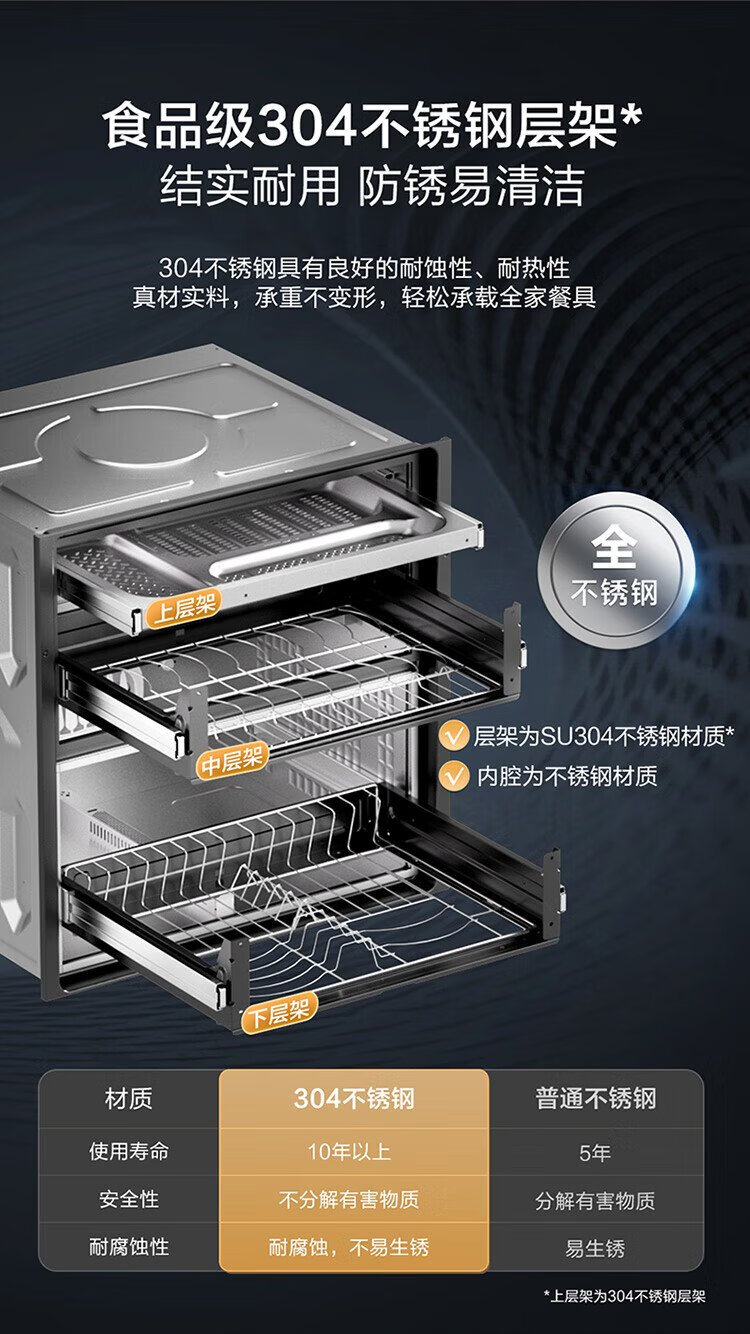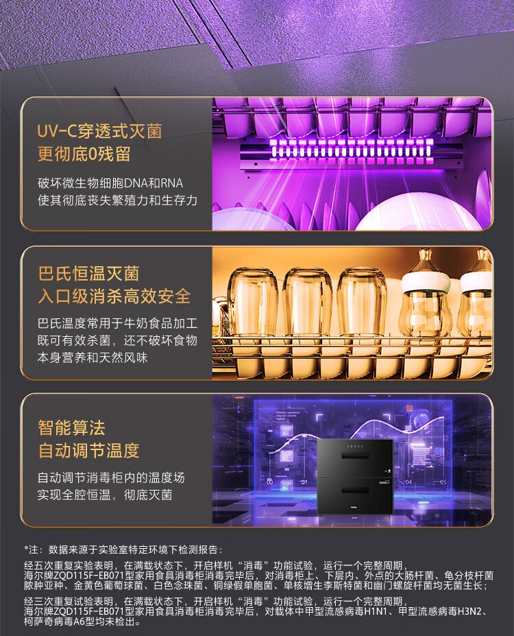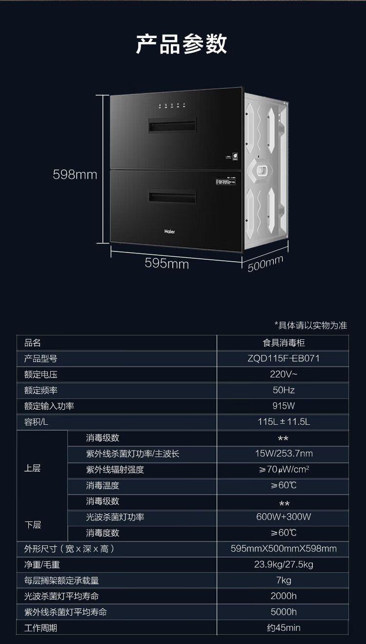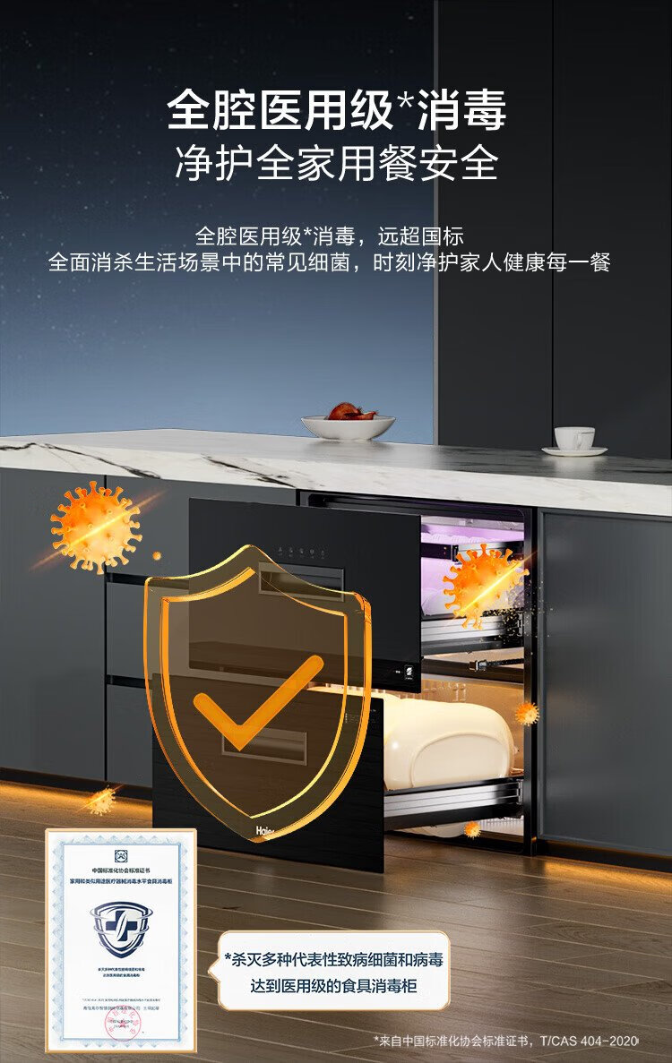 Haier 115L sterilizer cabinet embedded sterilization cabin series three-layer household sterilization cupboard UV + light wave pasteurization 0 ozone FMCG baby bottle EB071