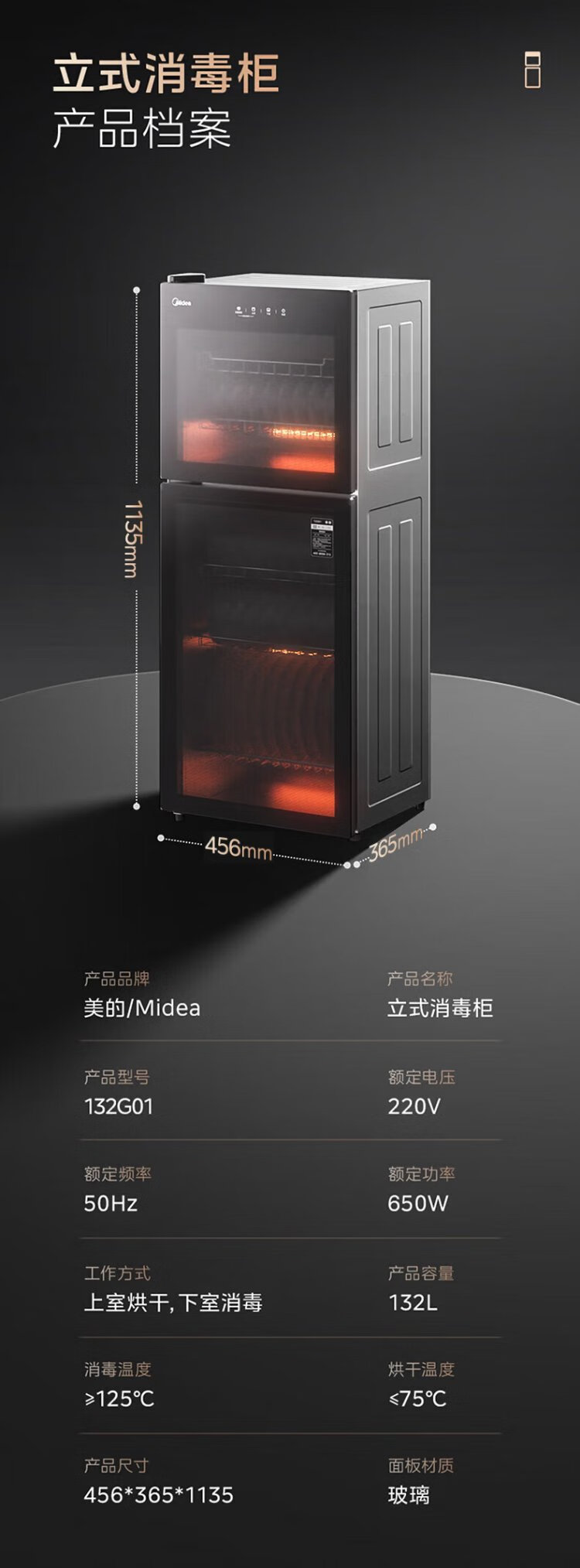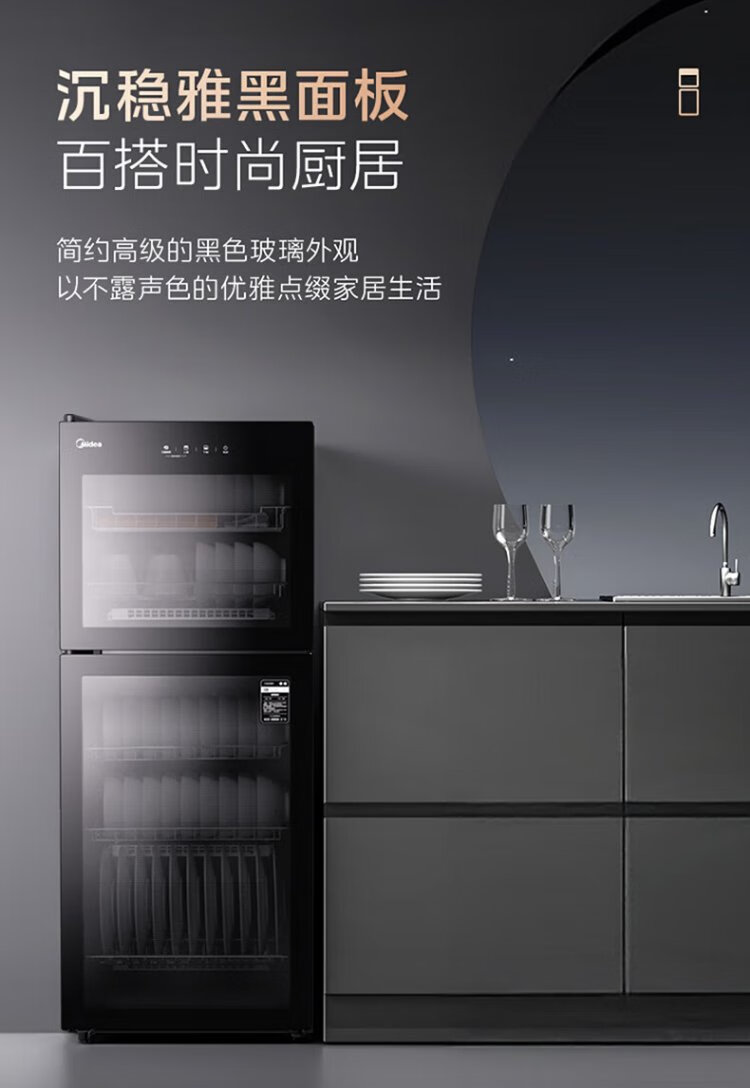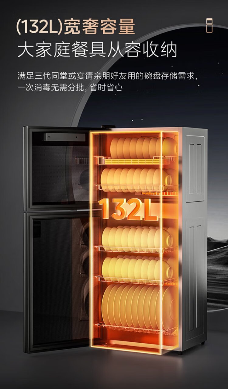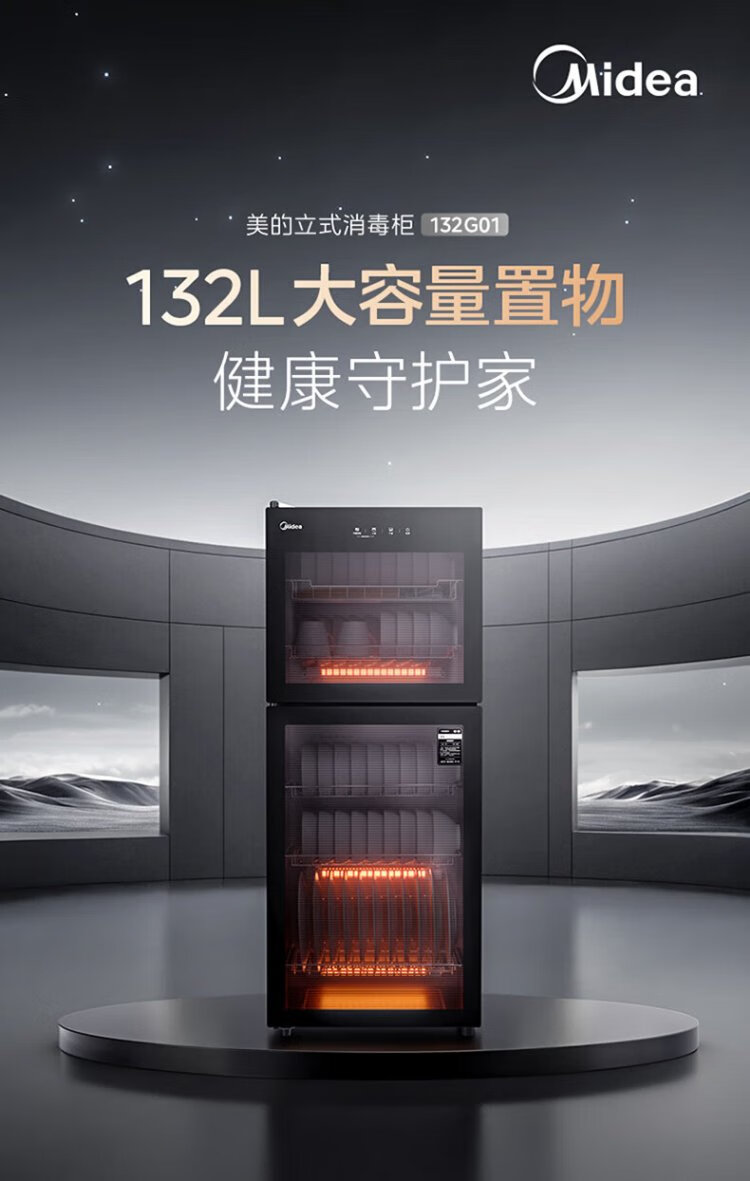 Midea household disinfection cabinet cupboard 132L kitchen tableware, tableware, sterilizing and drying all-in-one machine with upper and lower independent control small vertical cabinet type high temperature two-star disinfection national subsidy 132G01