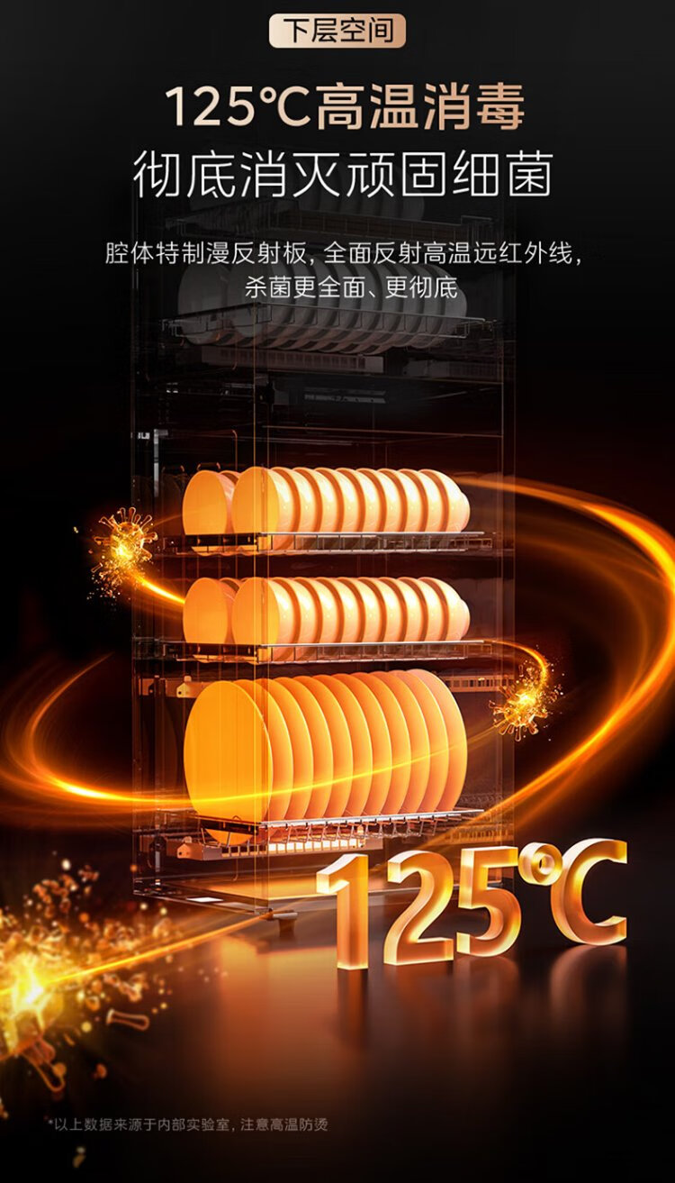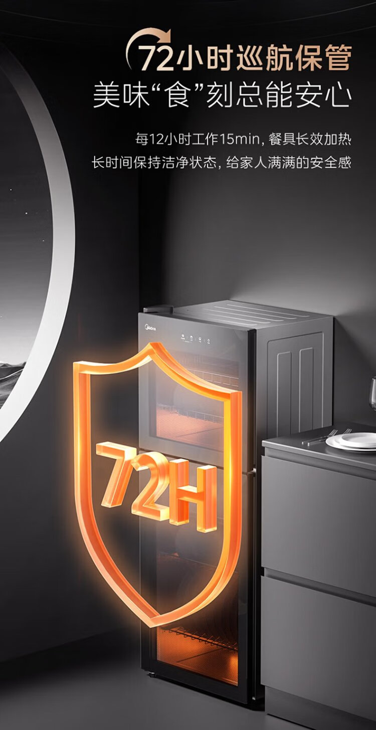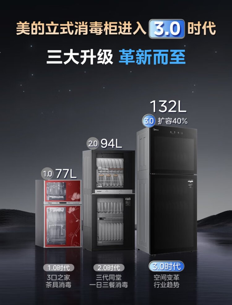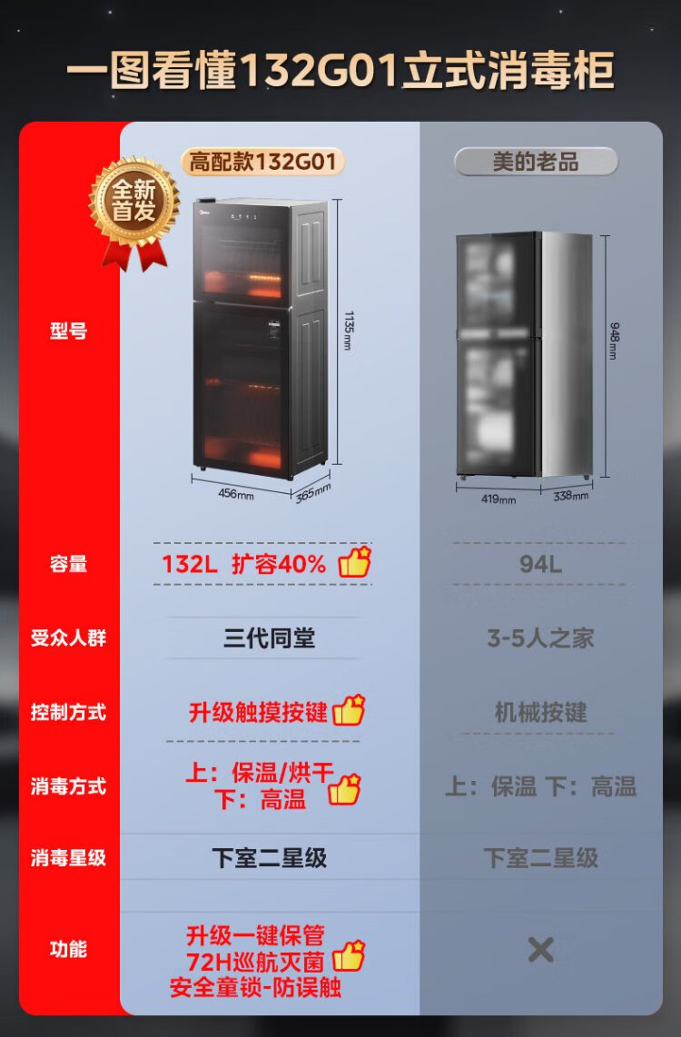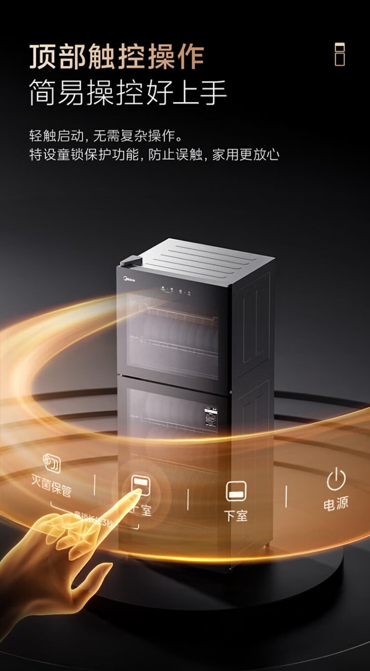 Midea household disinfection cabinet cupboard 132L kitchen tableware, tableware, sterilizing and drying all-in-one machine with upper and lower independent control small vertical cabinet type high temperature two-star disinfection national subsidy 132G01