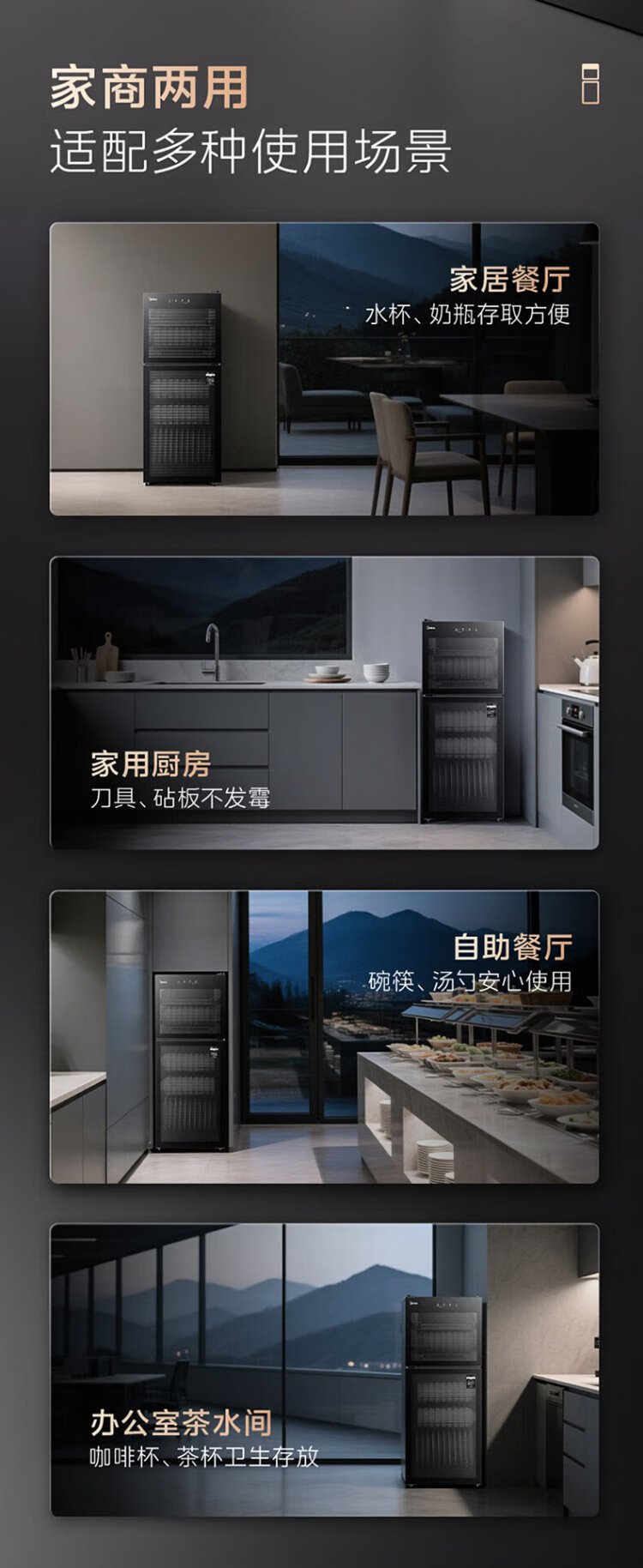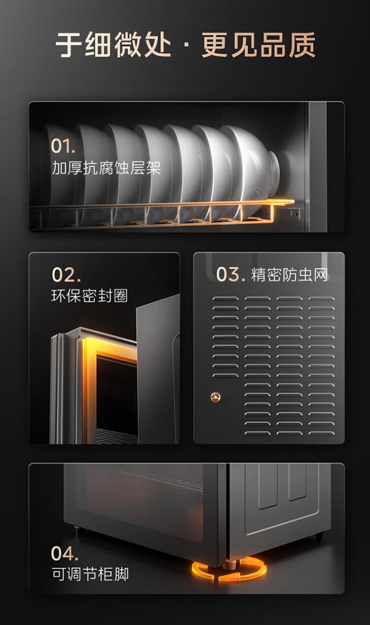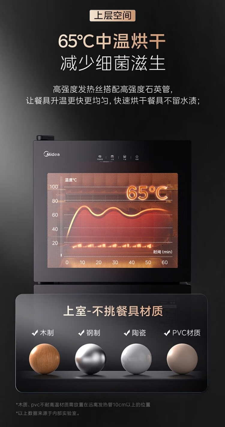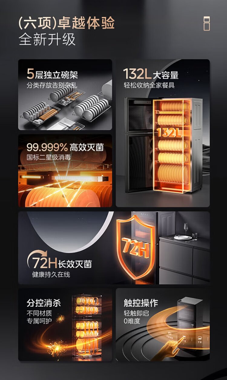 Midea household disinfection cabinet cupboard 132L kitchen tableware, tableware, sterilizing and drying all-in-one machine with upper and lower independent control small vertical cabinet type high temperature two-star disinfection national subsidy 132G01