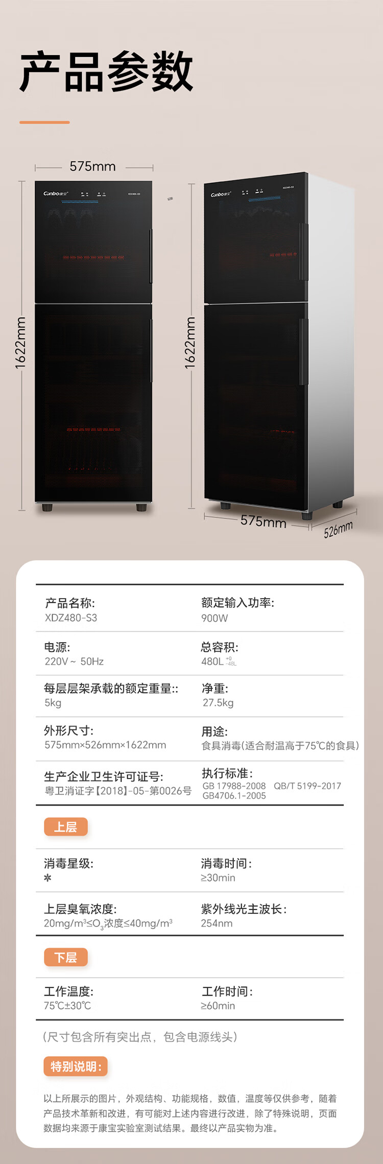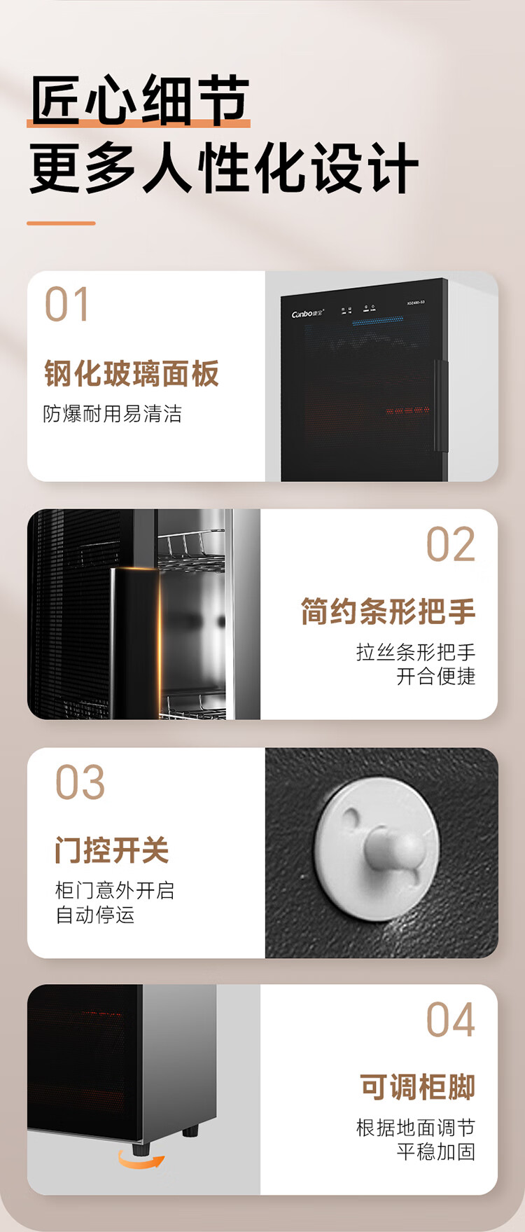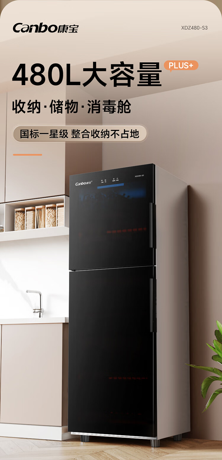 Canbo disinfection cabinet household drying and disinfection cupboard vertical large capacity 480 liters double door commercial star stainless steel UV canteen tableware disinfection cabinet XDZ480-S3