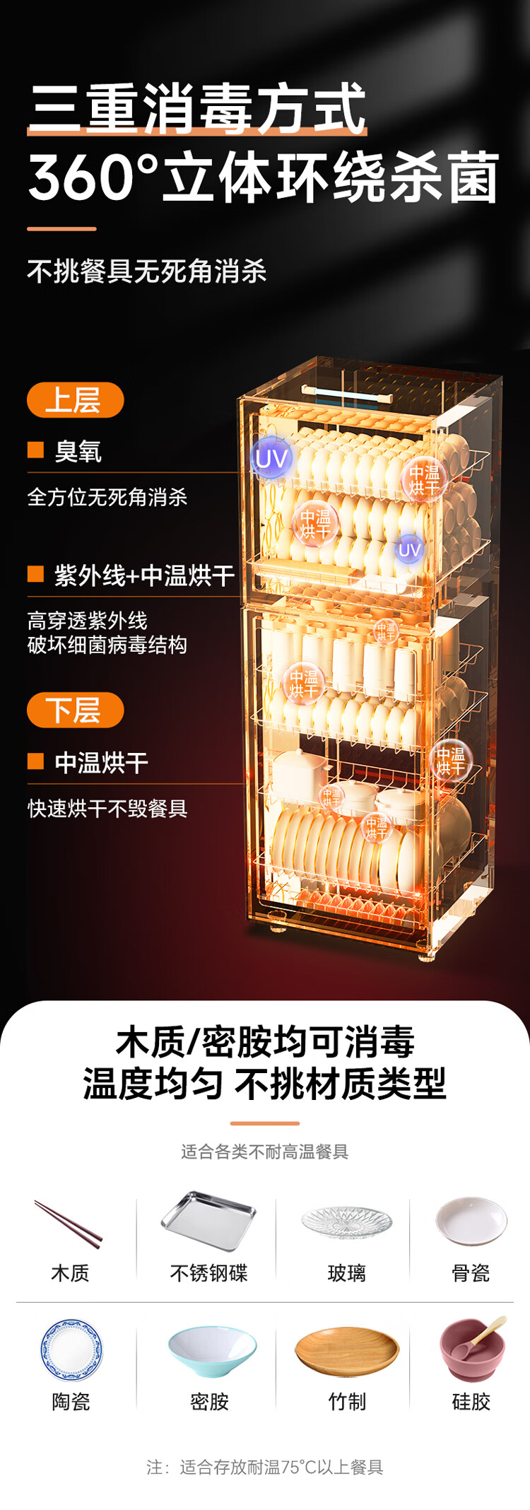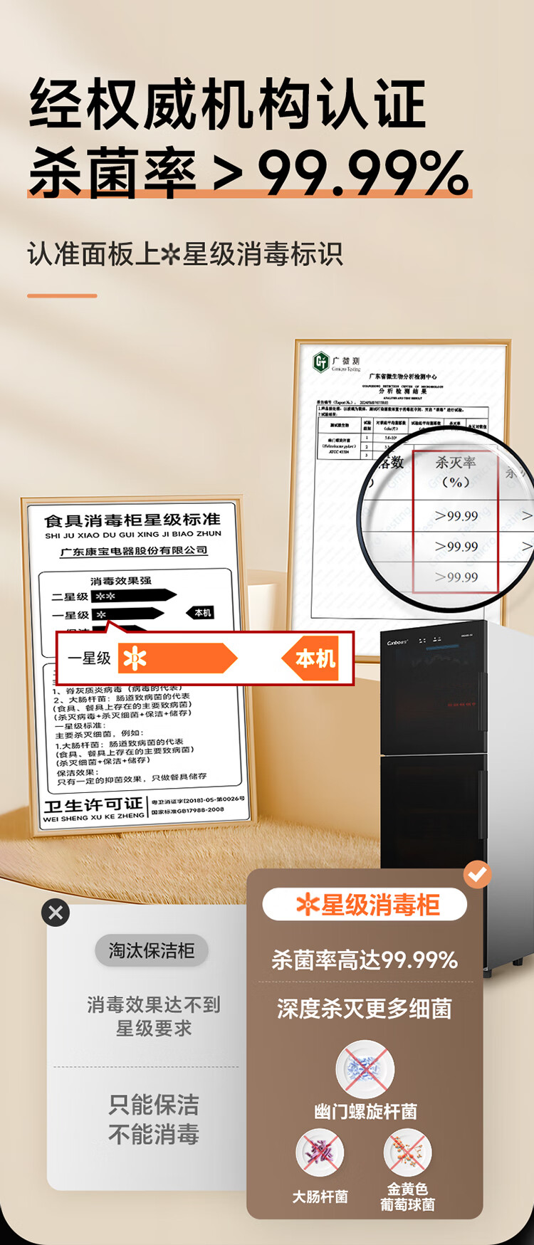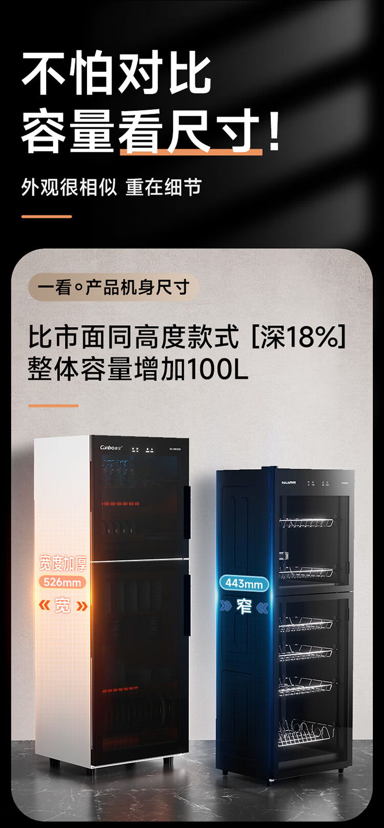 Canbo disinfection cabinet household drying and disinfection cupboard vertical large capacity 480 liters double door commercial star stainless steel UV canteen tableware disinfection cabinet XDZ480-S3