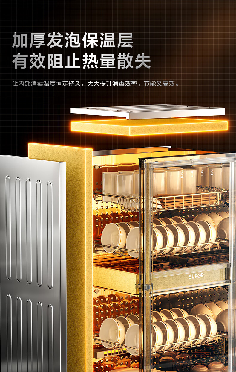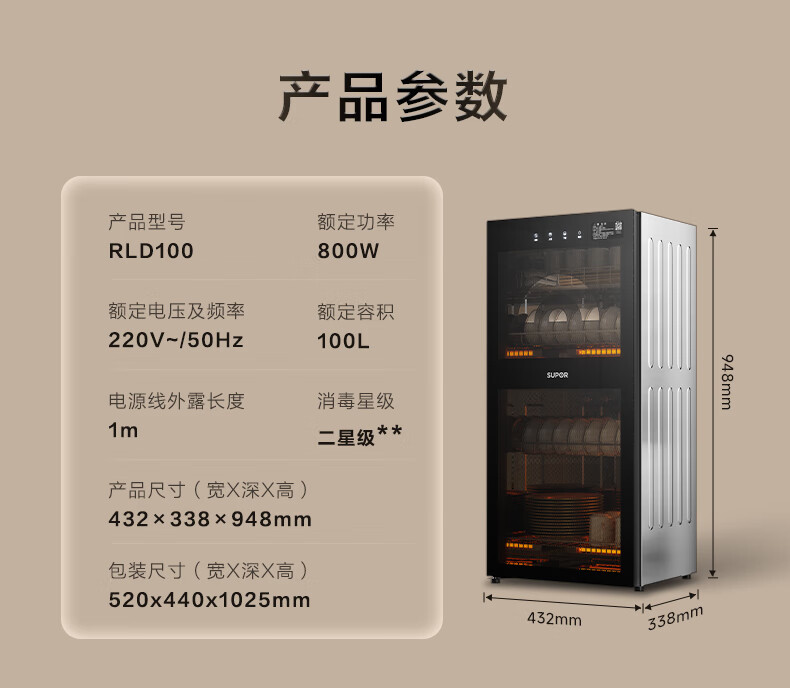 SUPOR RLD100 household disinfection cabinet commercial canteen hotel vertical two-star high temperature tableware 100L large capacity drying all-in-one machine tableware disinfection cupboard