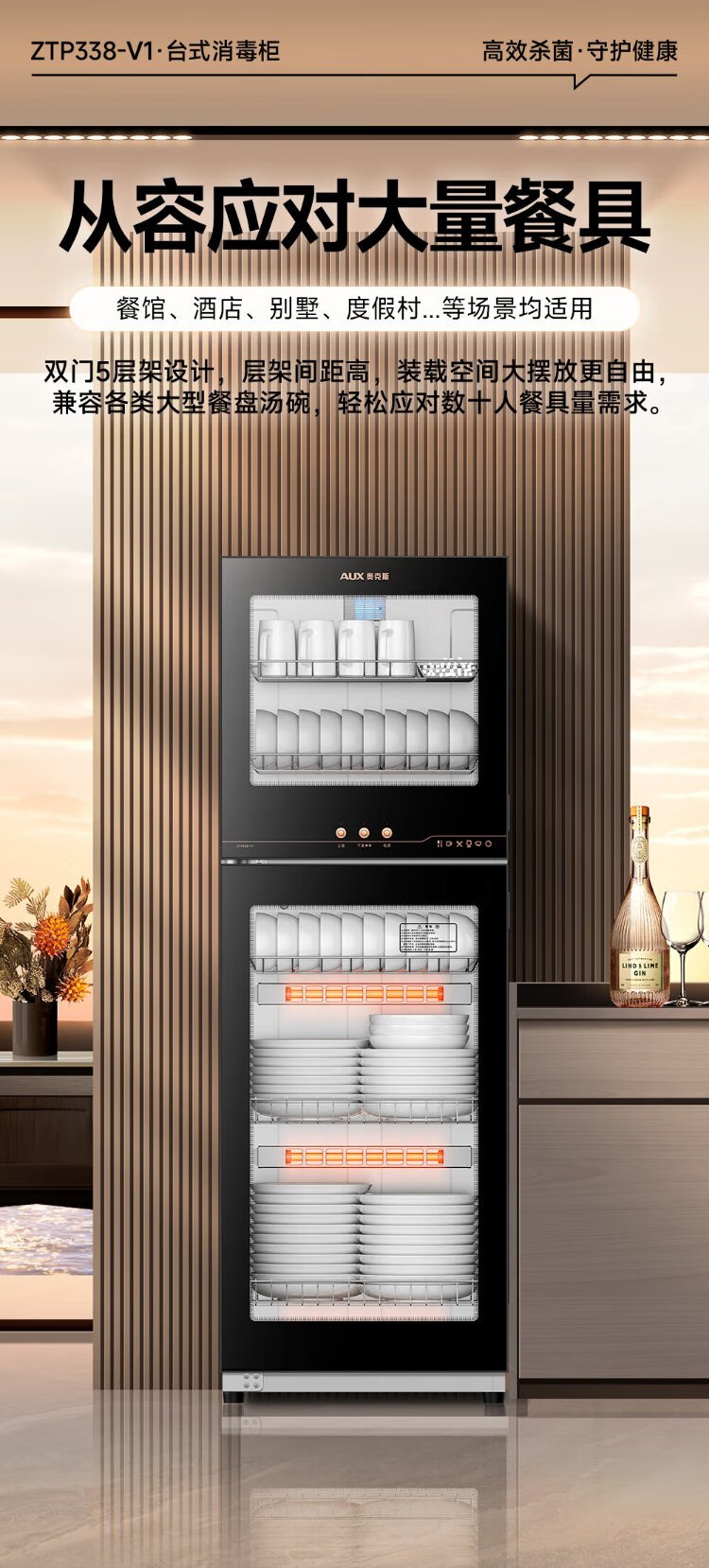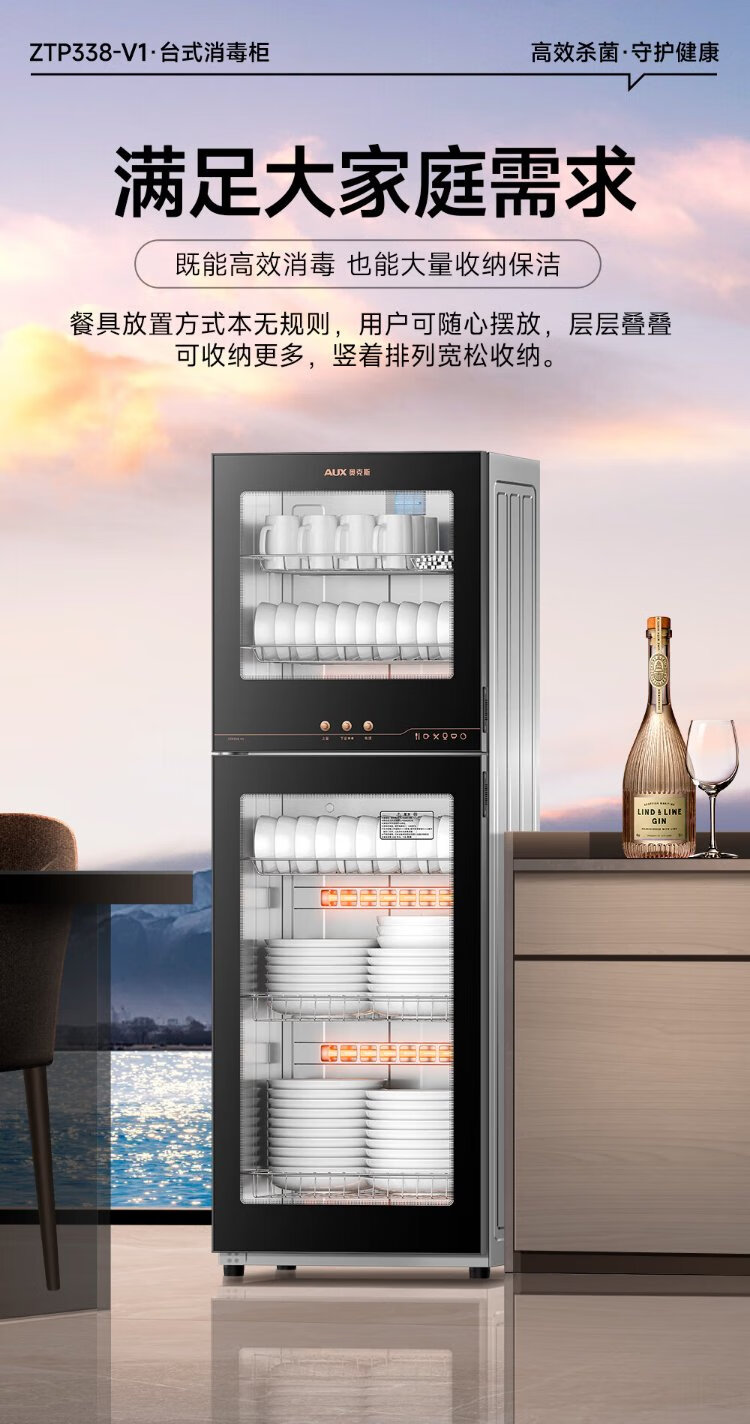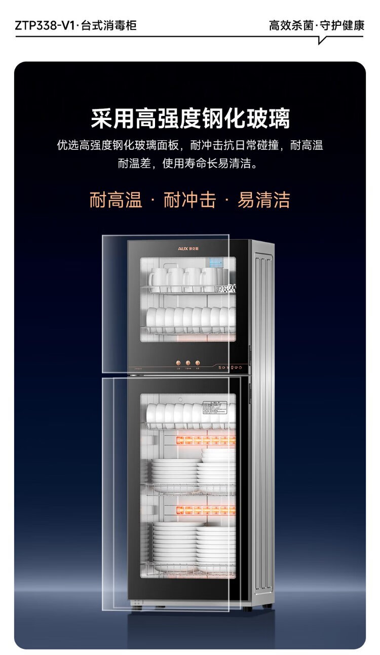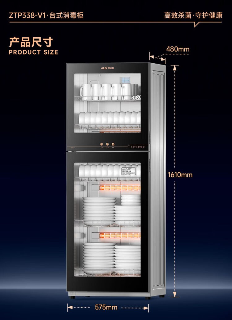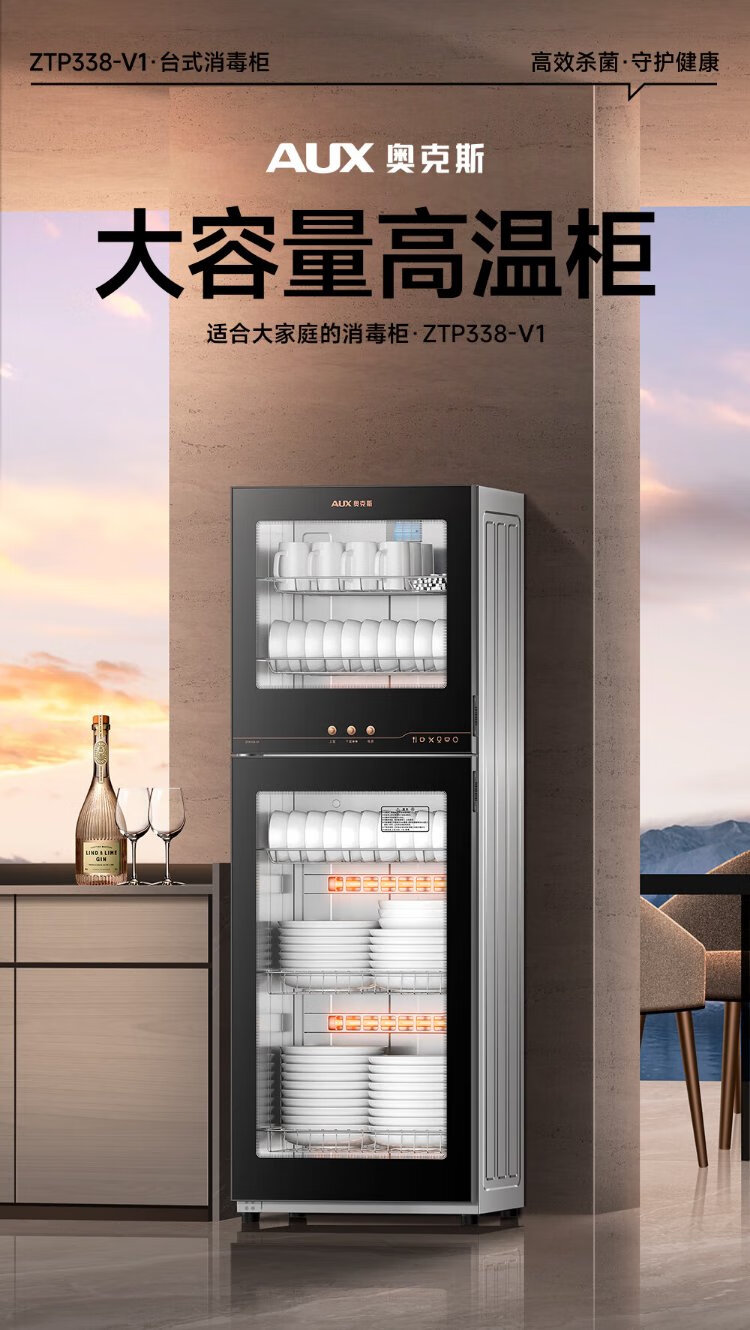 AUX disinfection cabinet household vertical disinfection cupboard two-star drain-free disinfection cabinet tableware large capacity tea cup high temperature disinfection cupboard national subsidy ZTP338-V1