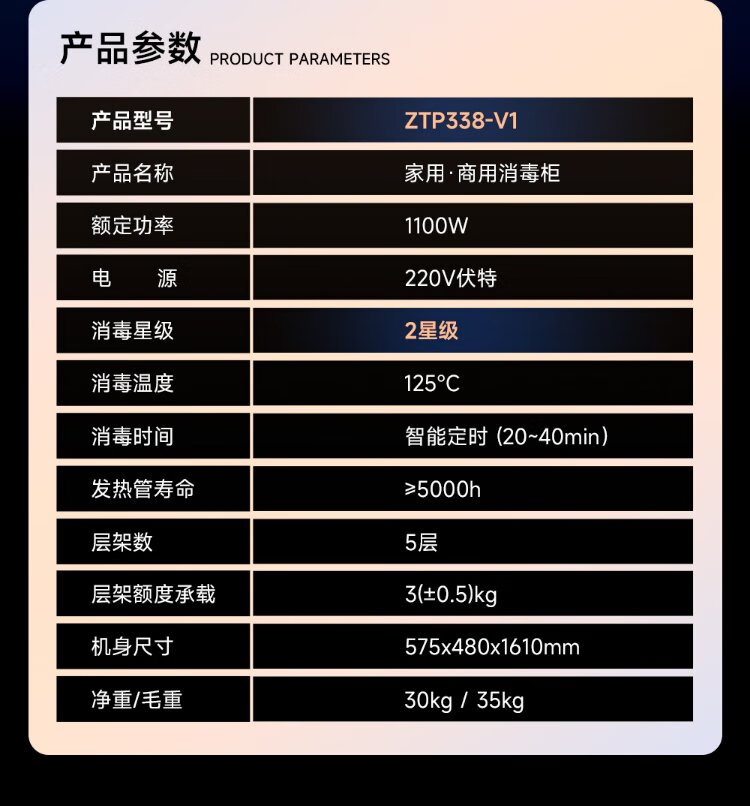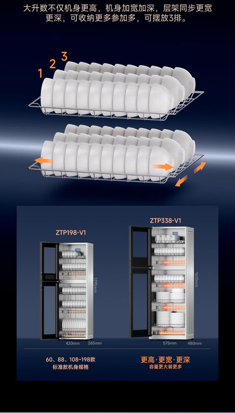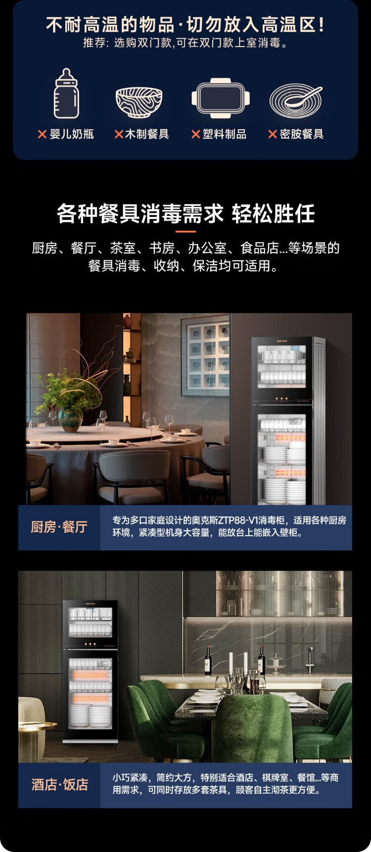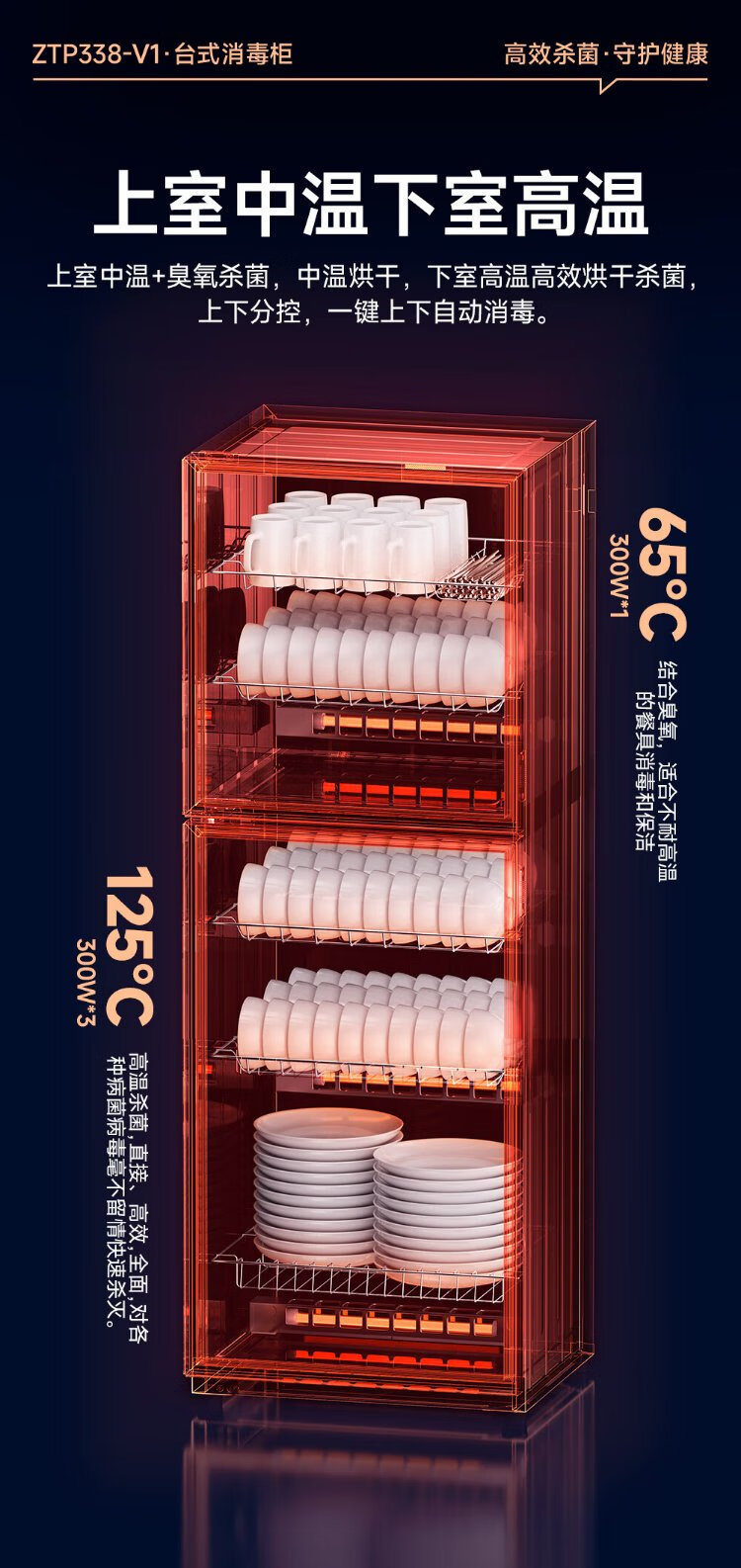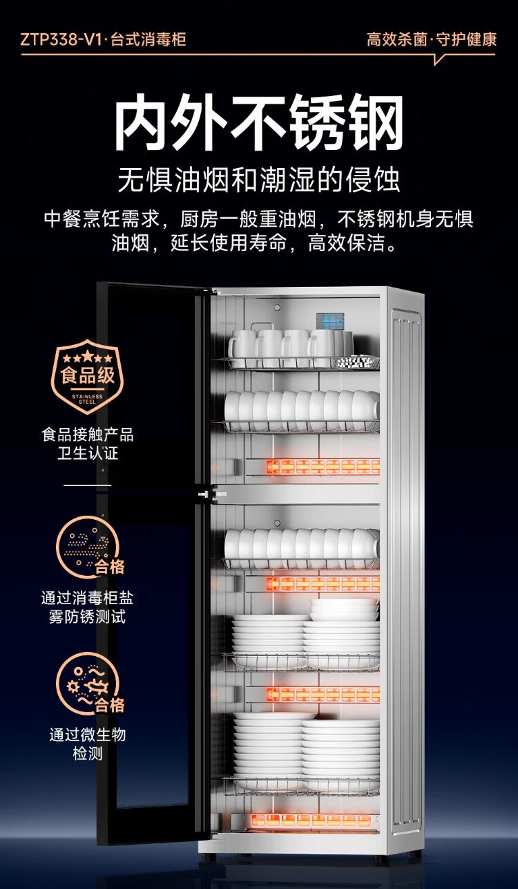 AUX disinfection cabinet household vertical disinfection cupboard two-star drain-free disinfection cabinet tableware large capacity tea cup high temperature disinfection cupboard national subsidy ZTP338-V1