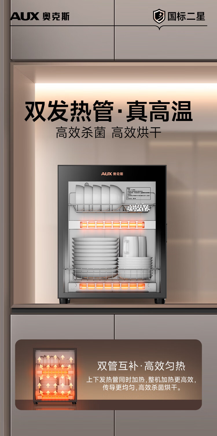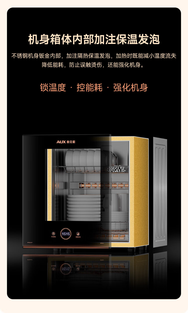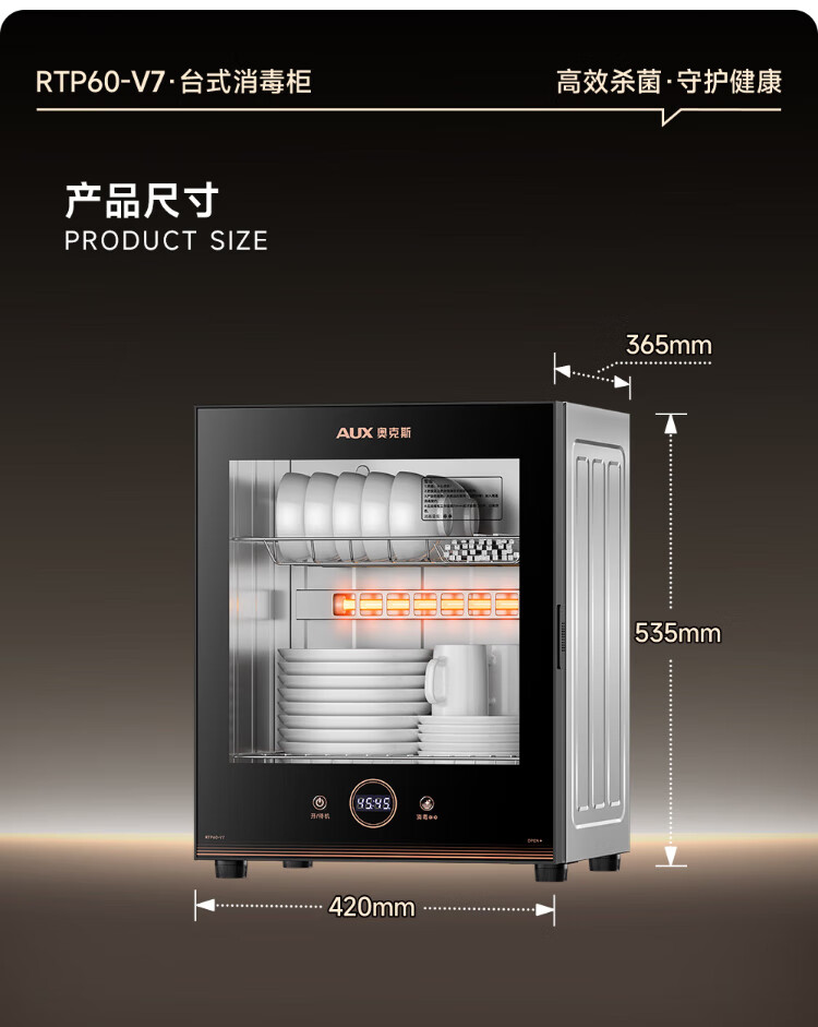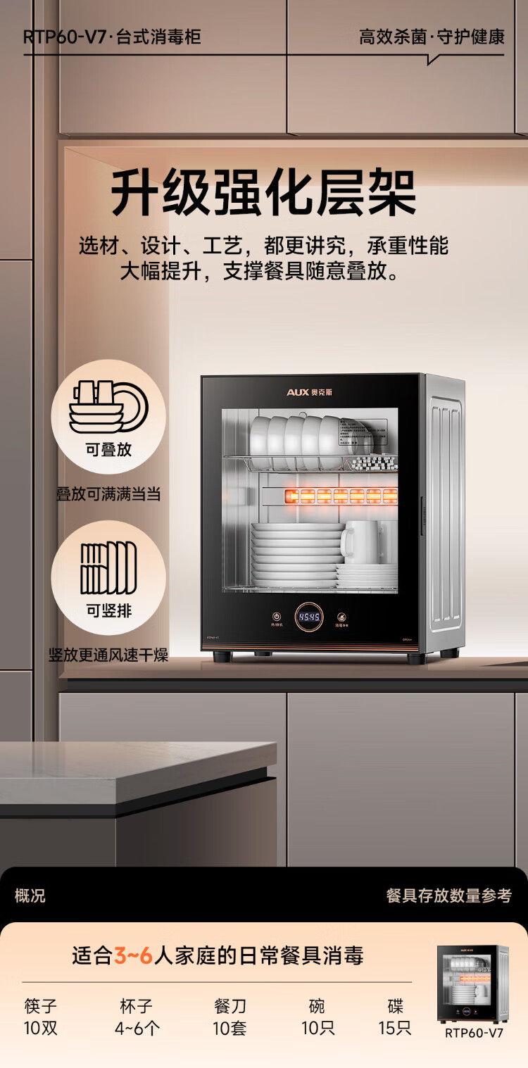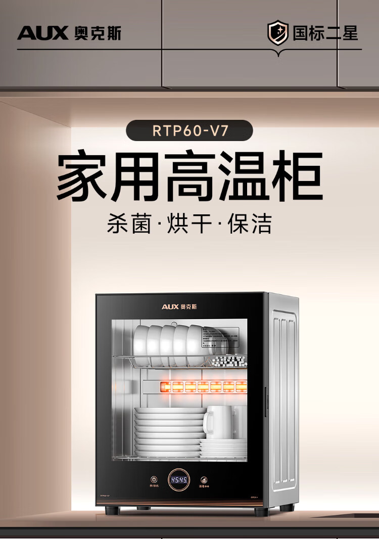 AUX Disinfection Cabinet Household Vertical Disinfection Cupboard Touch Control Two-Star Drain-Free Disinfection Cabinet Kitchen Tableware Teacup High Temperature Disinfection Cupboard National Subsidy RTP60-V7