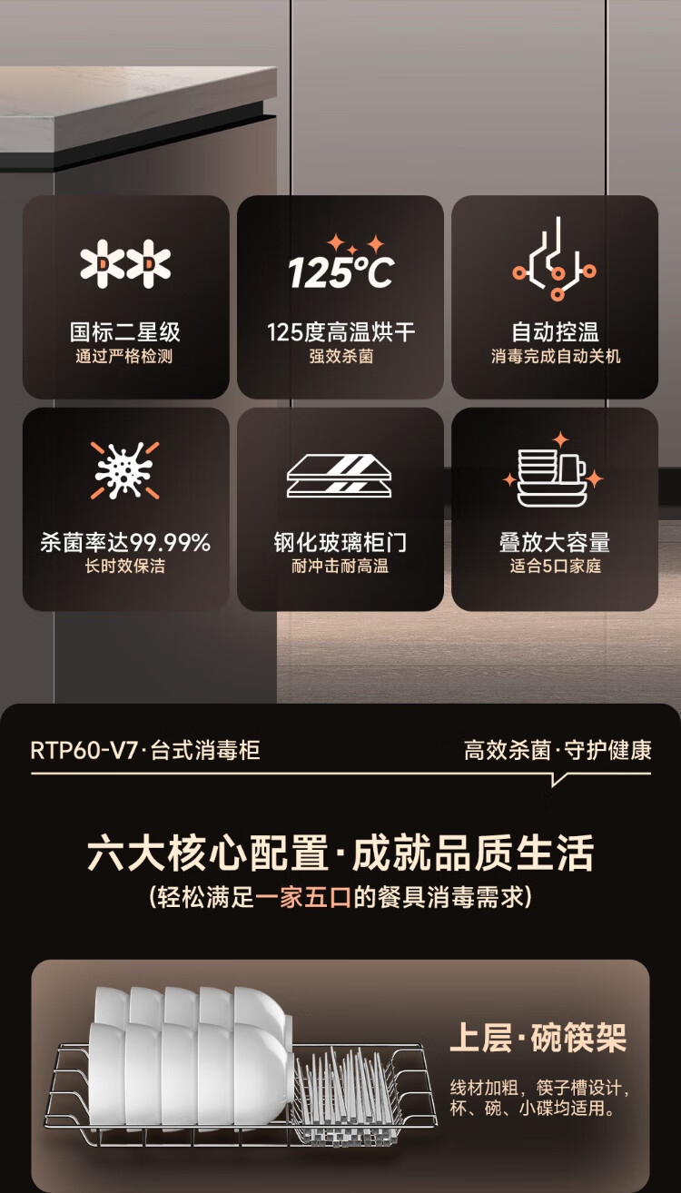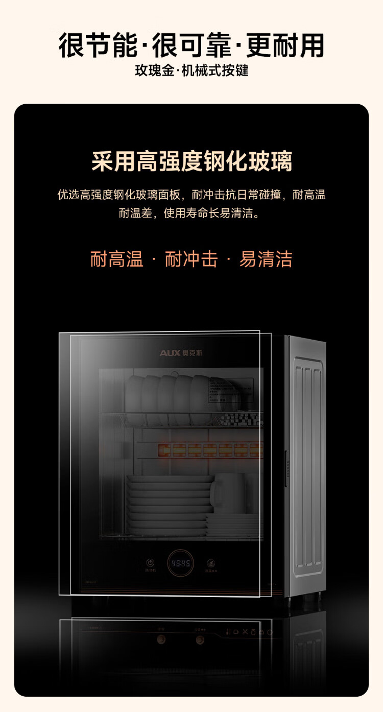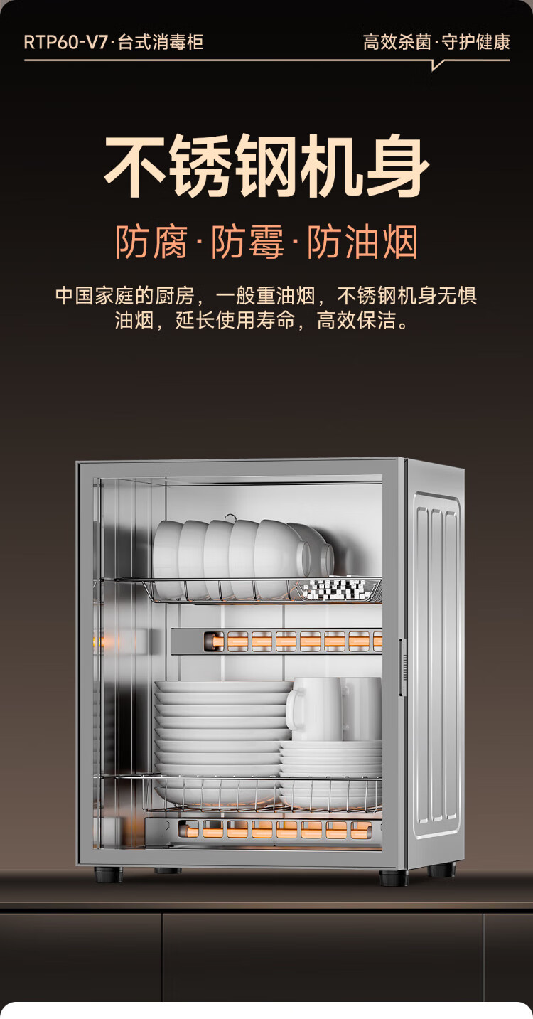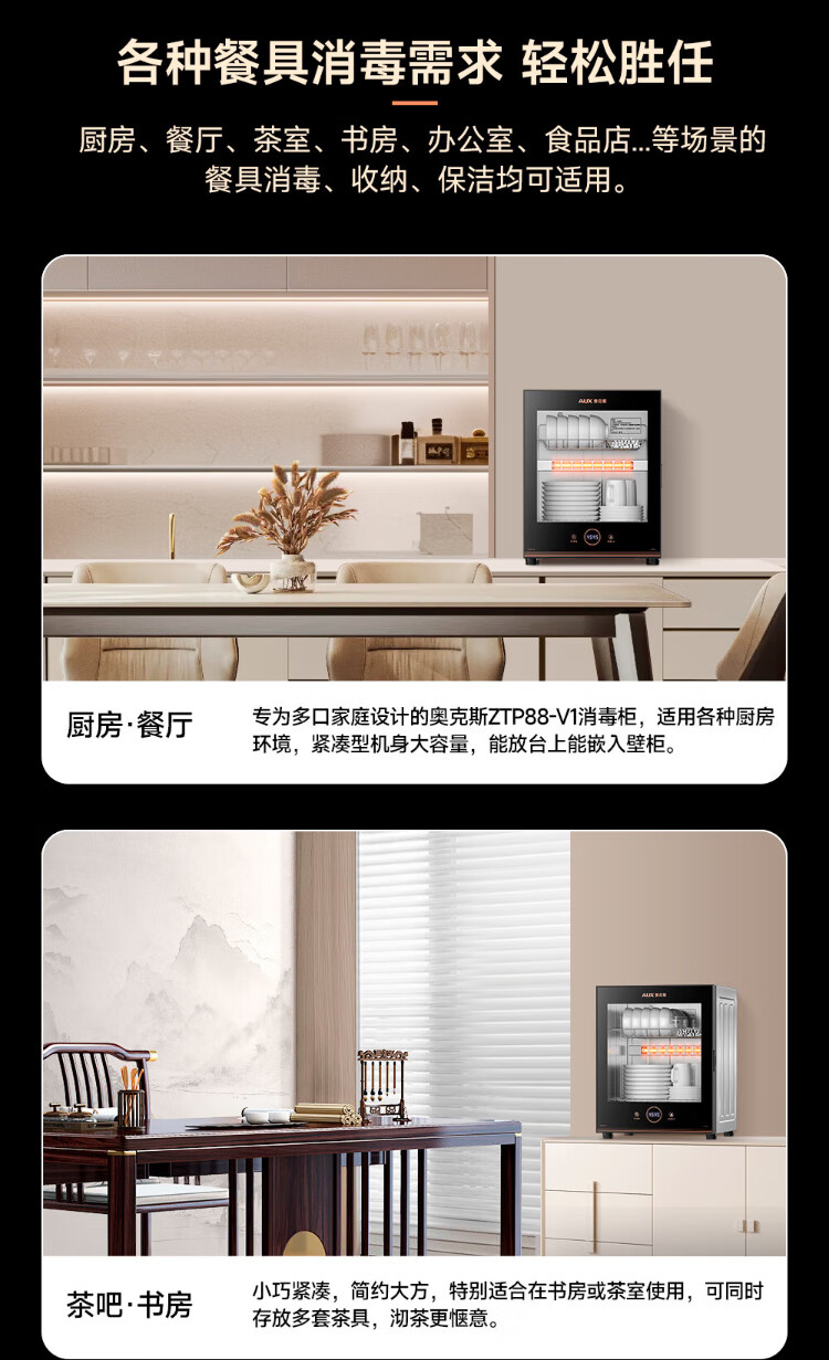 AUX Disinfection Cabinet Household Vertical Disinfection Cupboard Touch Control Two-Star Drain-Free Disinfection Cabinet Kitchen Tableware Teacup High Temperature Disinfection Cupboard National Subsidy RTP60-V7