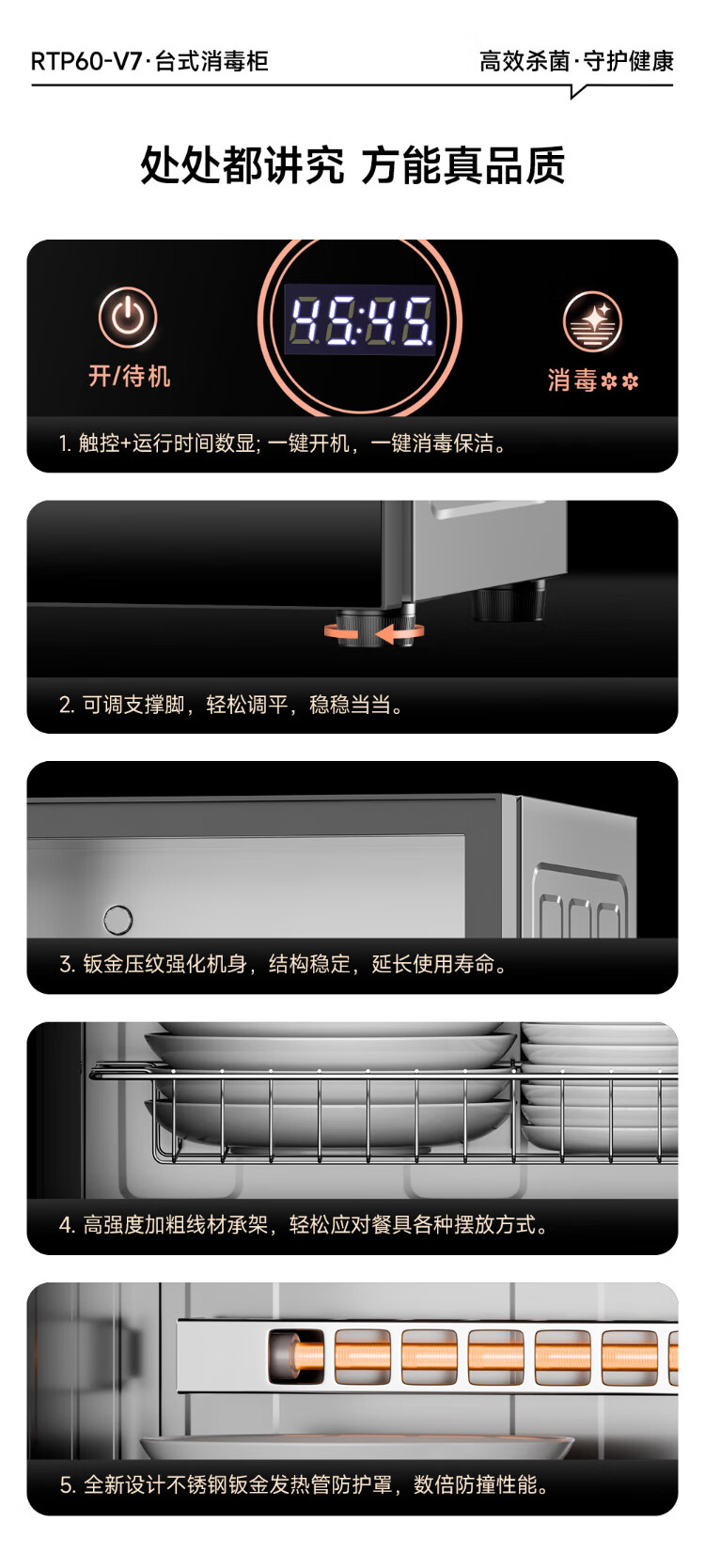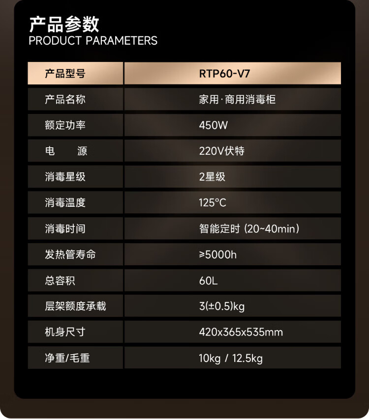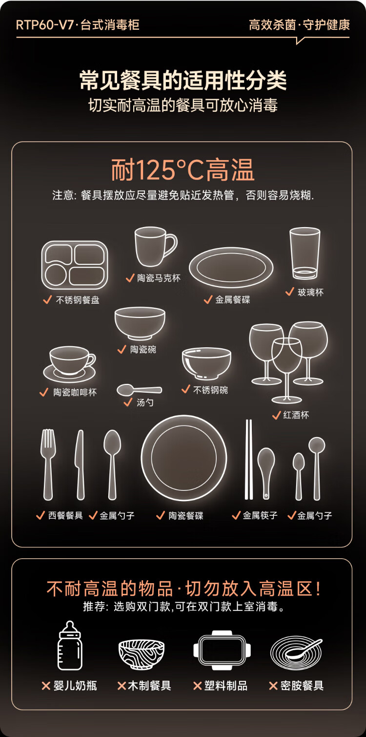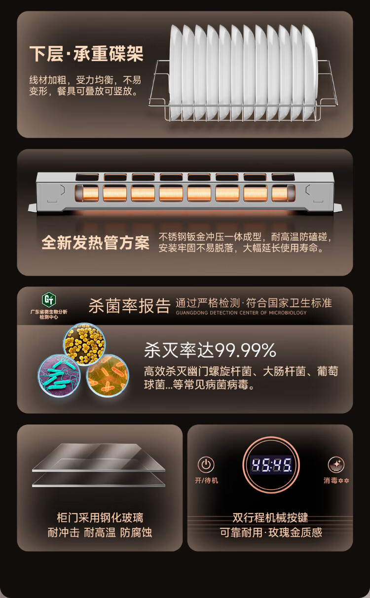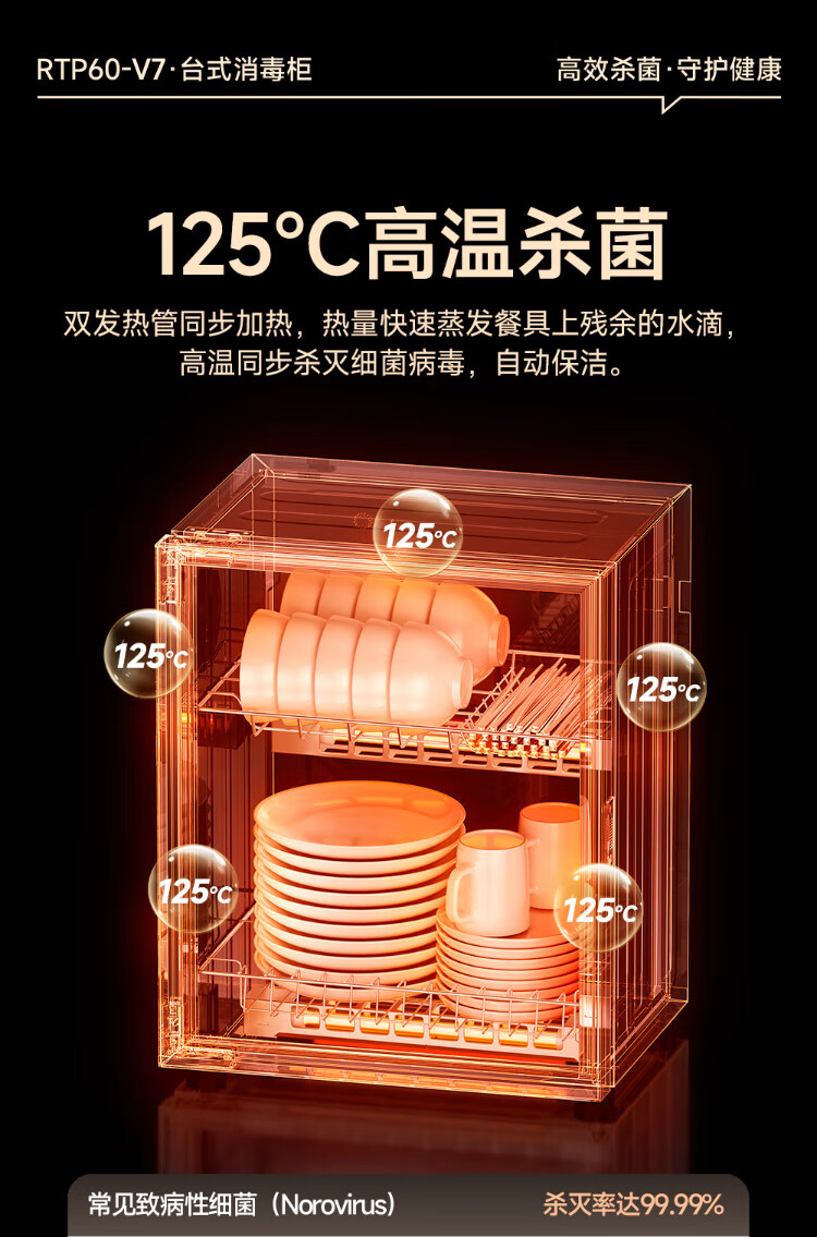 AUX Disinfection Cabinet Household Vertical Disinfection Cupboard Touch Control Two-Star Drain-Free Disinfection Cabinet Kitchen Tableware Teacup High Temperature Disinfection Cupboard National Subsidy RTP60-V7