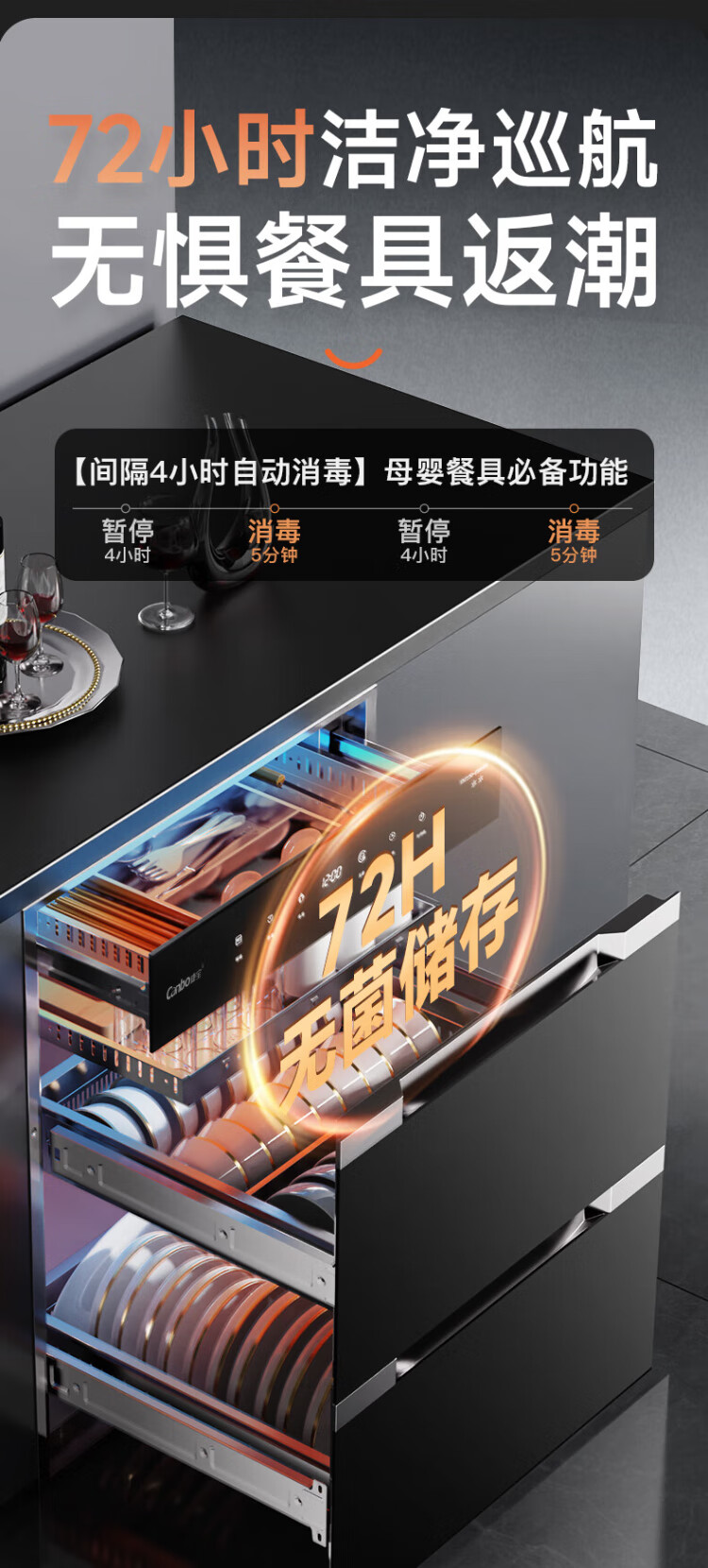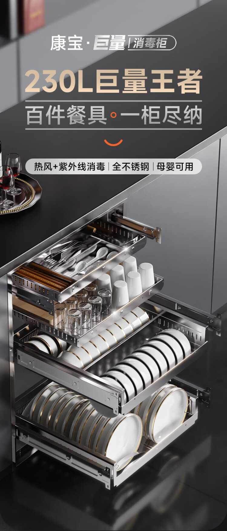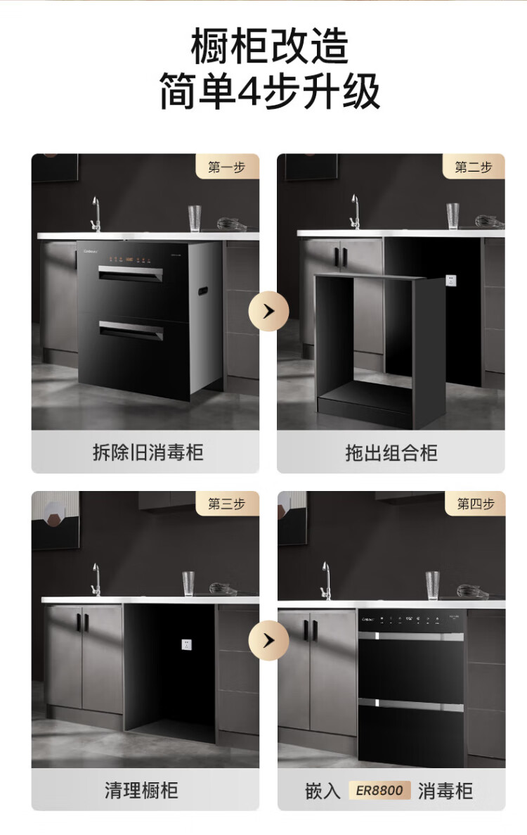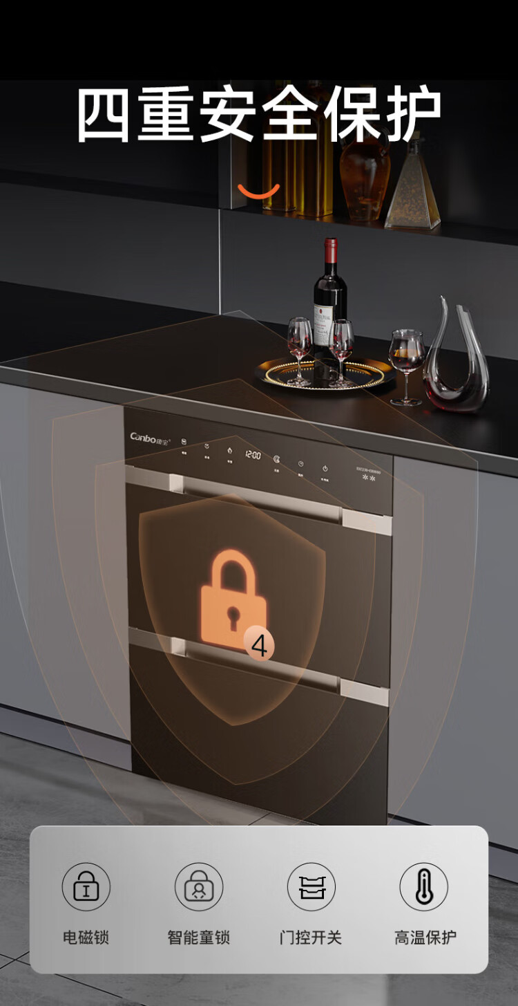 Canbo 230 Series Massive Disinfection Cabinet Embedded Large Capacity Four-Layer Two-Star Stainless Steel Household Bottle Hot Air Disinfection Cupboard National Subsidy XDZ230-ER8800