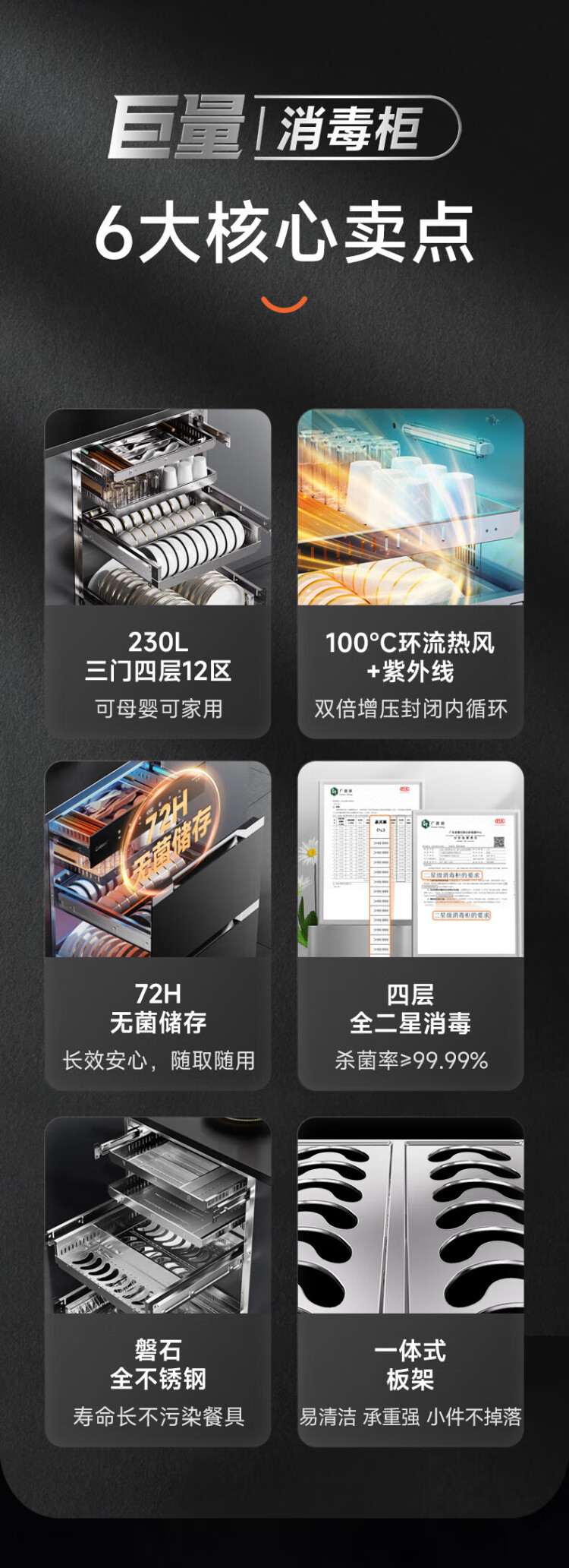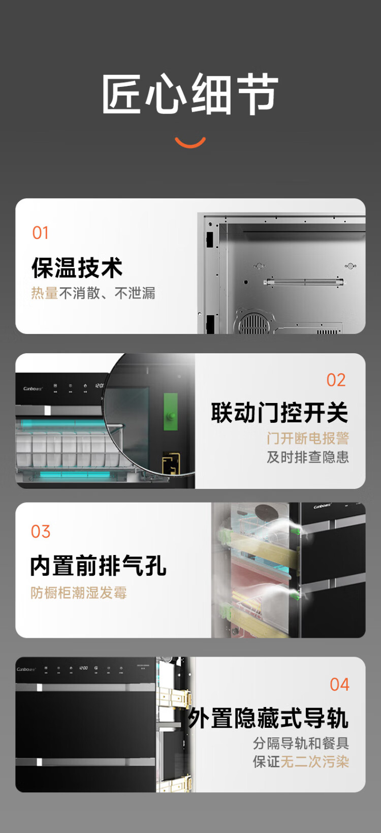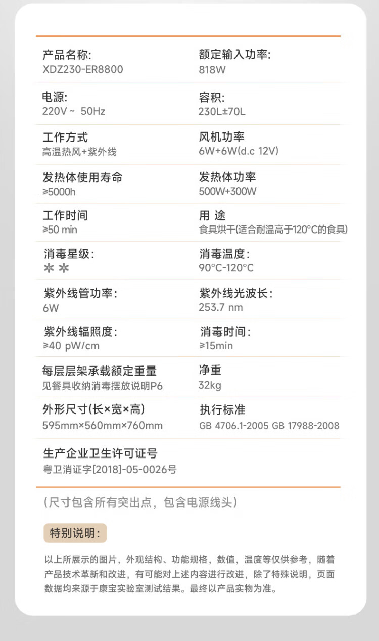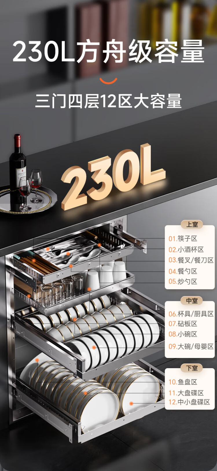 Canbo 230 Series Massive Disinfection Cabinet Embedded Large Capacity Four-Layer Two-Star Stainless Steel Household Bottle Hot Air Disinfection Cupboard National Subsidy XDZ230-ER8800