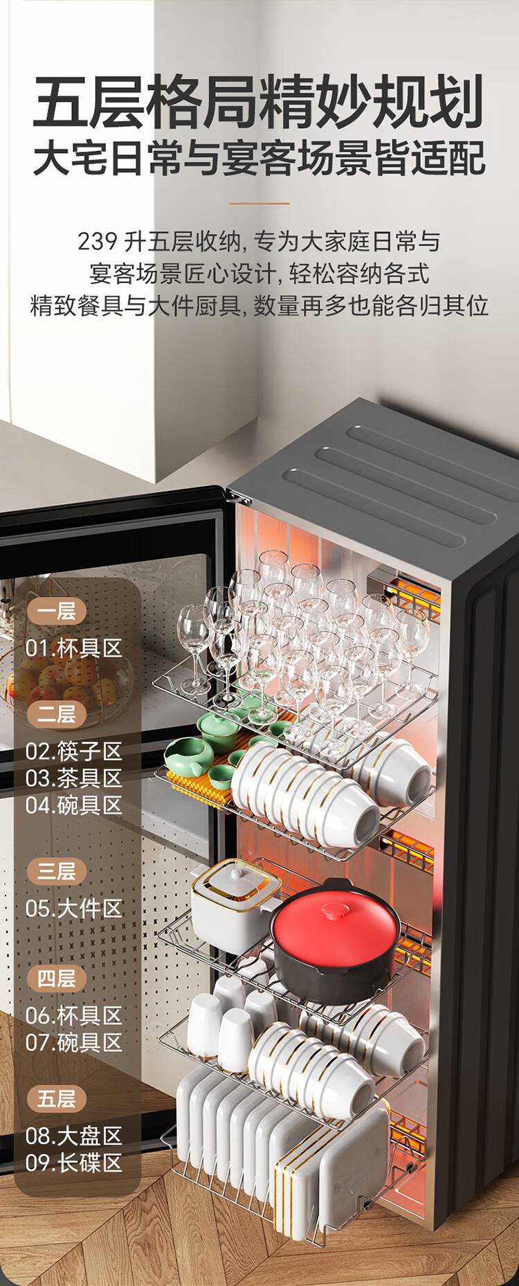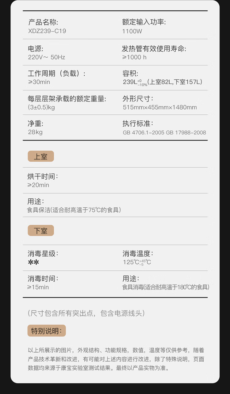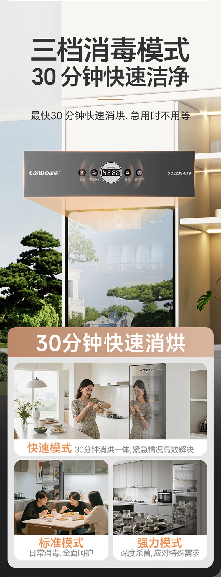 Canbo Disinfection Cabinet Household Vertical Disinfection Cupboard Large Capacity Commercial Tableware Storage Disinfection Cabinet Double Door High Temperature Two-Star Cupboard National Subsidy XDZ239-C19