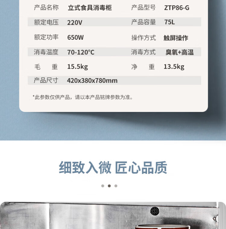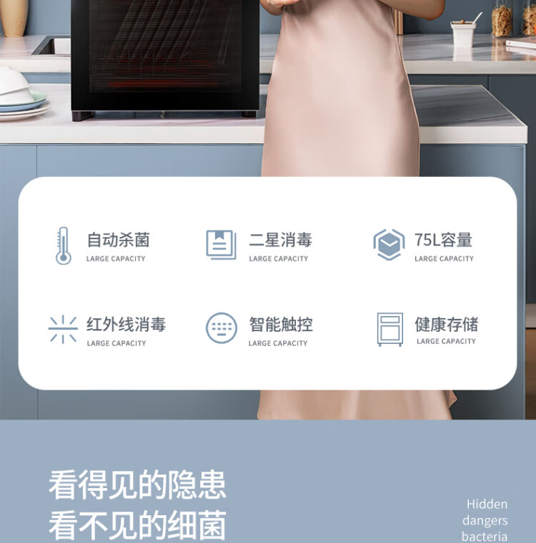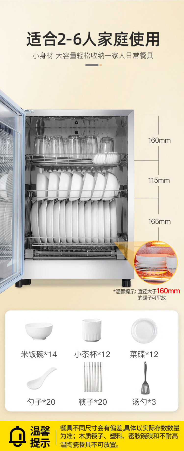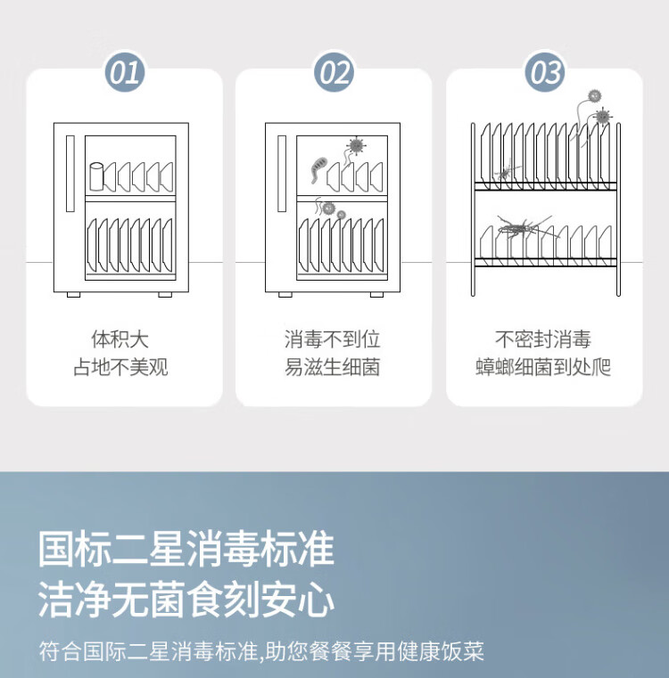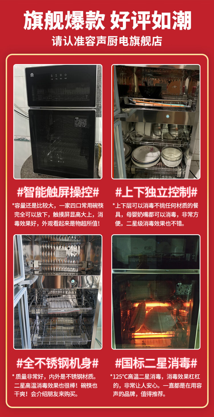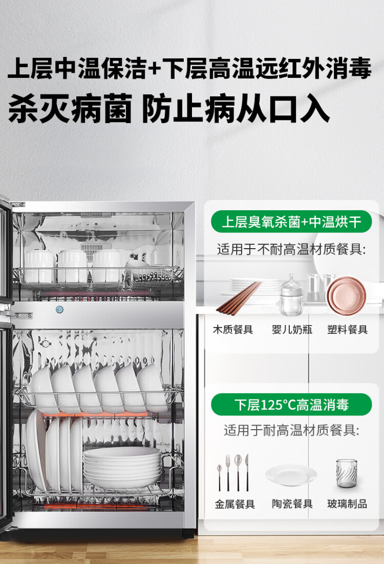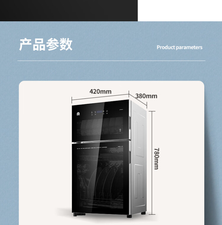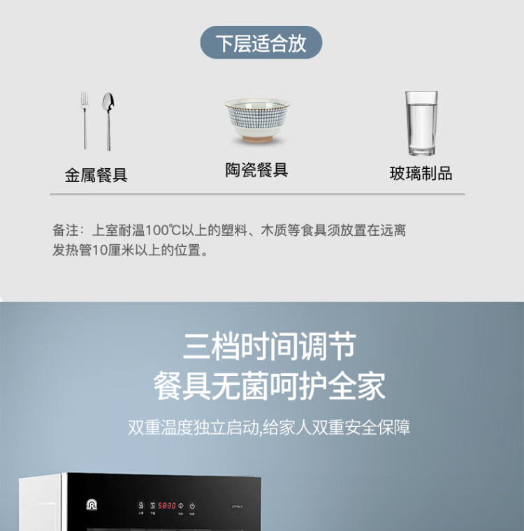 Rongsheng Disinfection Cabinet Household Vertical Disinfection Bowl Counter Type Double Door Stainless Steel High Temperature Tableware 230 Series National Subsidy Two-Star 50L Double-layer Height 550mm/50-230