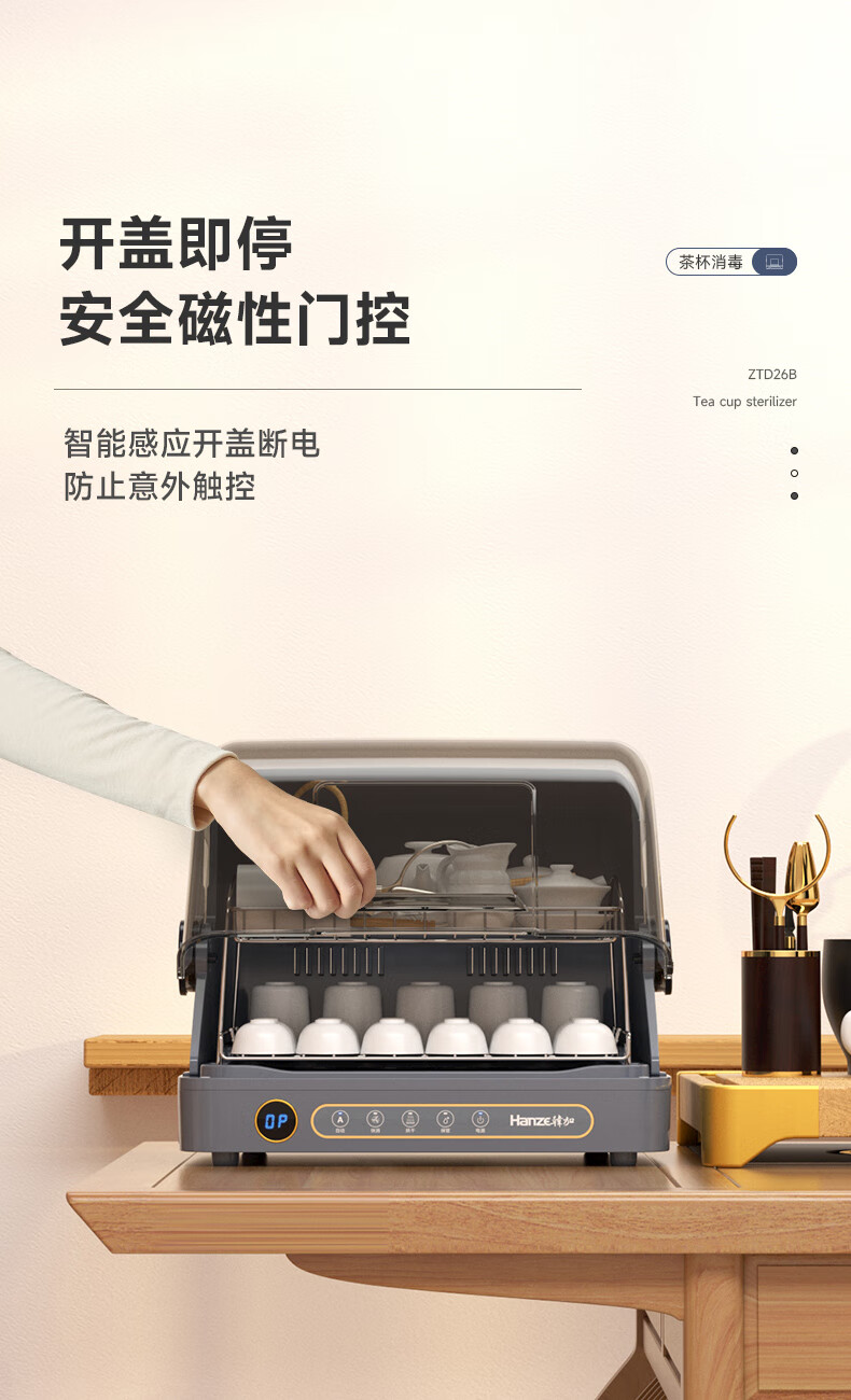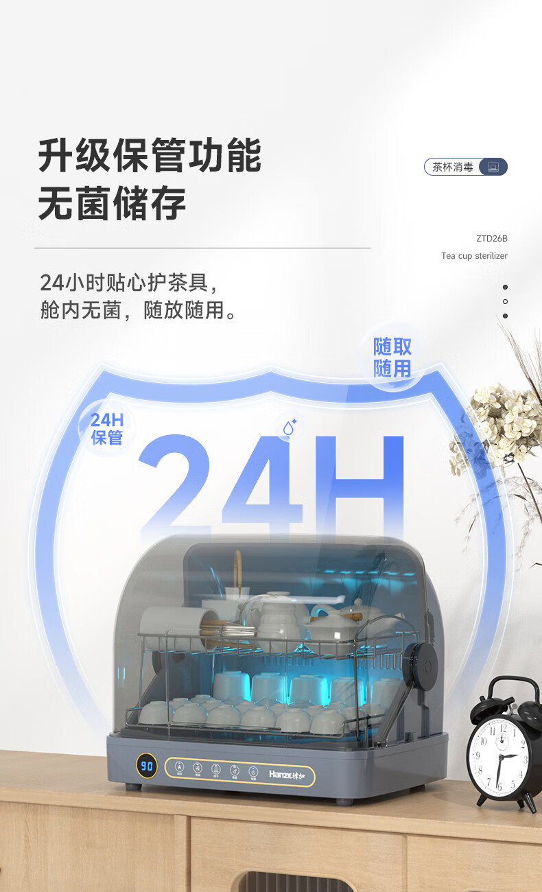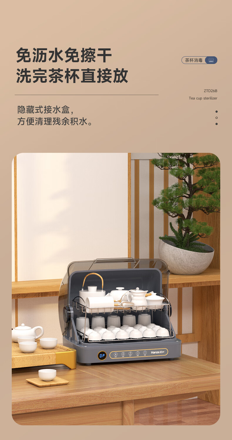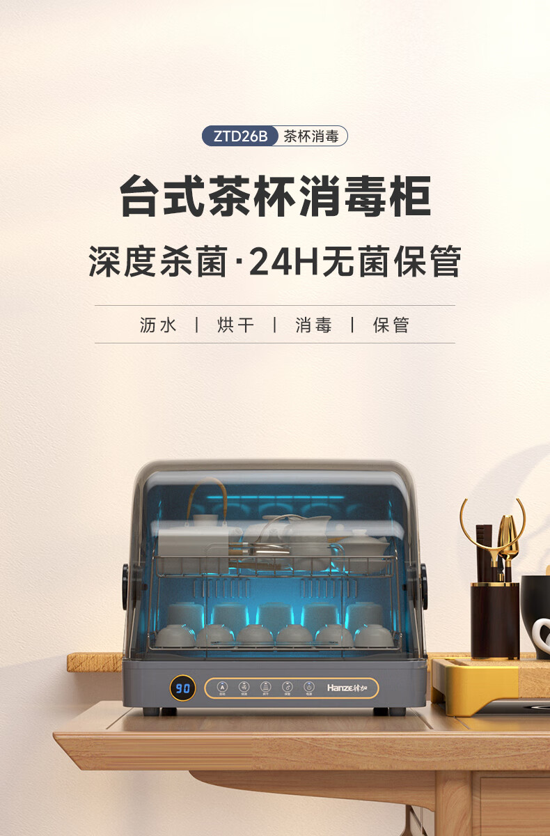 Hanze Hanze tea cup tea set disinfection cabinet household small desktop tea cup disinfection storage cabinet office desktop disinfection tea cup cabinet kung fu tea cup disinfection and drying one star 26L best-selling model (UV sterilization + drying + sterile storage)
