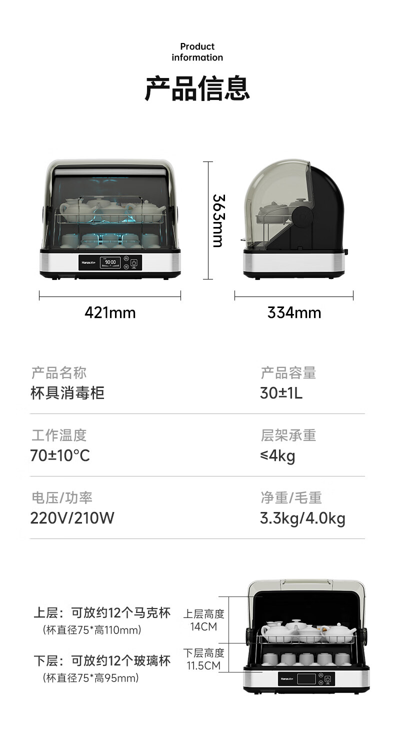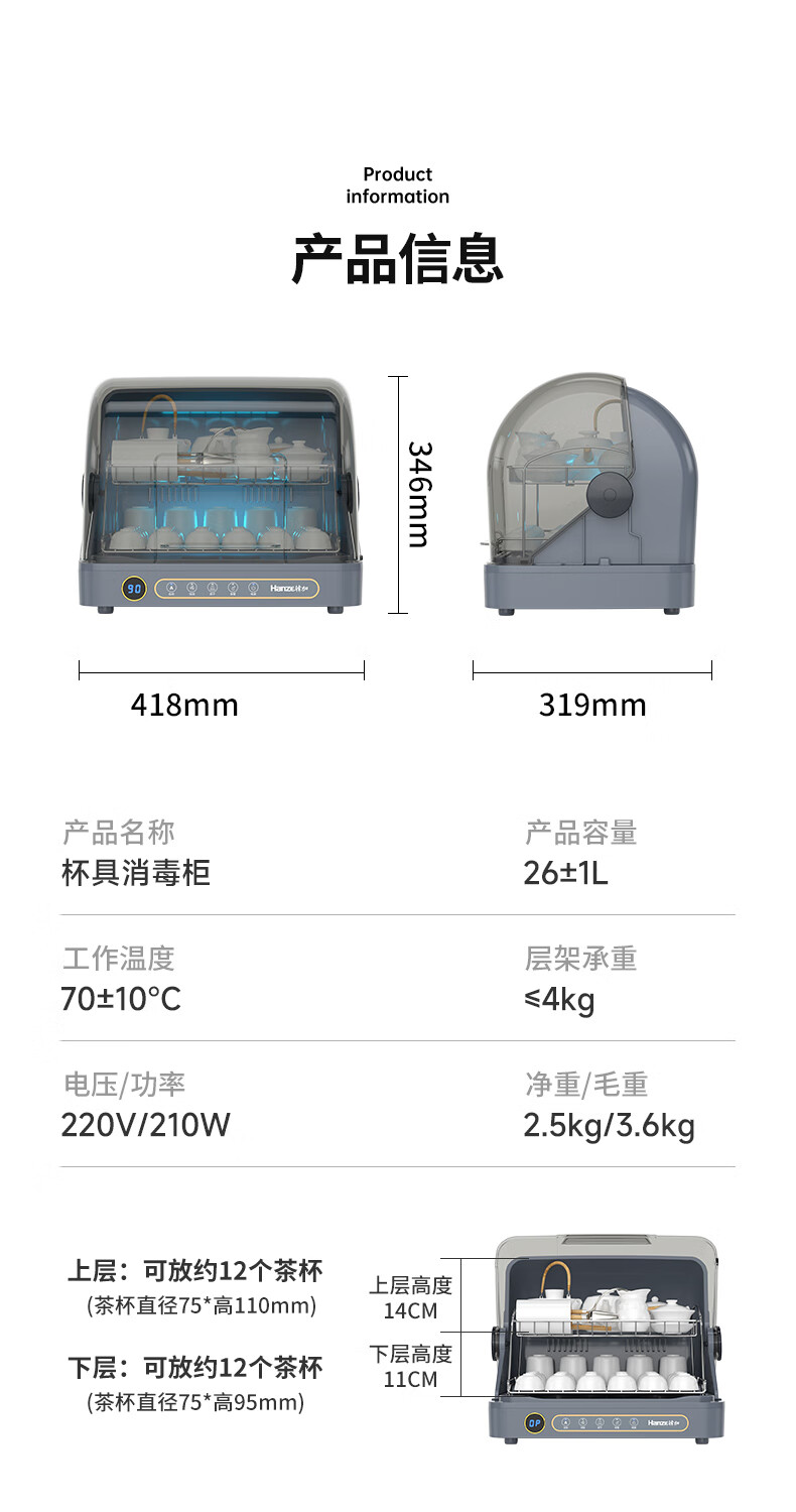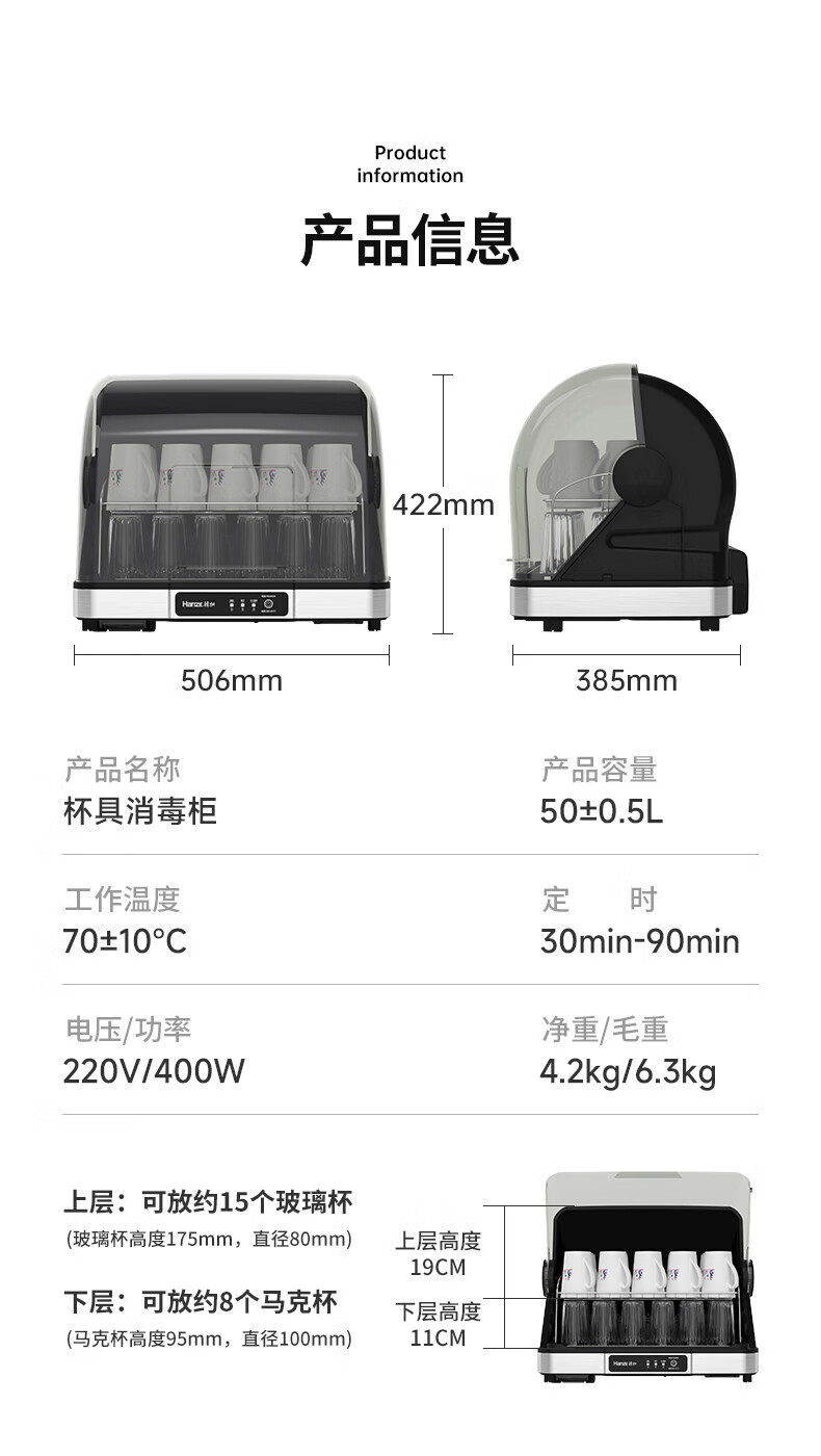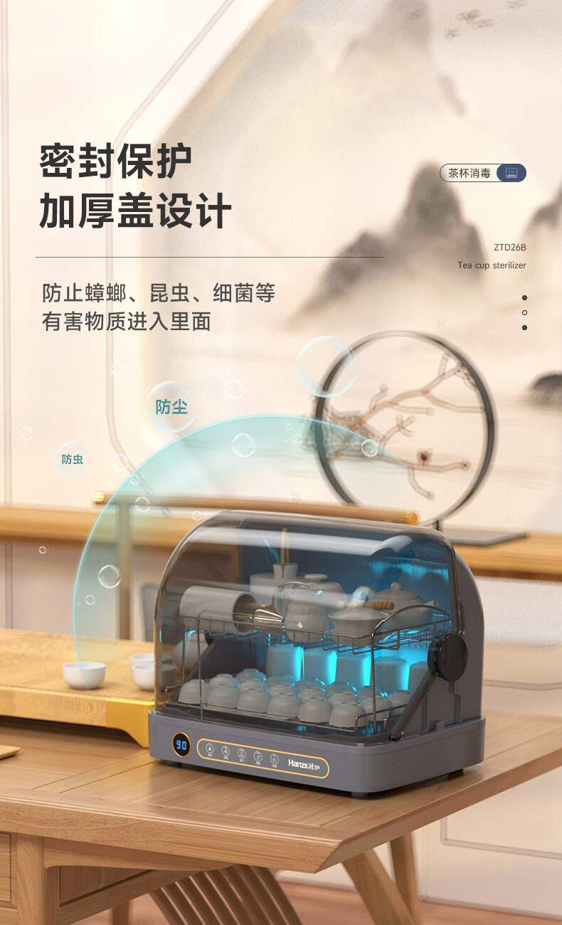 Hanze Hanze tea cup tea set disinfection cabinet household small desktop tea cup disinfection storage cabinet office desktop disinfection tea cup cabinet kung fu tea cup disinfection and drying one star 26L best-selling model (UV sterilization + drying + sterile storage)