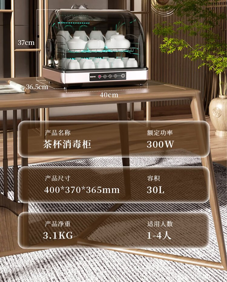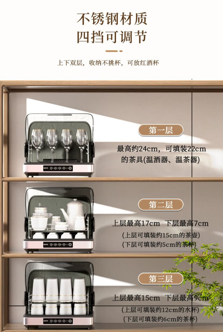 Graylaws tea cup sterilization cabinet UV small desktop tea set cup sterilization 304 stainless steel office conference cup water cup sterilization cabinet 40L best-selling model + shelf height adjustable