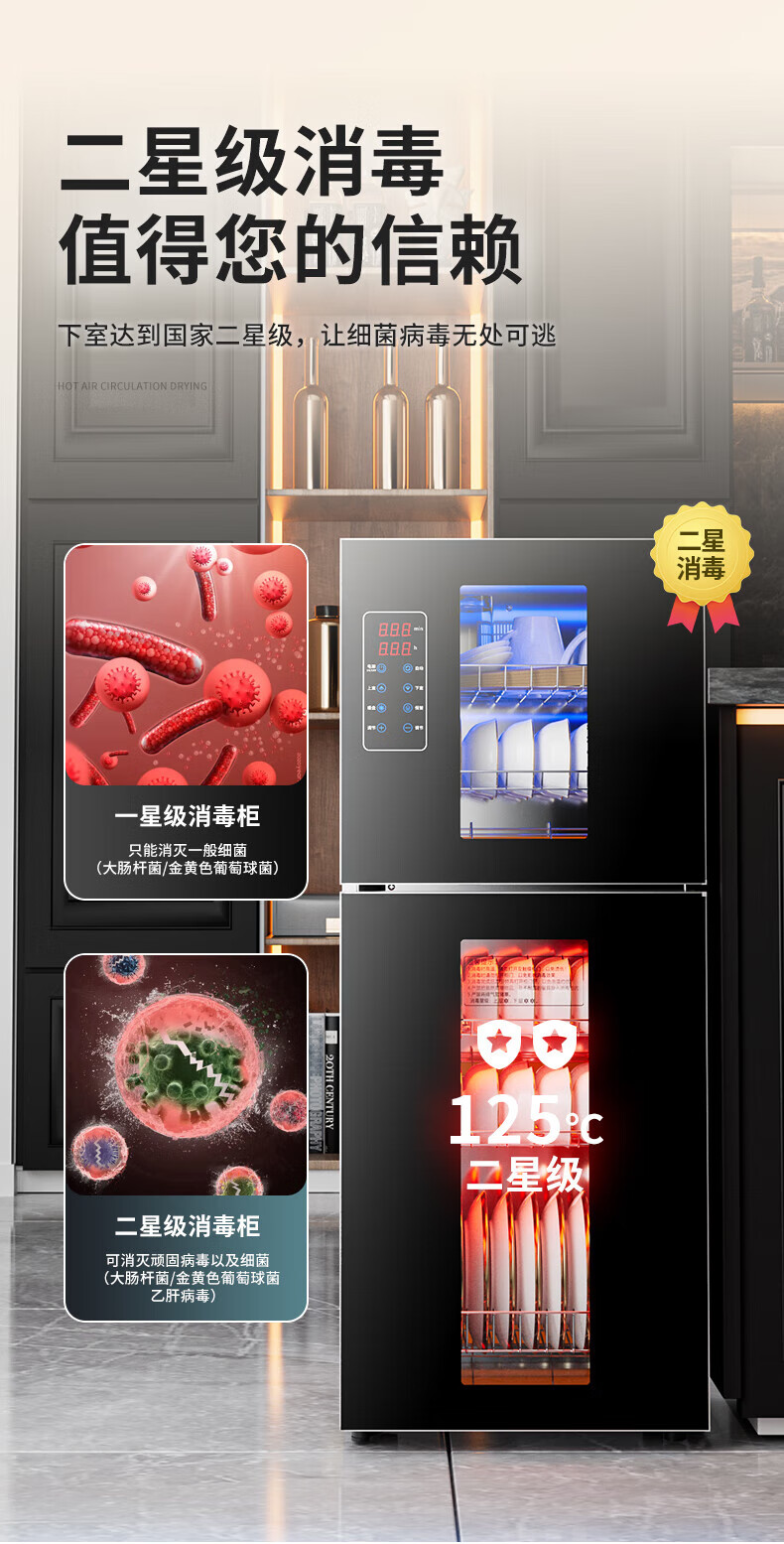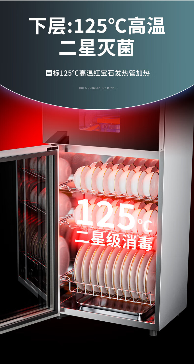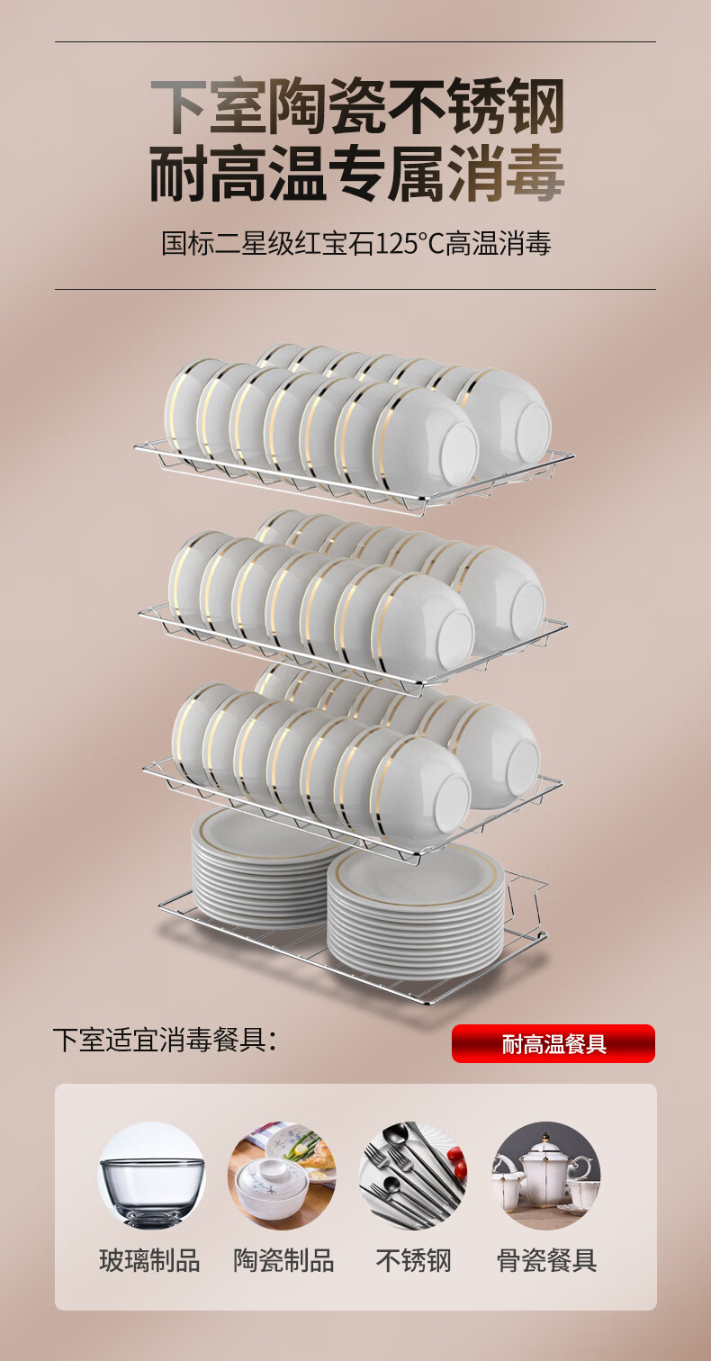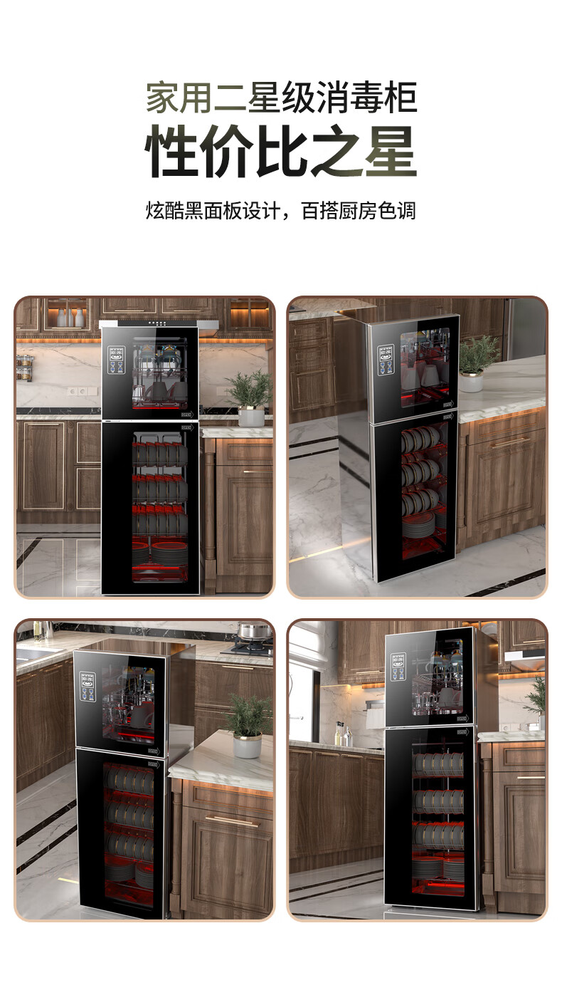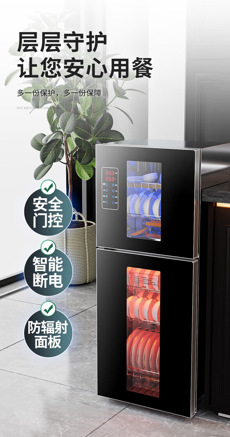 HP Good Wife Disinfection Cabinet Home Kitchen Small Vertical Commercial Disinfection Cupboard Tableware Tableware Teacup High Temperature Disinfection Cupboard One Star 138L Black Button Negative Ion Disinfection + 5-Layer Bowl Rack