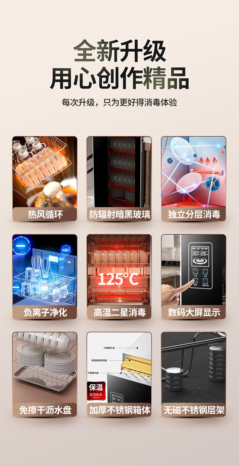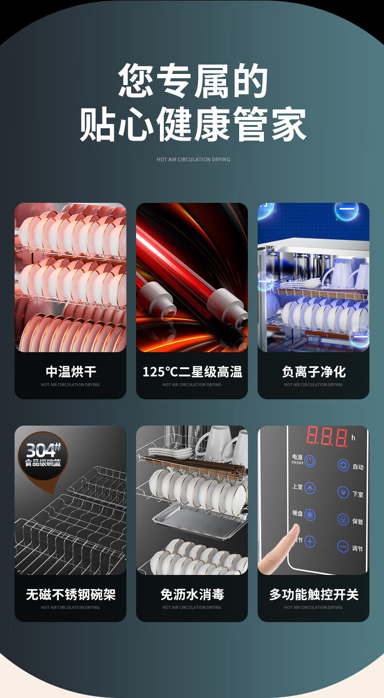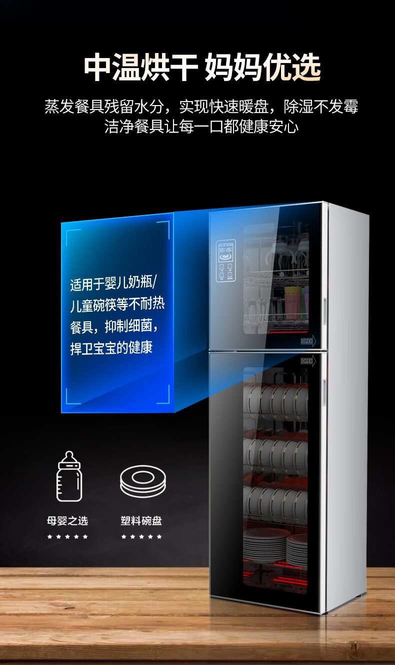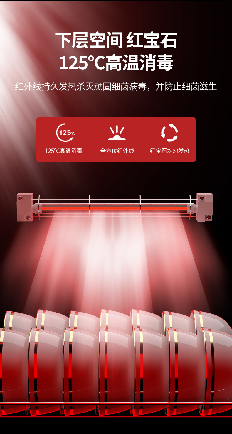 HP Good Wife Disinfection Cabinet Home Kitchen Small Vertical Commercial Disinfection Cupboard Tableware Tableware Teacup High Temperature Disinfection Cupboard One Star 138L Black Button Negative Ion Disinfection + 5-Layer Bowl Rack