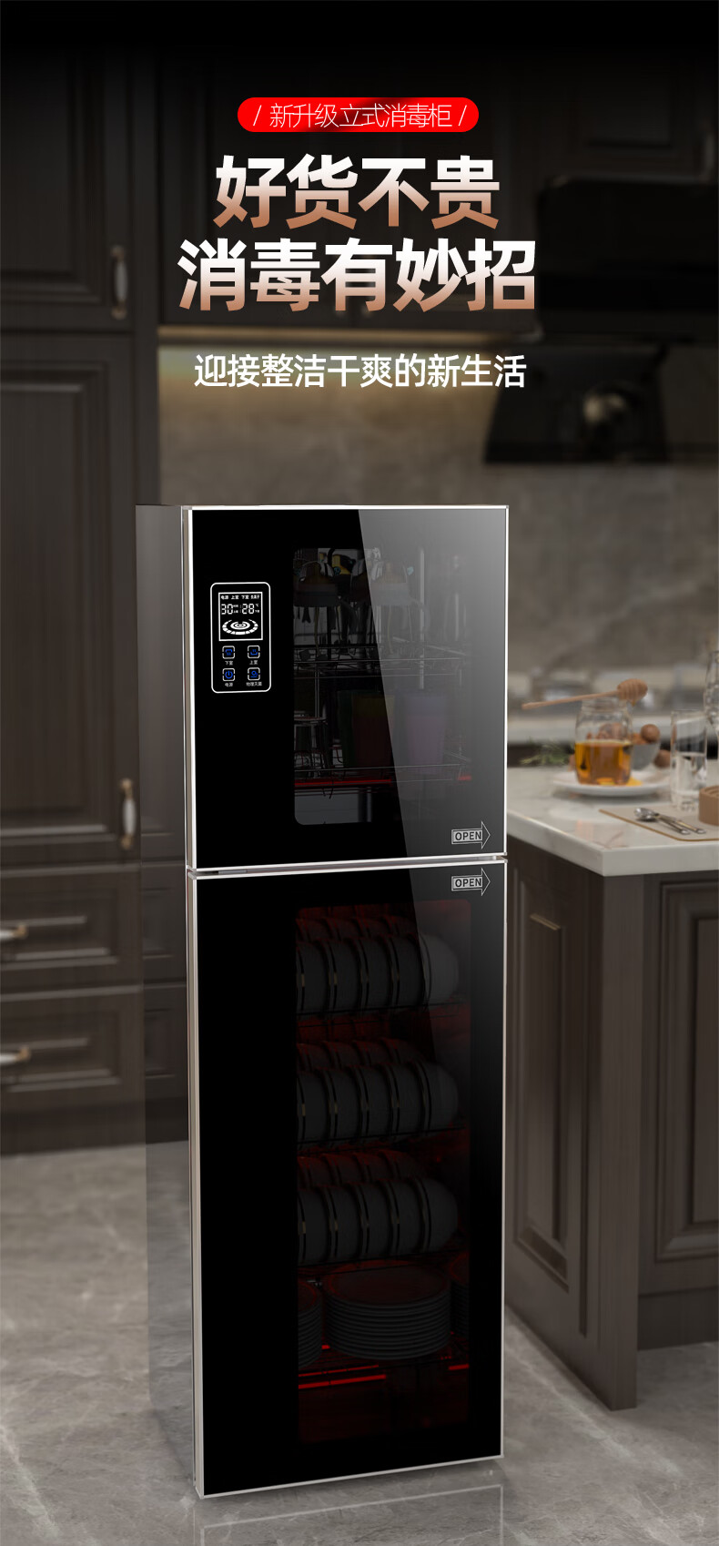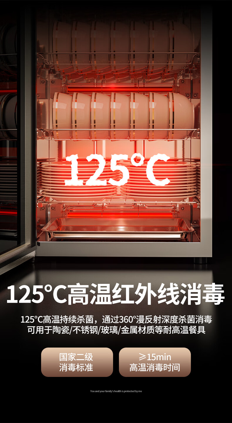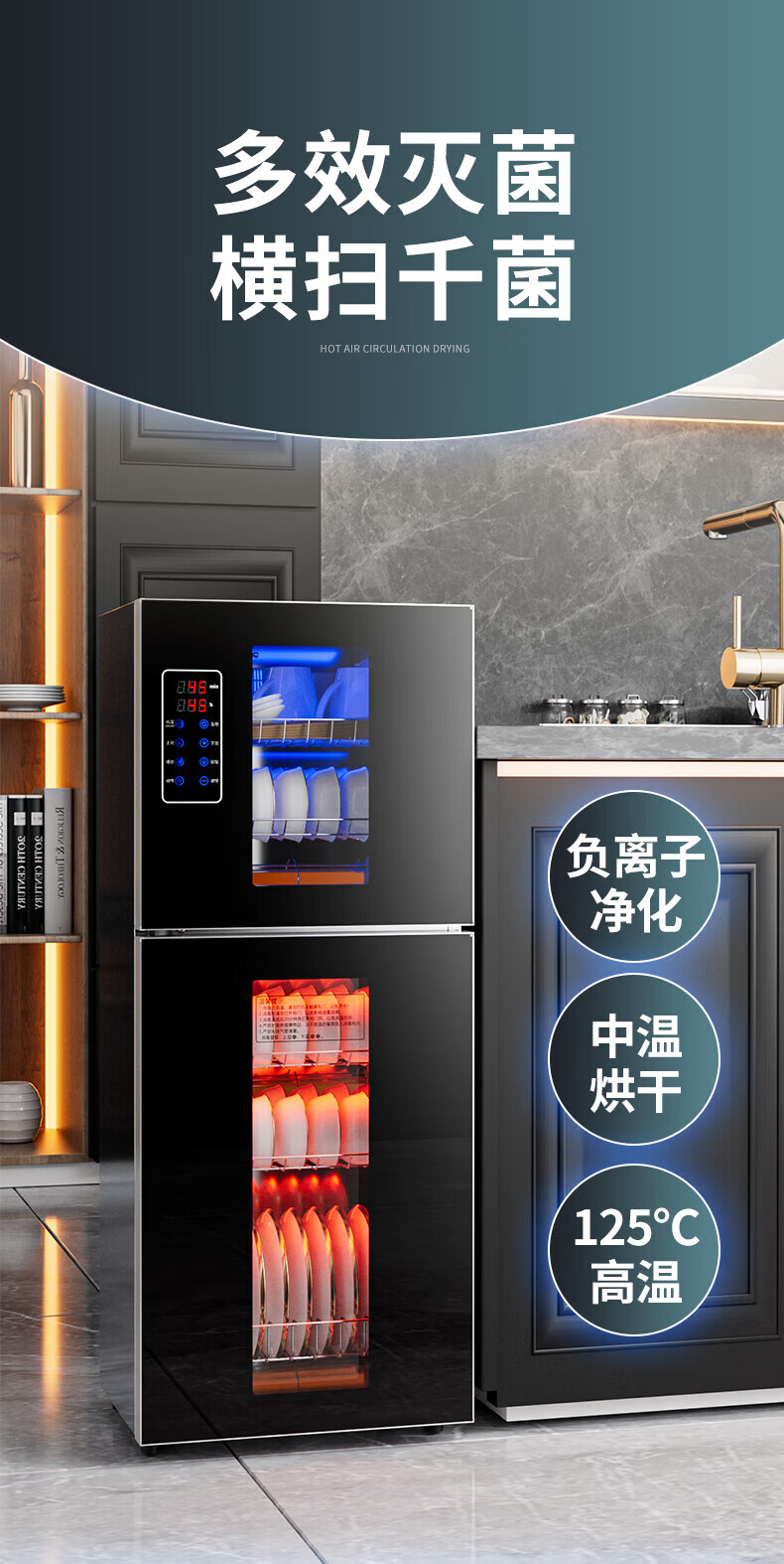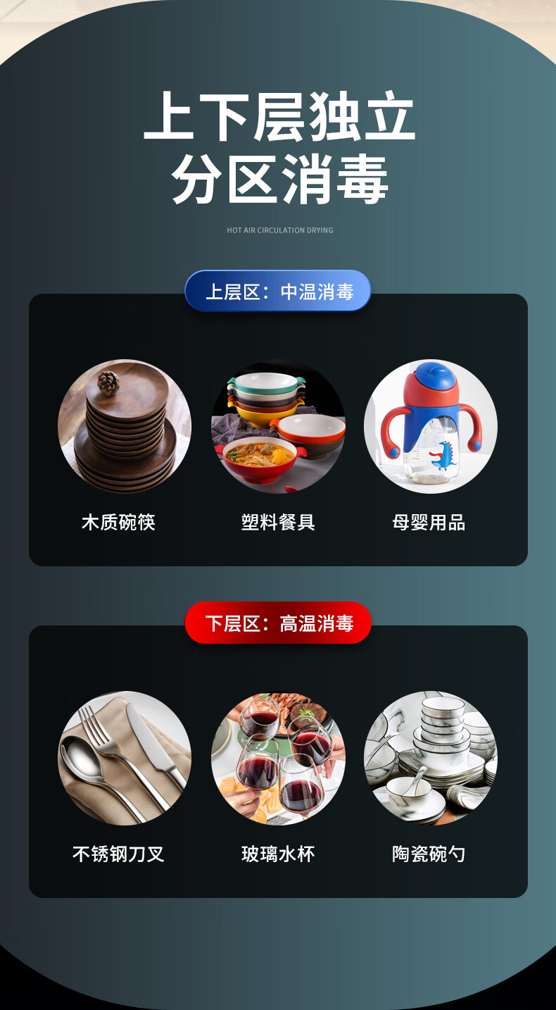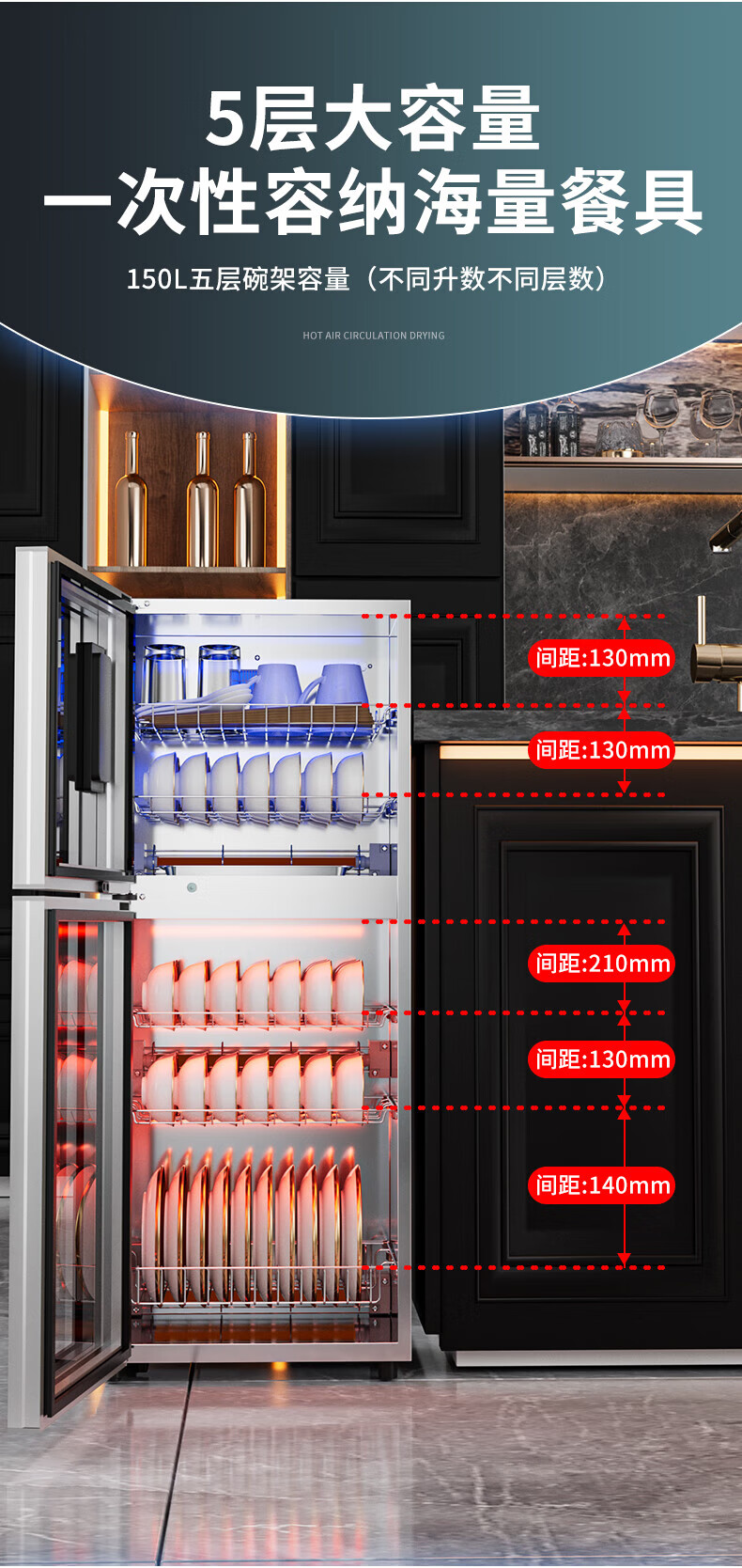 HP Good Wife Disinfection Cabinet Home Kitchen Small Vertical Commercial Disinfection Cupboard Tableware Tableware Teacup High Temperature Disinfection Cupboard One Star 138L Black Button Negative Ion Disinfection + 5-Layer Bowl Rack