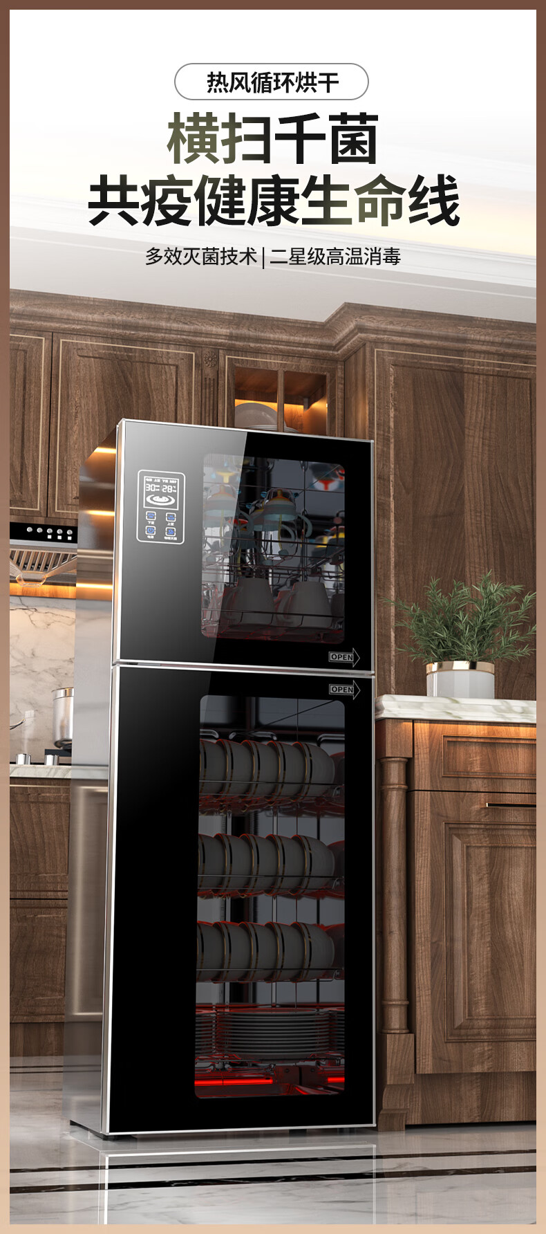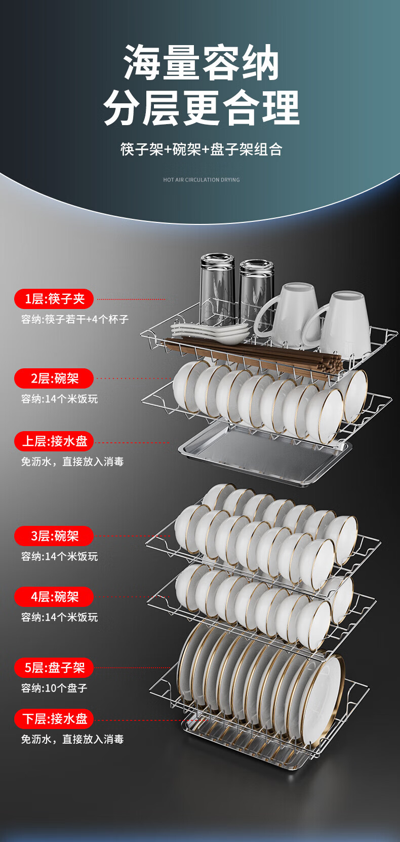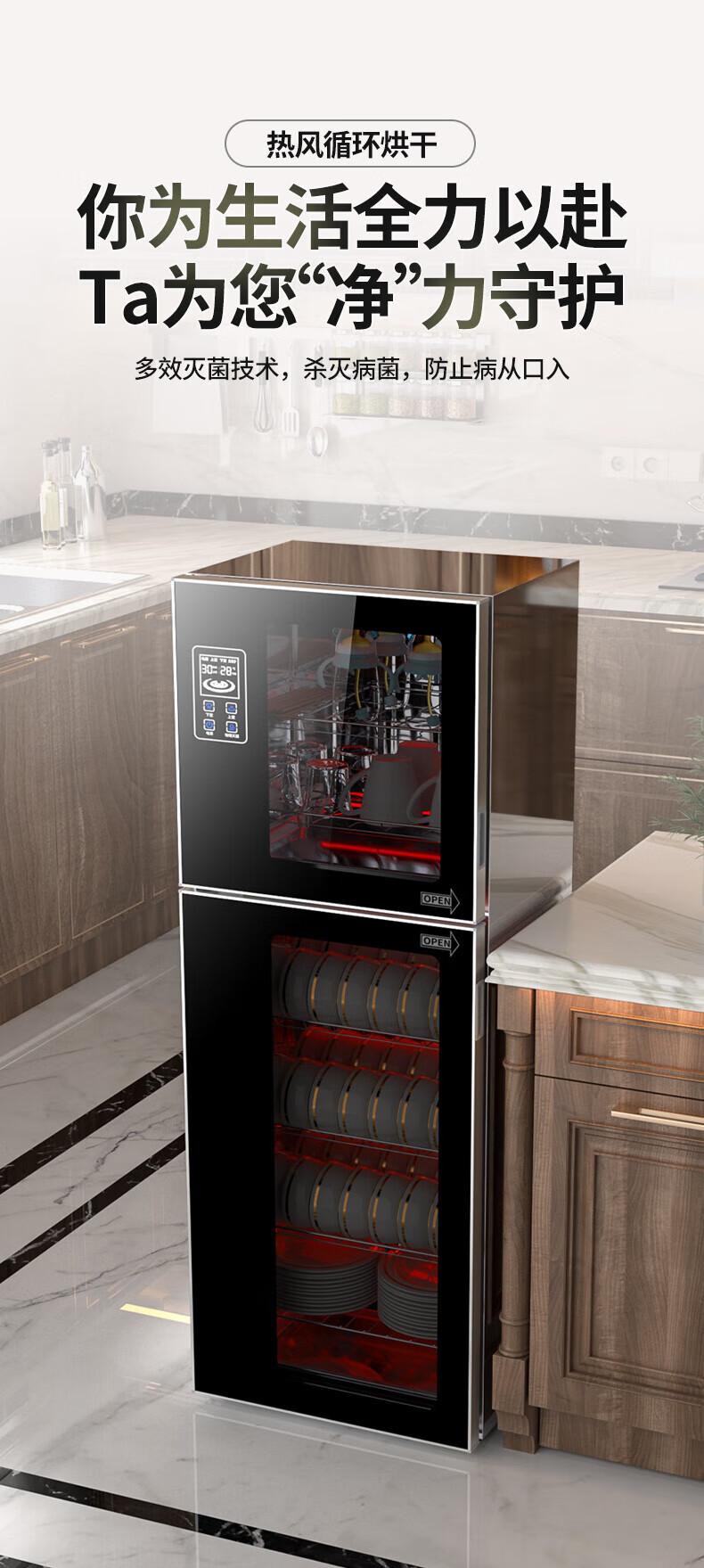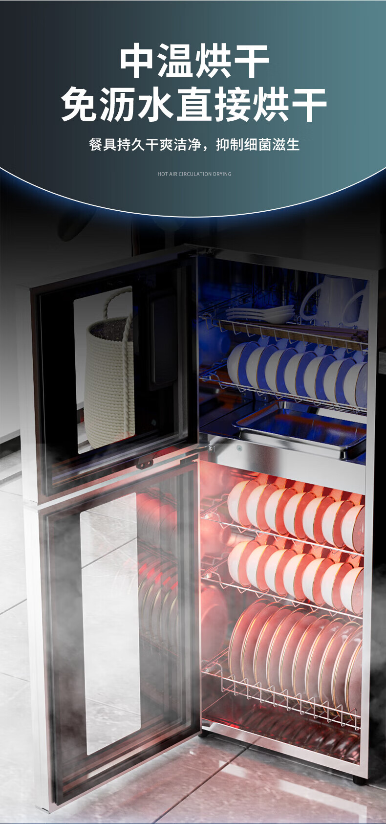 HP Good Wife Disinfection Cabinet Home Kitchen Small Vertical Commercial Disinfection Cupboard Tableware Tableware Teacup High Temperature Disinfection Cupboard One Star 138L Black Button Negative Ion Disinfection + 5-Layer Bowl Rack
