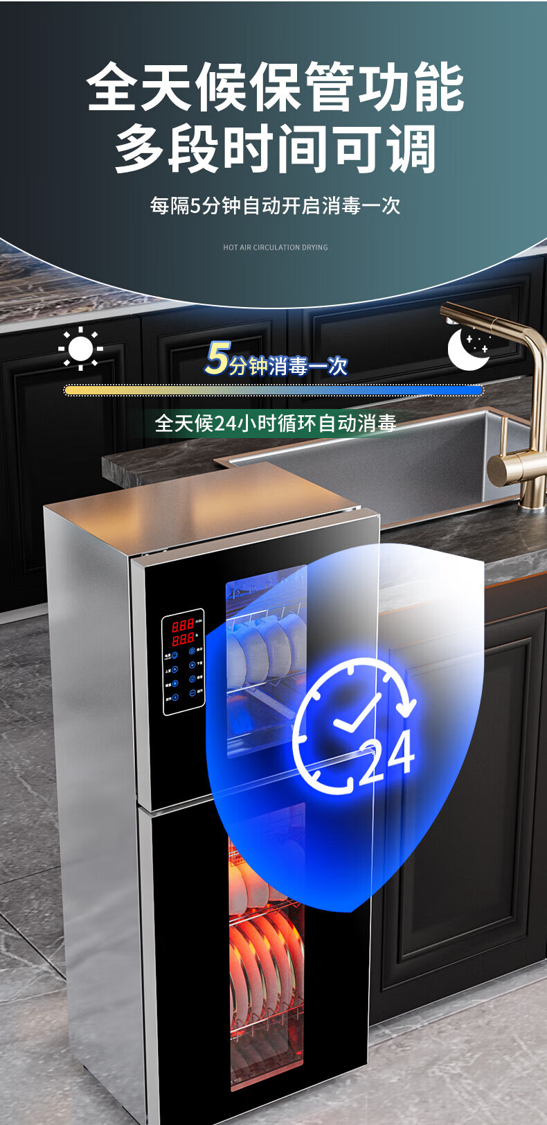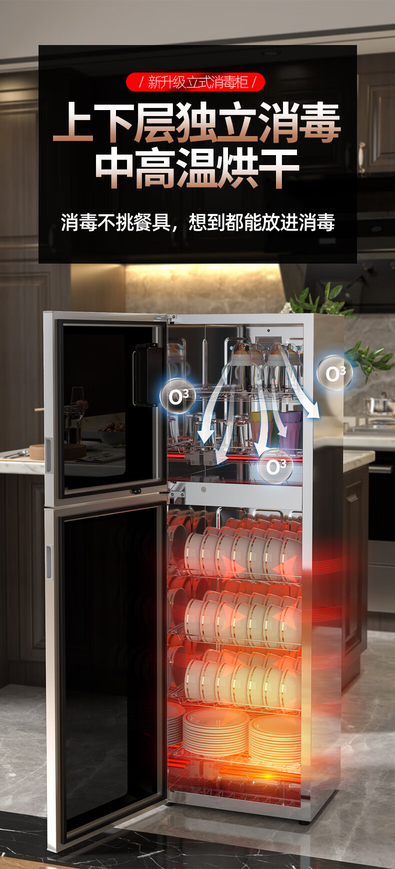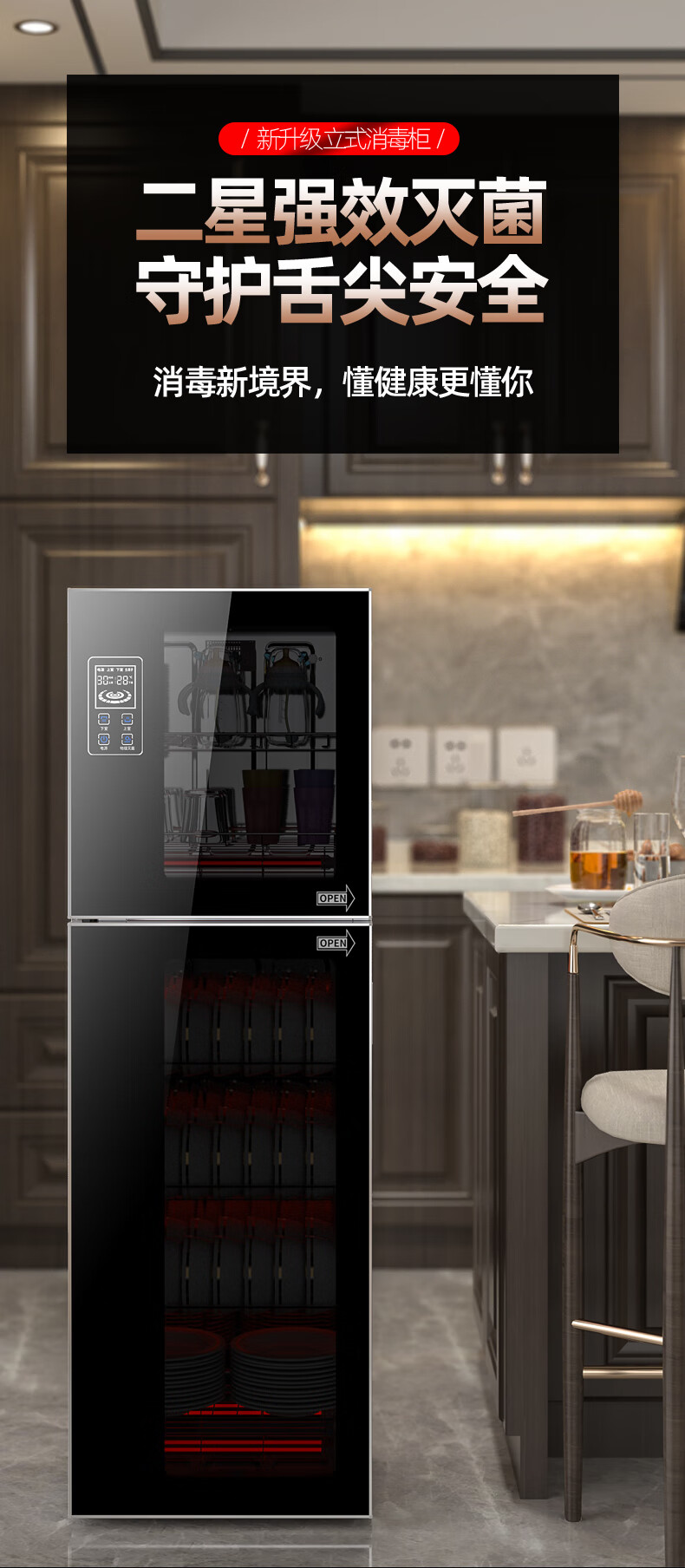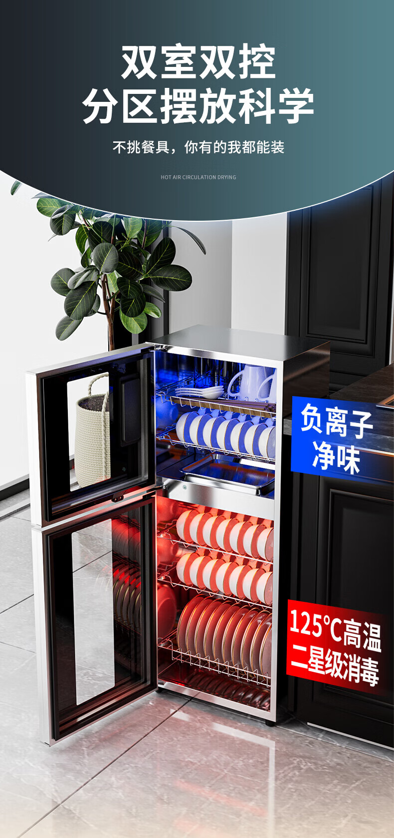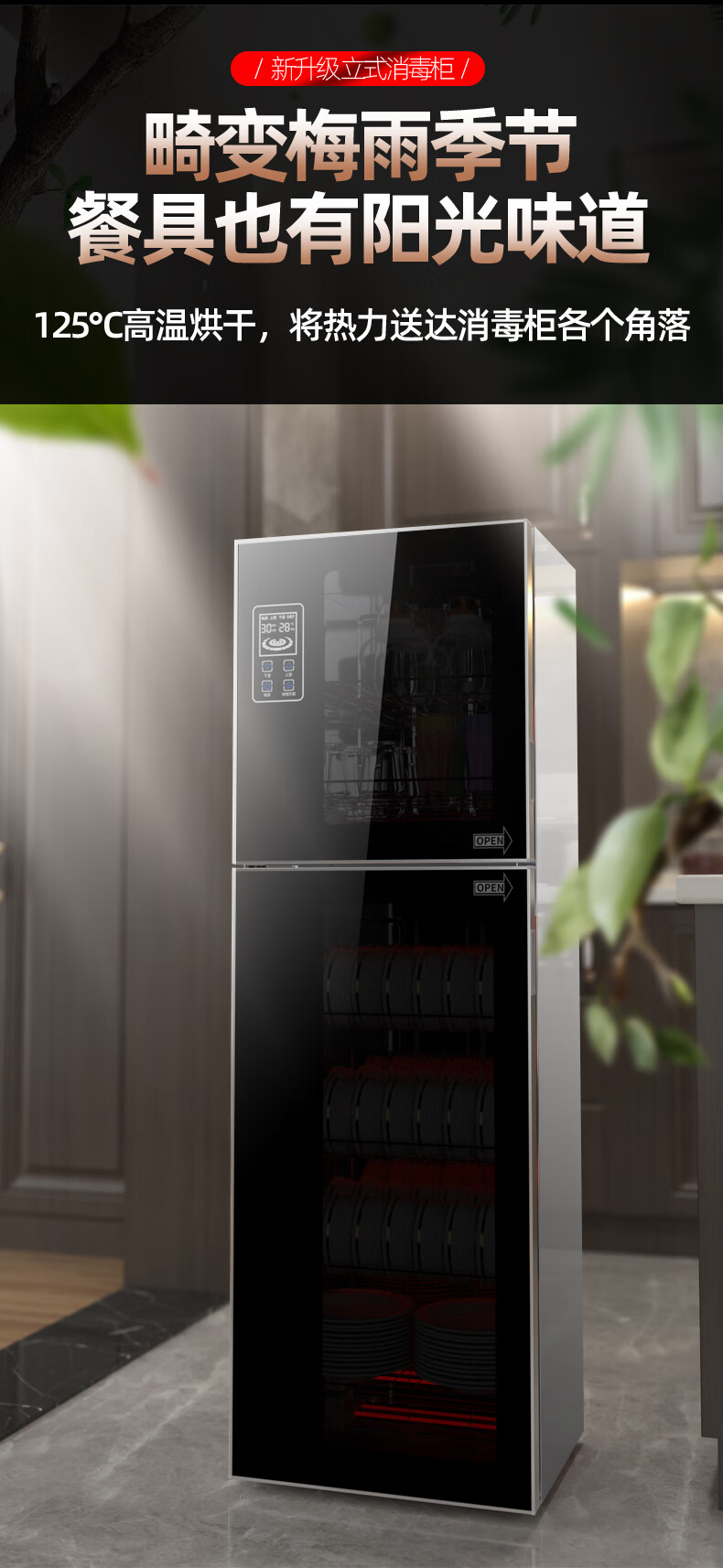 HP Good Wife Disinfection Cabinet Home Kitchen Small Vertical Commercial Disinfection Cupboard Tableware Tableware Teacup High Temperature Disinfection Cupboard One Star 138L Black Button Negative Ion Disinfection + 5-Layer Bowl Rack