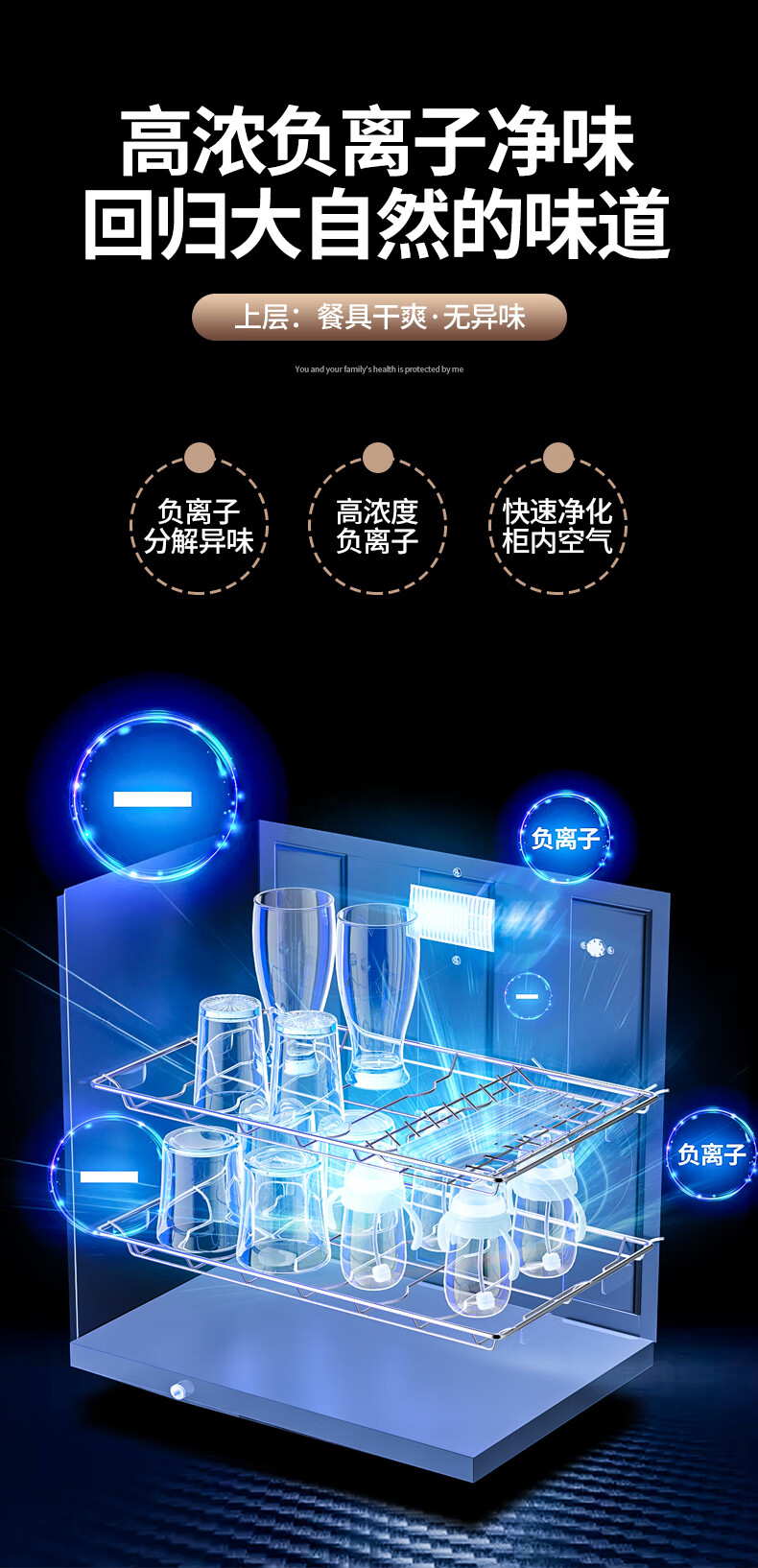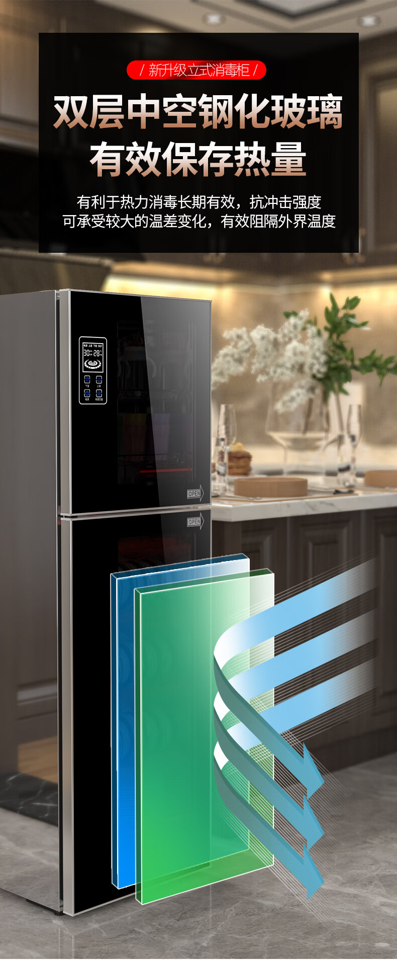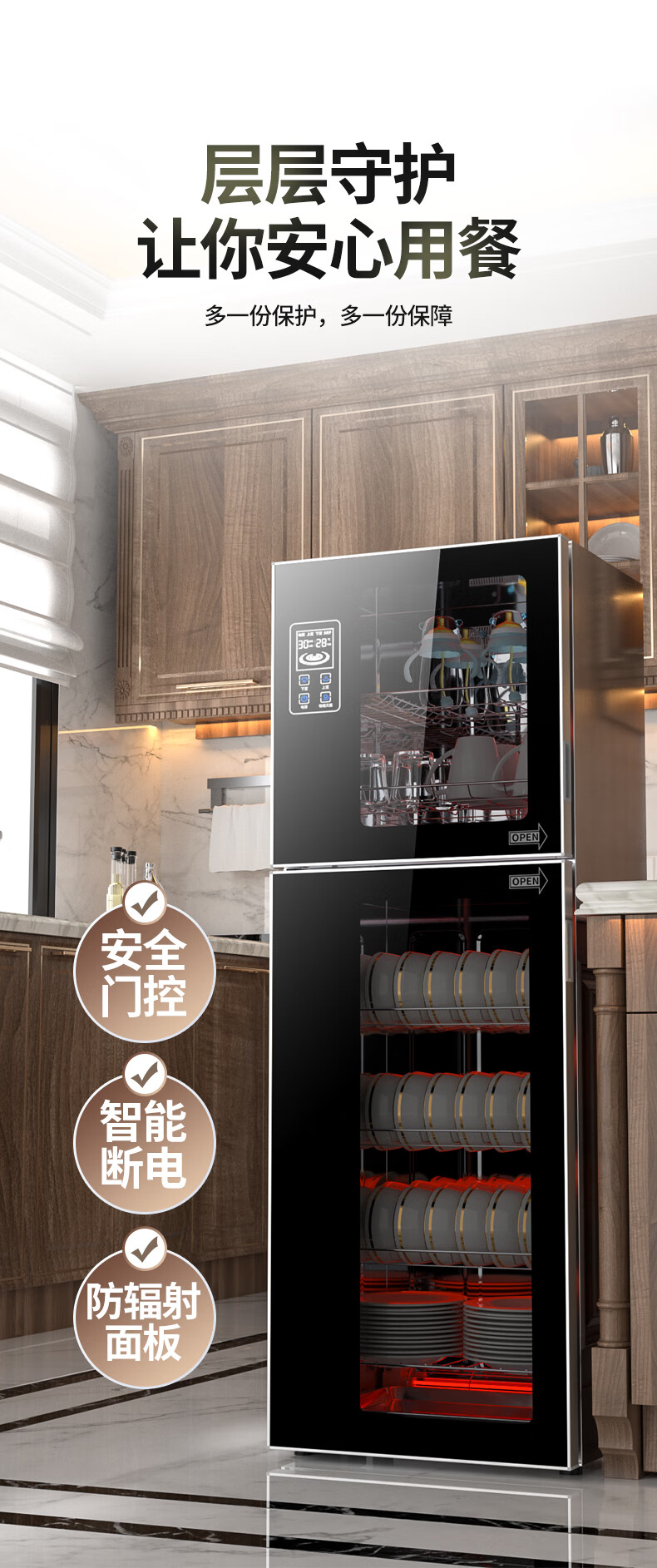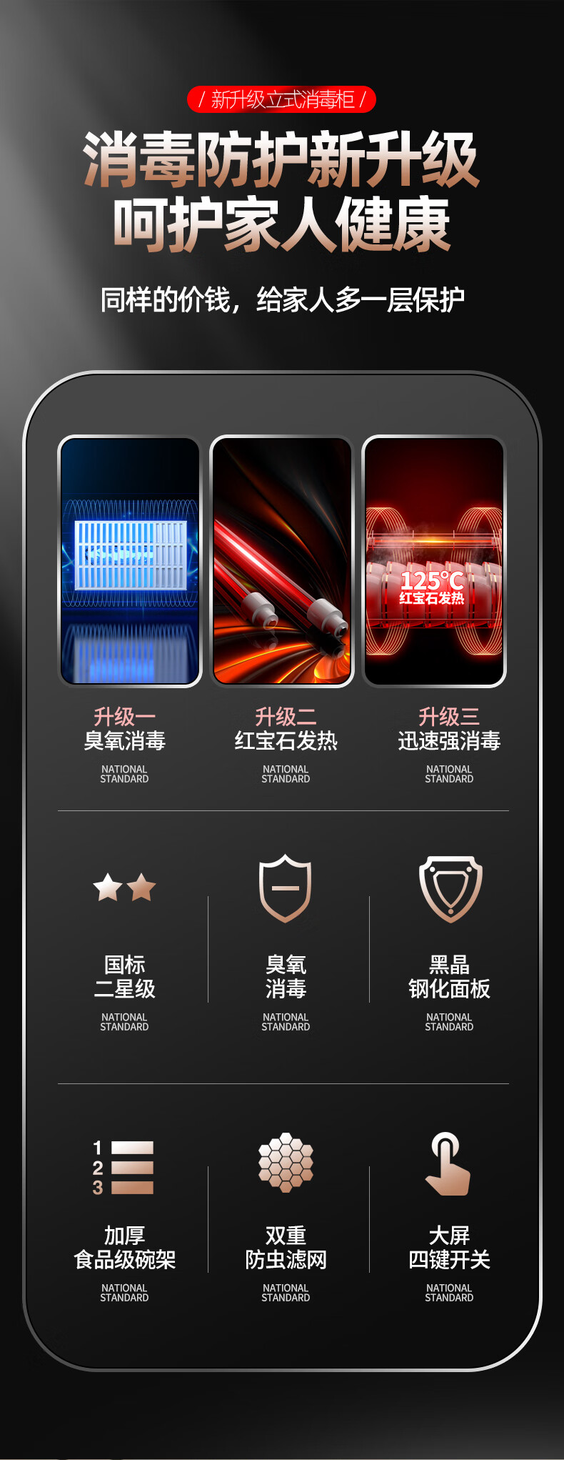 HP Good Wife Disinfection Cabinet Home Kitchen Small Vertical Commercial Disinfection Cupboard Tableware Tableware Teacup High Temperature Disinfection Cupboard One Star 138L Black Button Negative Ion Disinfection + 5-Layer Bowl Rack