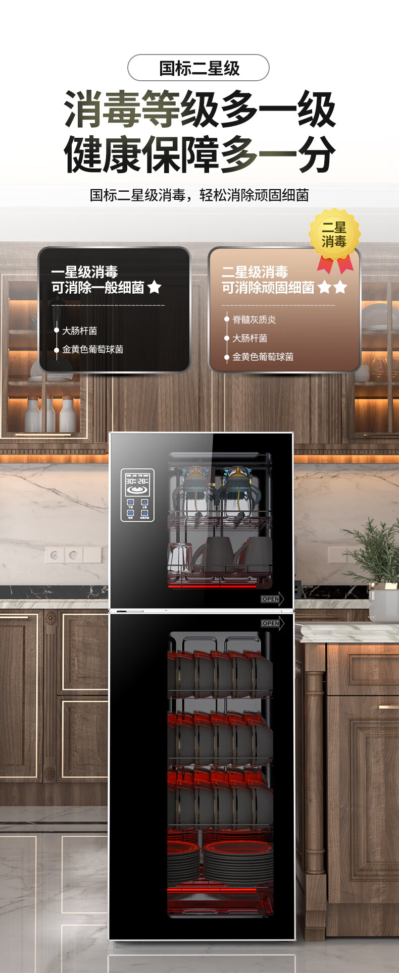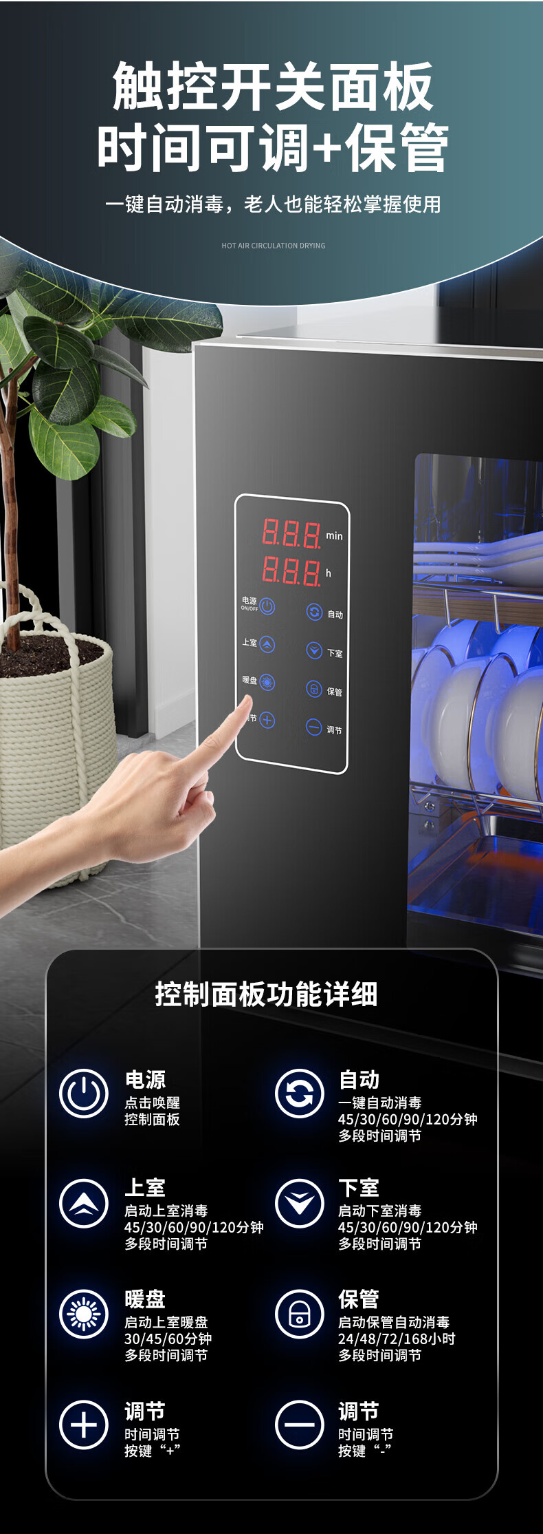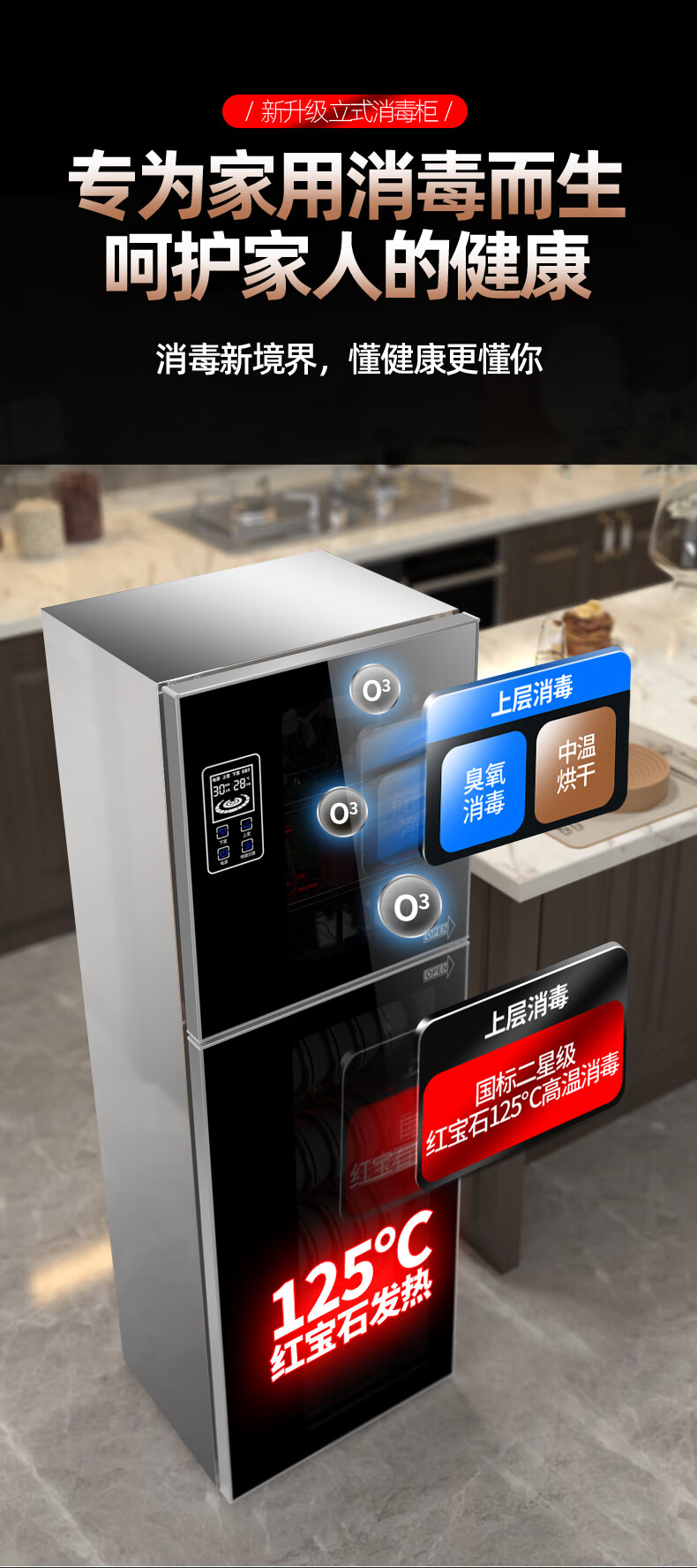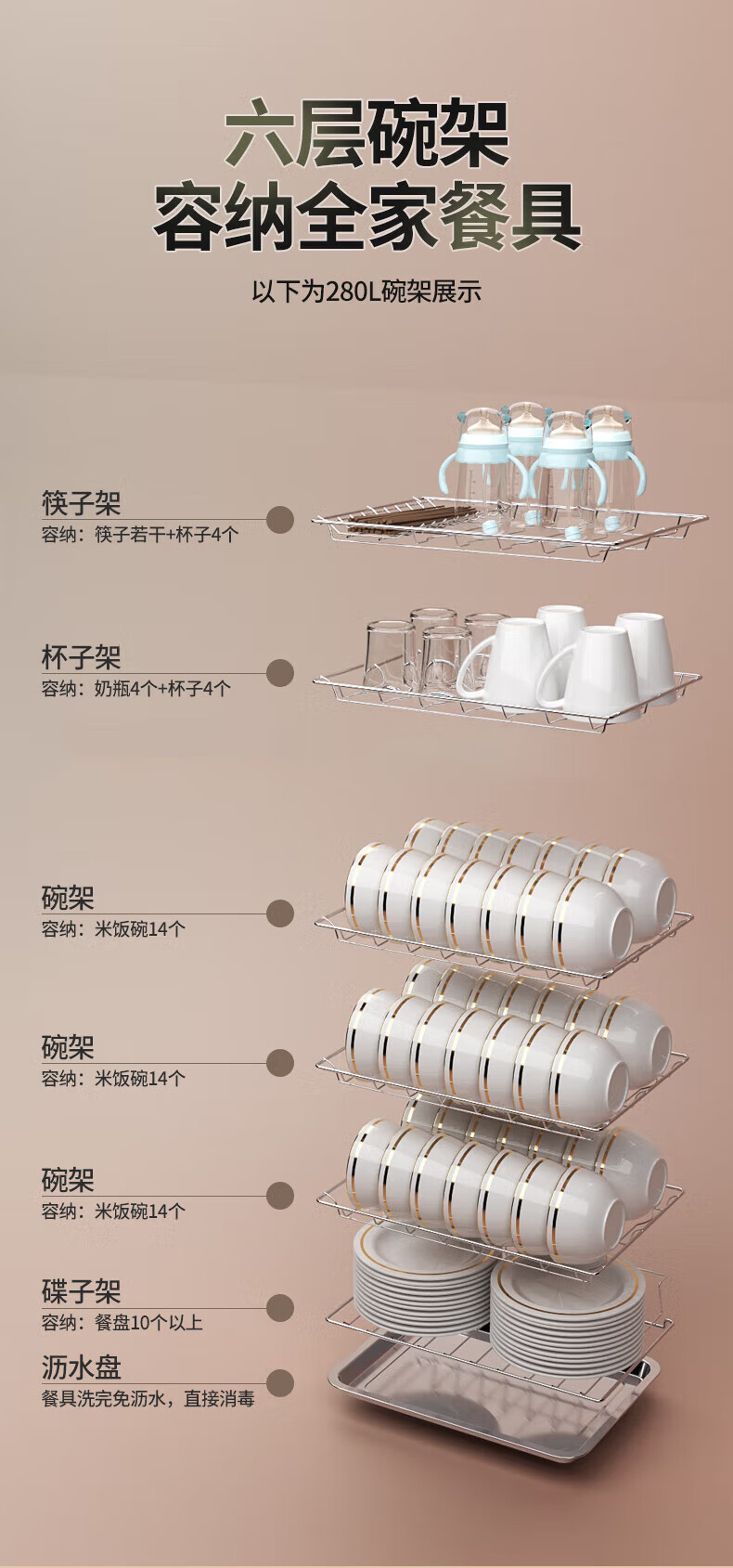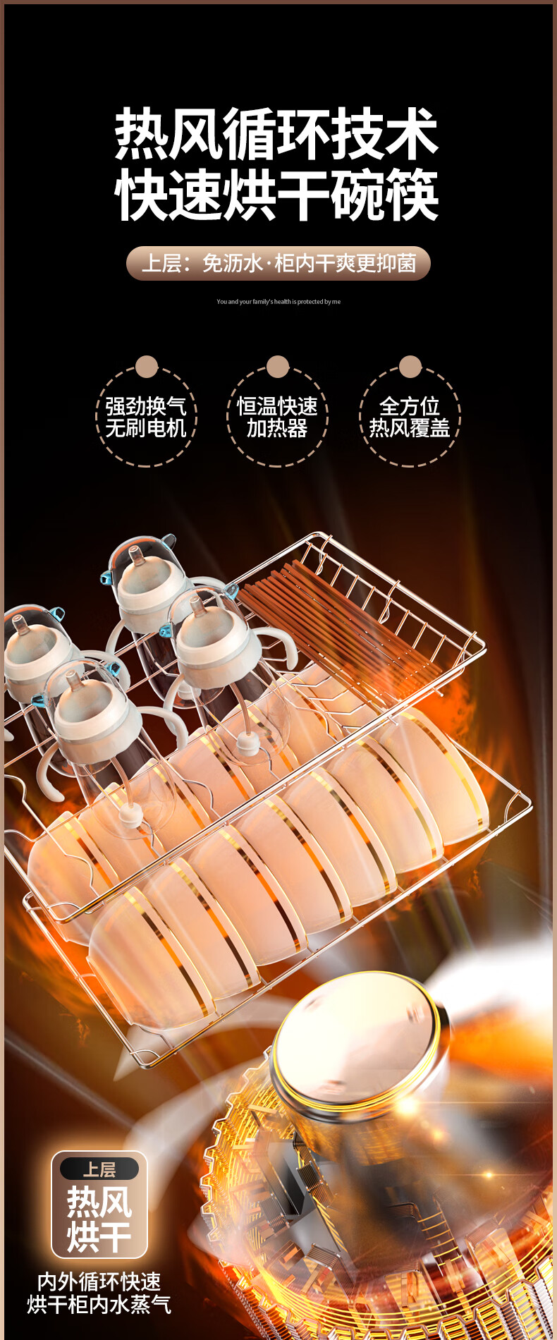 HP Good Wife Disinfection Cabinet Home Kitchen Small Vertical Commercial Disinfection Cupboard Tableware Tableware Teacup High Temperature Disinfection Cupboard One Star 138L Black Button Negative Ion Disinfection + 5-Layer Bowl Rack