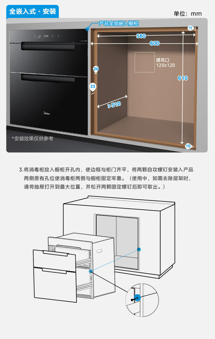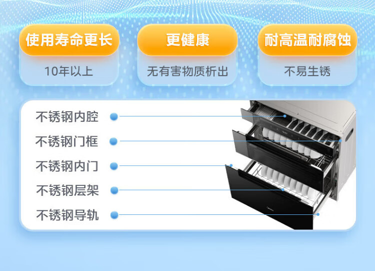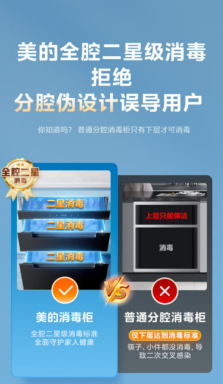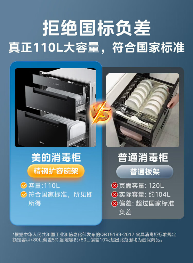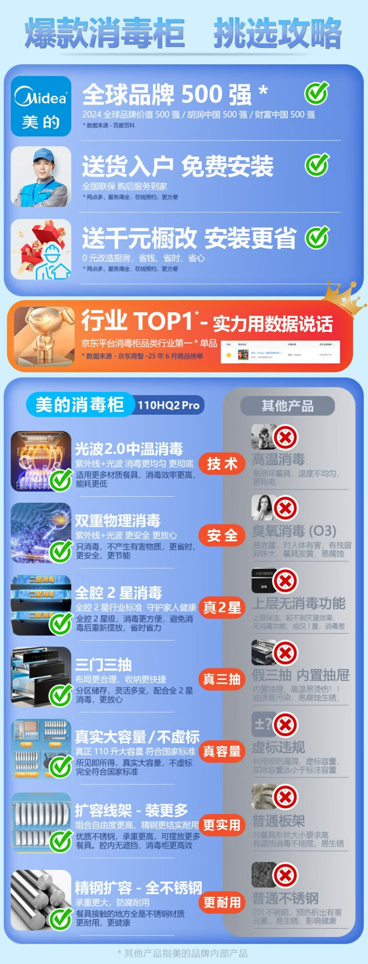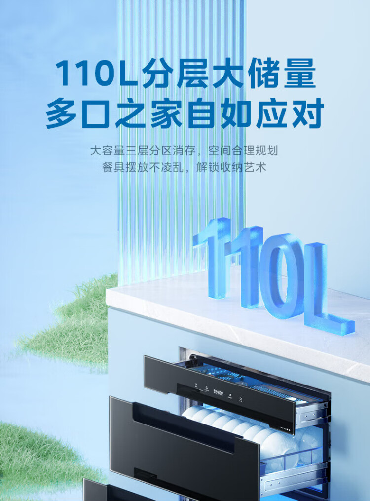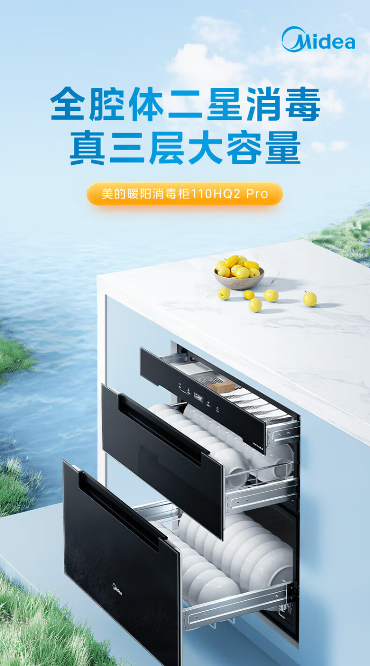 Midea Nuanyang disinfection cabinet two-star household built-in kitchen tableware cupboards bowls and chopsticks teacup tea set UV baby bottle 110L three-layer large capacity two-star 110L 110HQ2pro