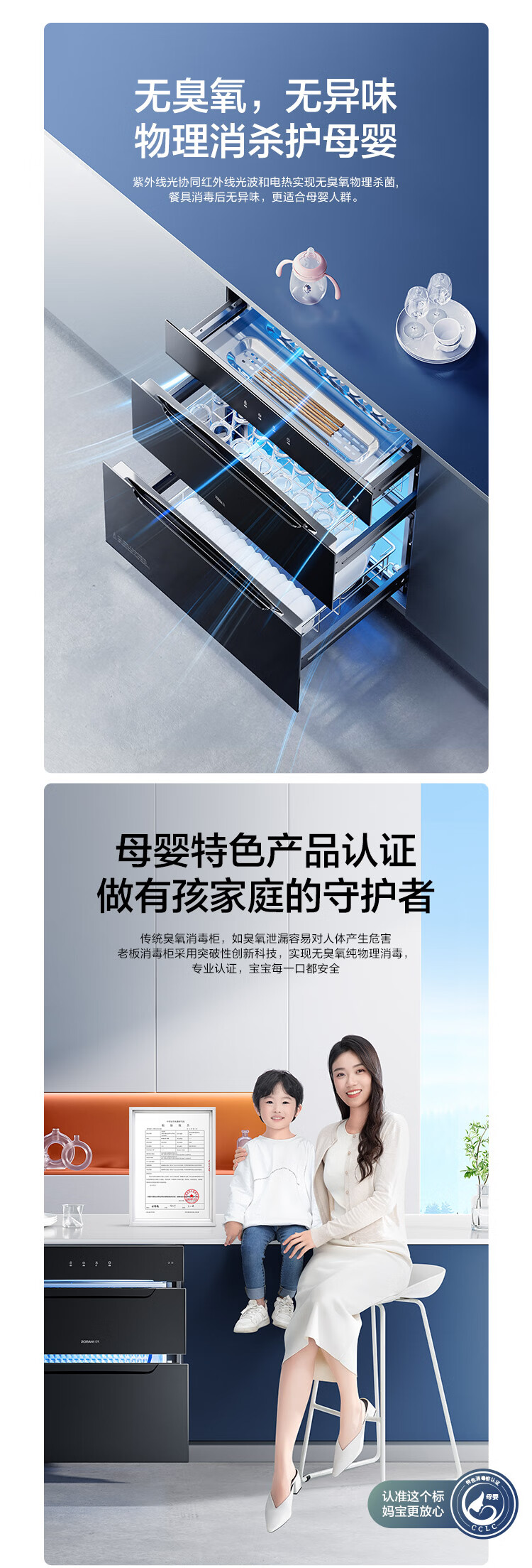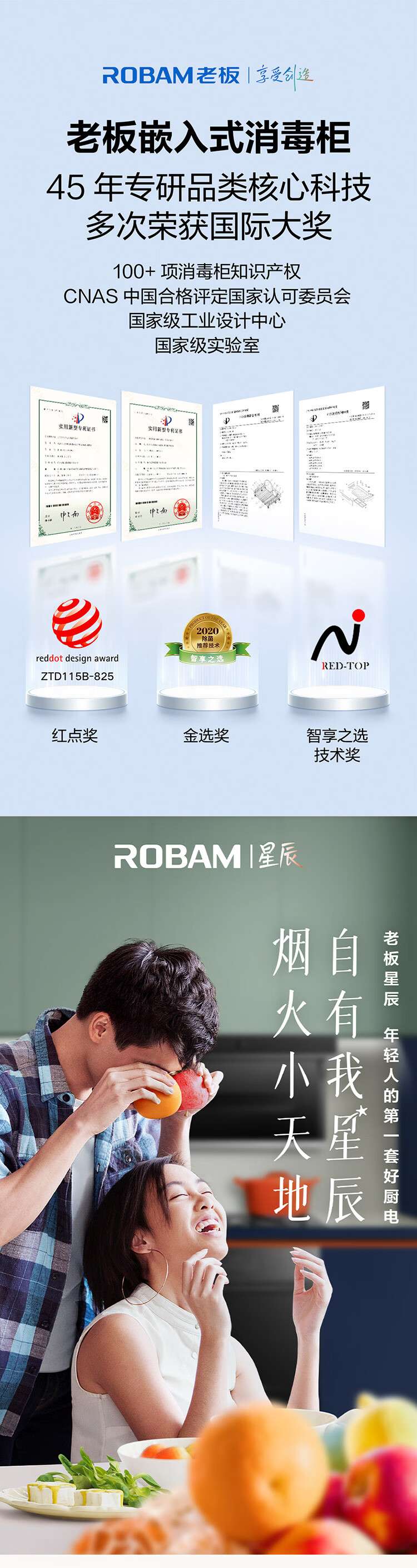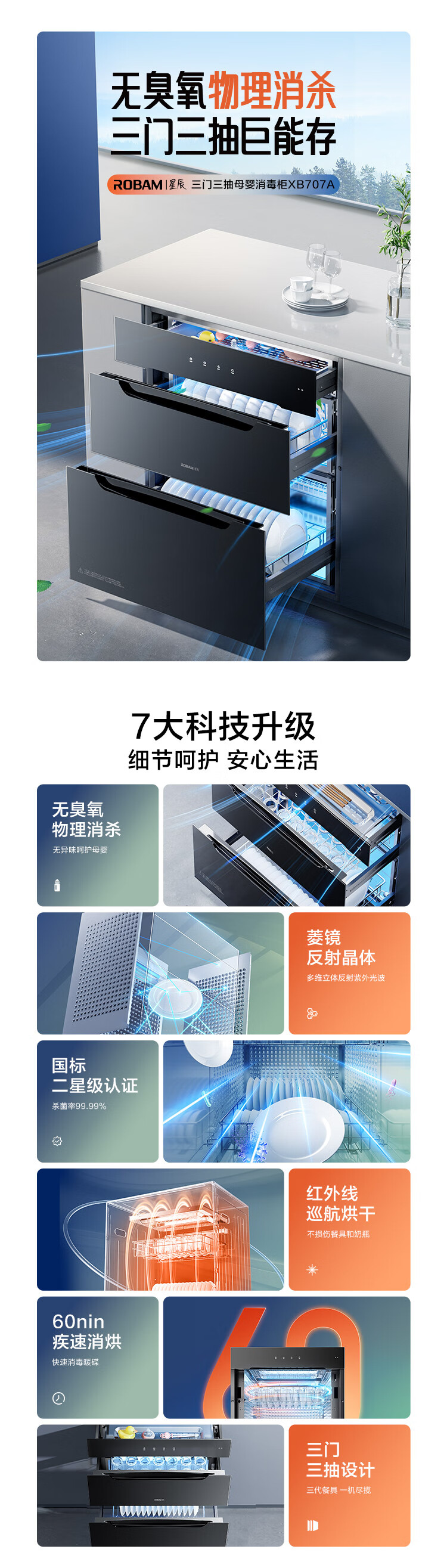 Robam Star Series Disinfection Cabinet Household Embedded Physical UV Sterilization 60 Minutes Rapid Sterilization Three Doors Three Drawers 110L Maternal and Infant Grade Disinfection Cupboard XB707A Two-Star 110L