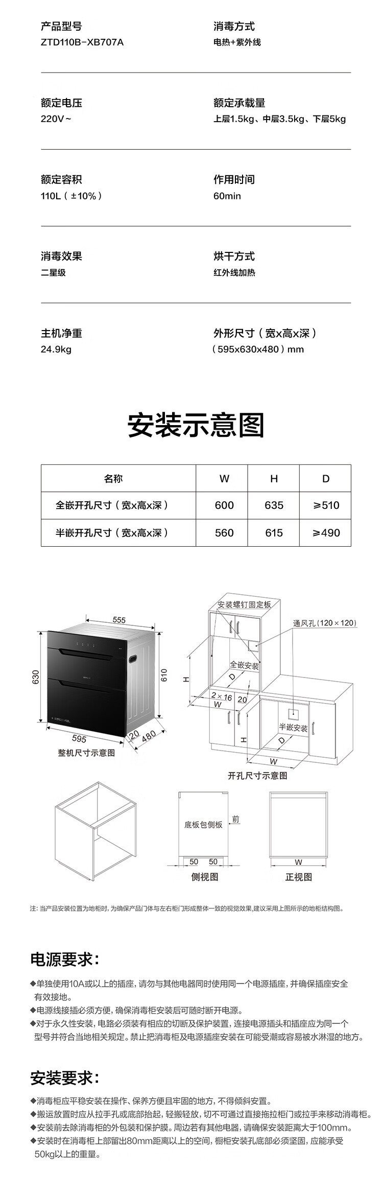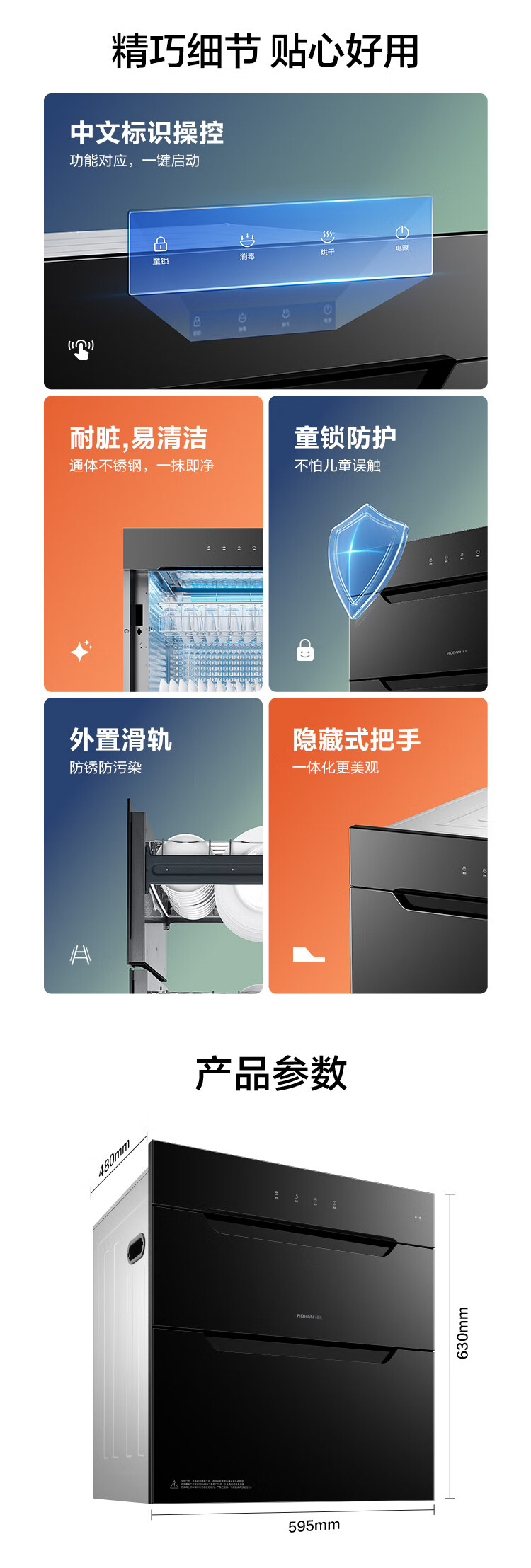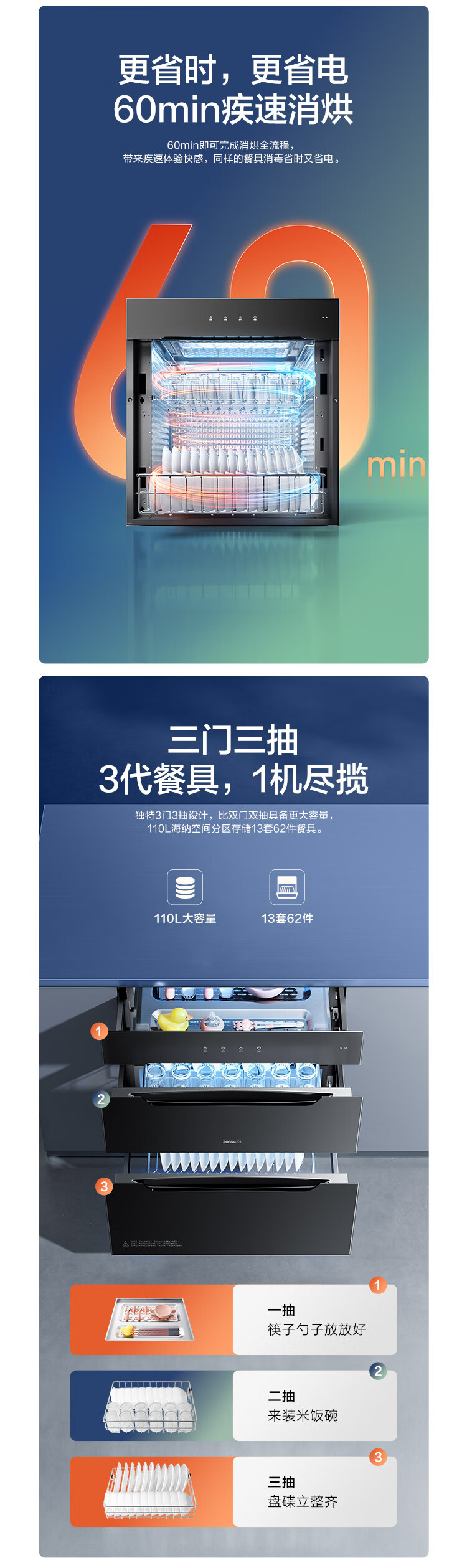 Robam Star Series Disinfection Cabinet Household Embedded Physical UV Sterilization 60 Minutes Rapid Sterilization Three Doors Three Drawers 110L Maternal and Infant Grade Disinfection Cupboard XB707A Two-Star 110L